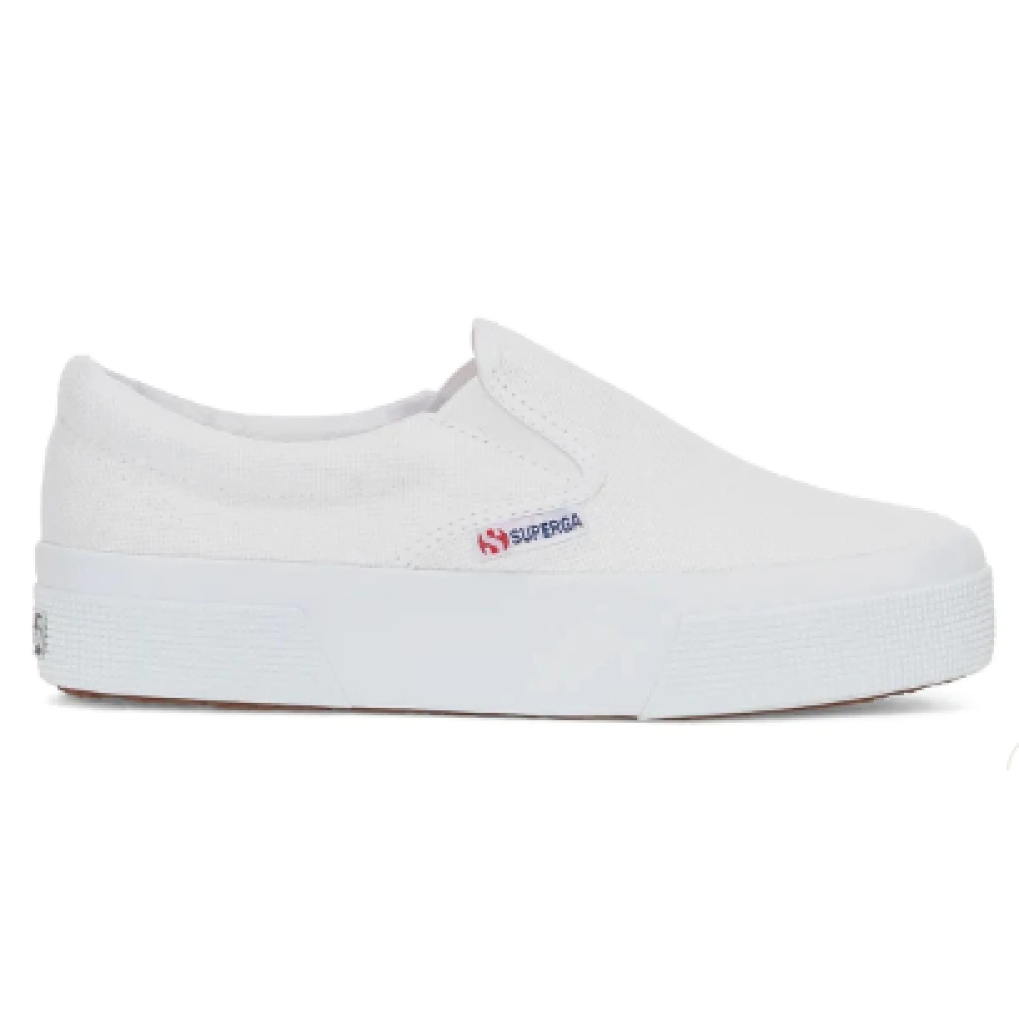 La superga 2740 è la platform contemporanea caratterizzata da una calzata comoda e veloce grazie al design senza lacci. con la sua altezza di 3,5 centimetri e una silhouette leggera e delicata, è la sneaker passepartout adatta ad elevare i look quotidiani. la tomaia in tela di cotone slip on con elastici laterali e il logo jacquard bicolor confermano i codici stilistici del brand.