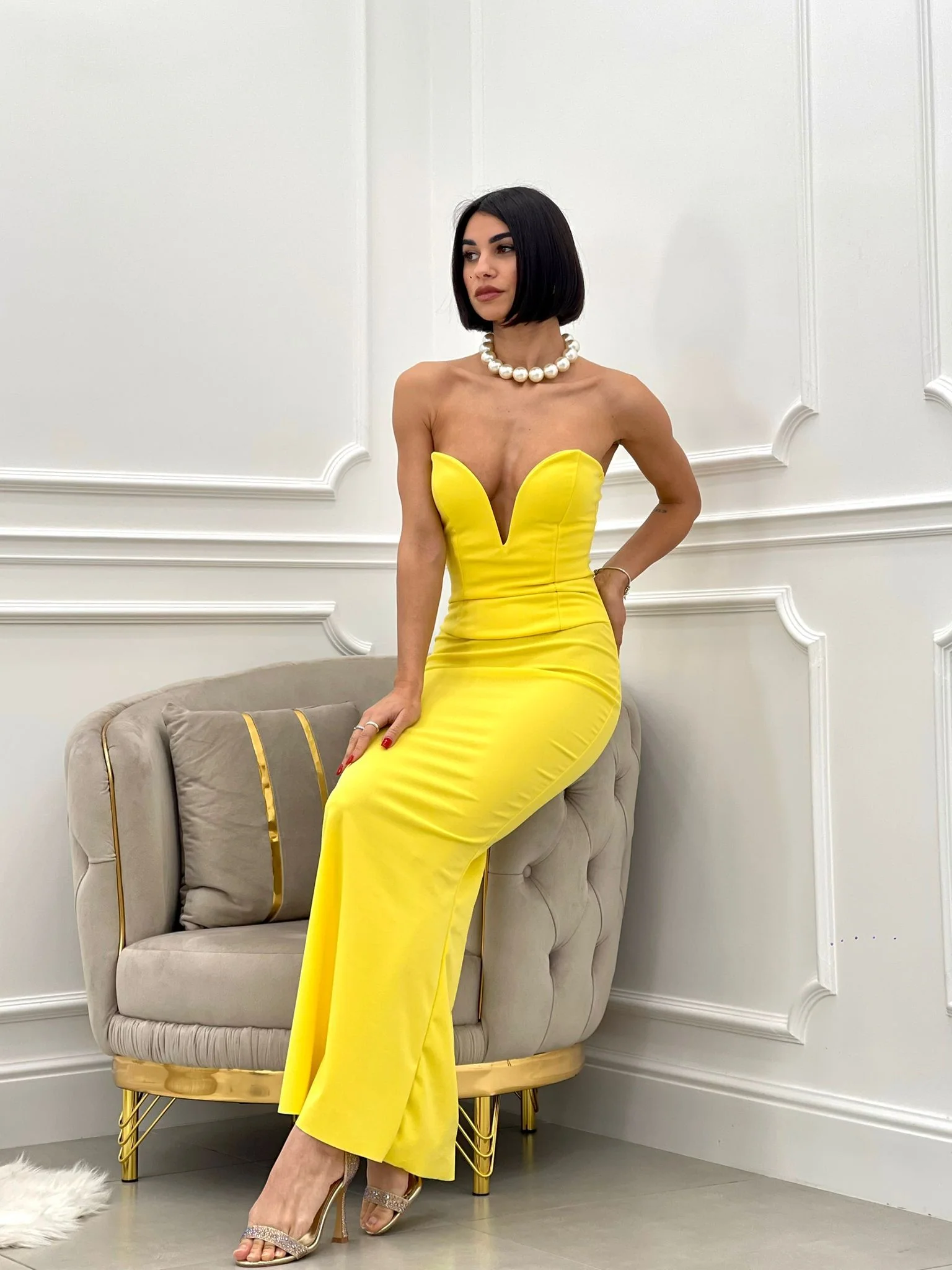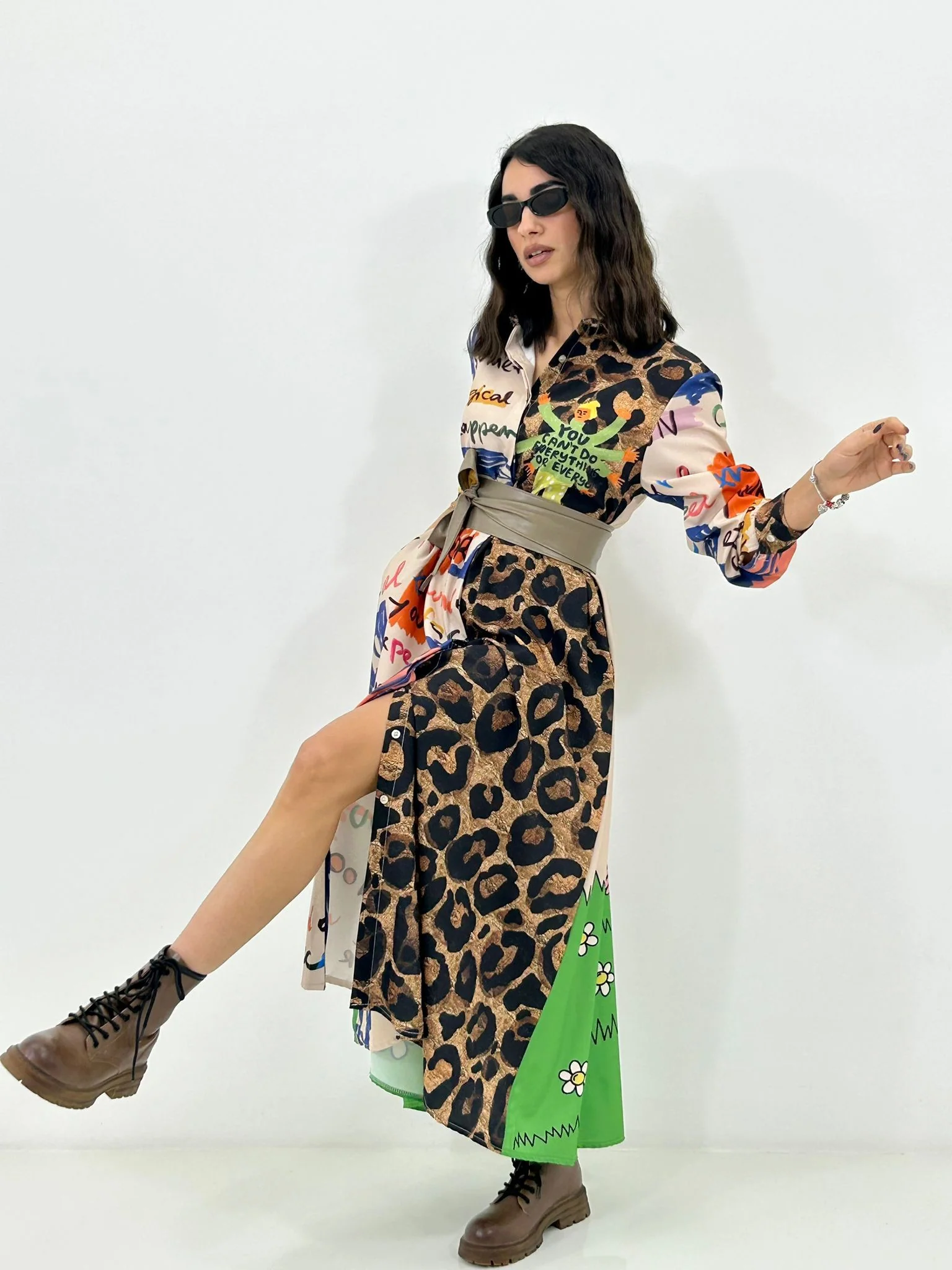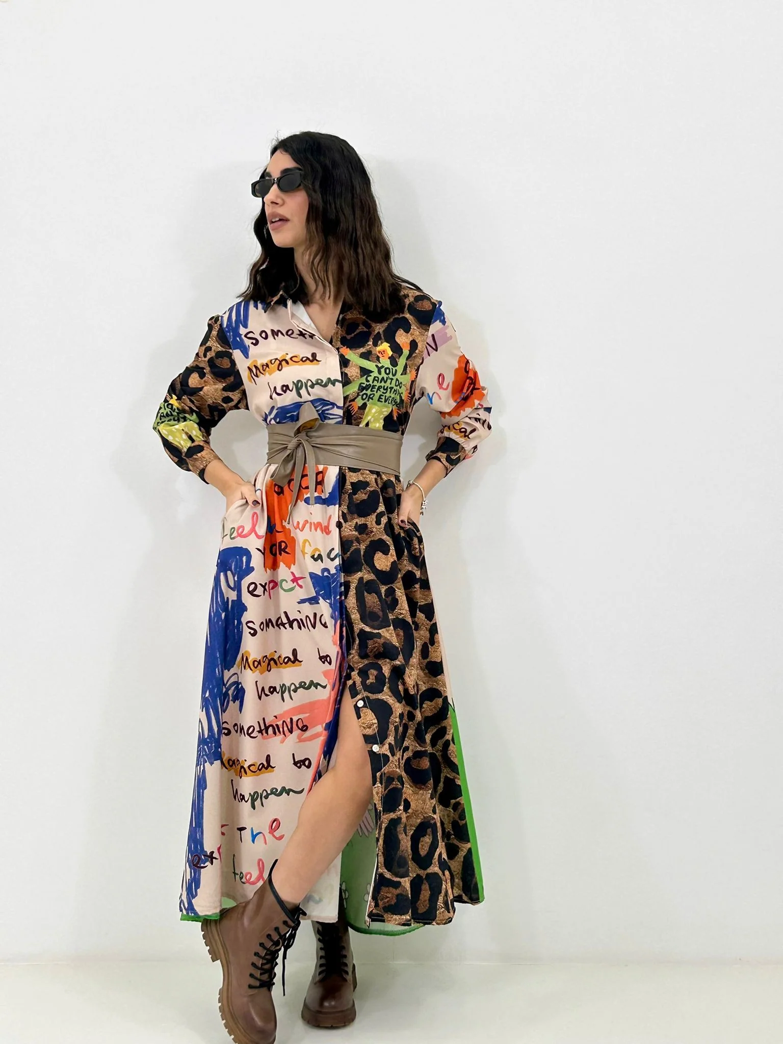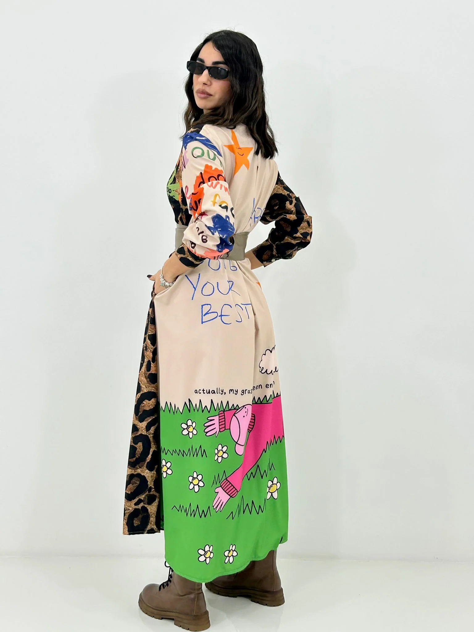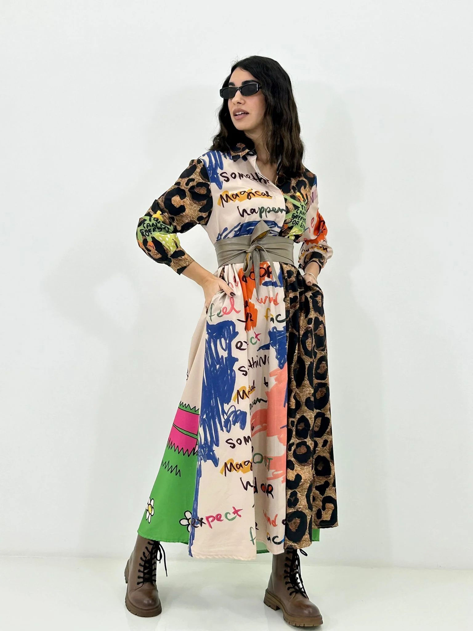 Vestito lungo con bottoni fantasia