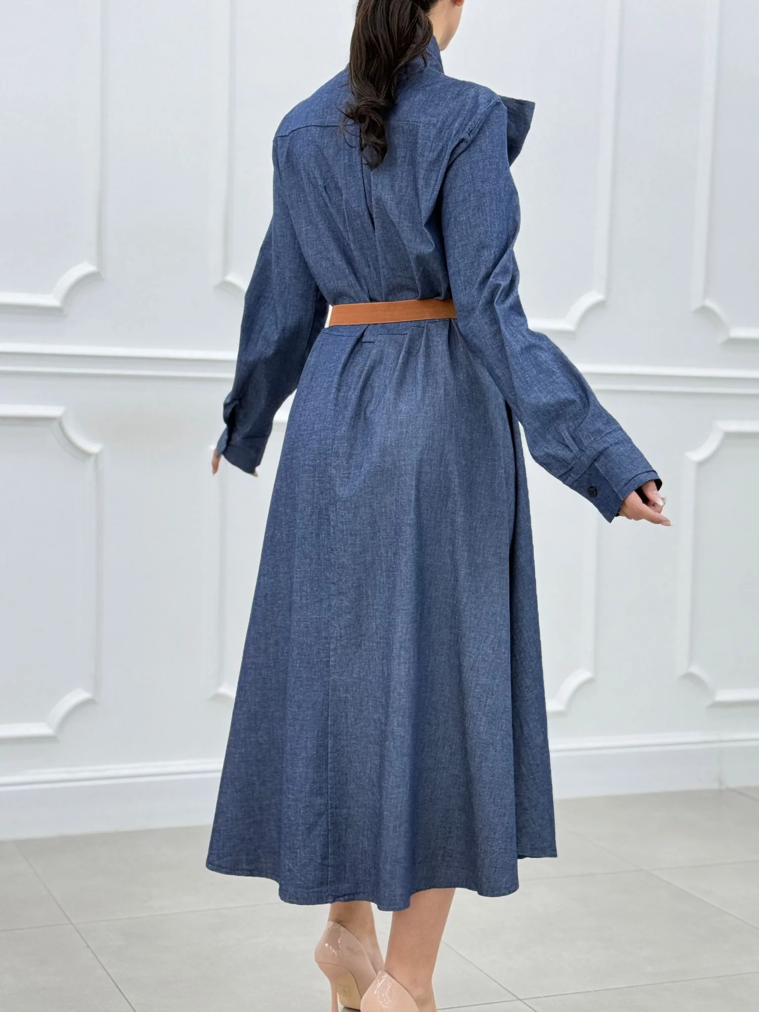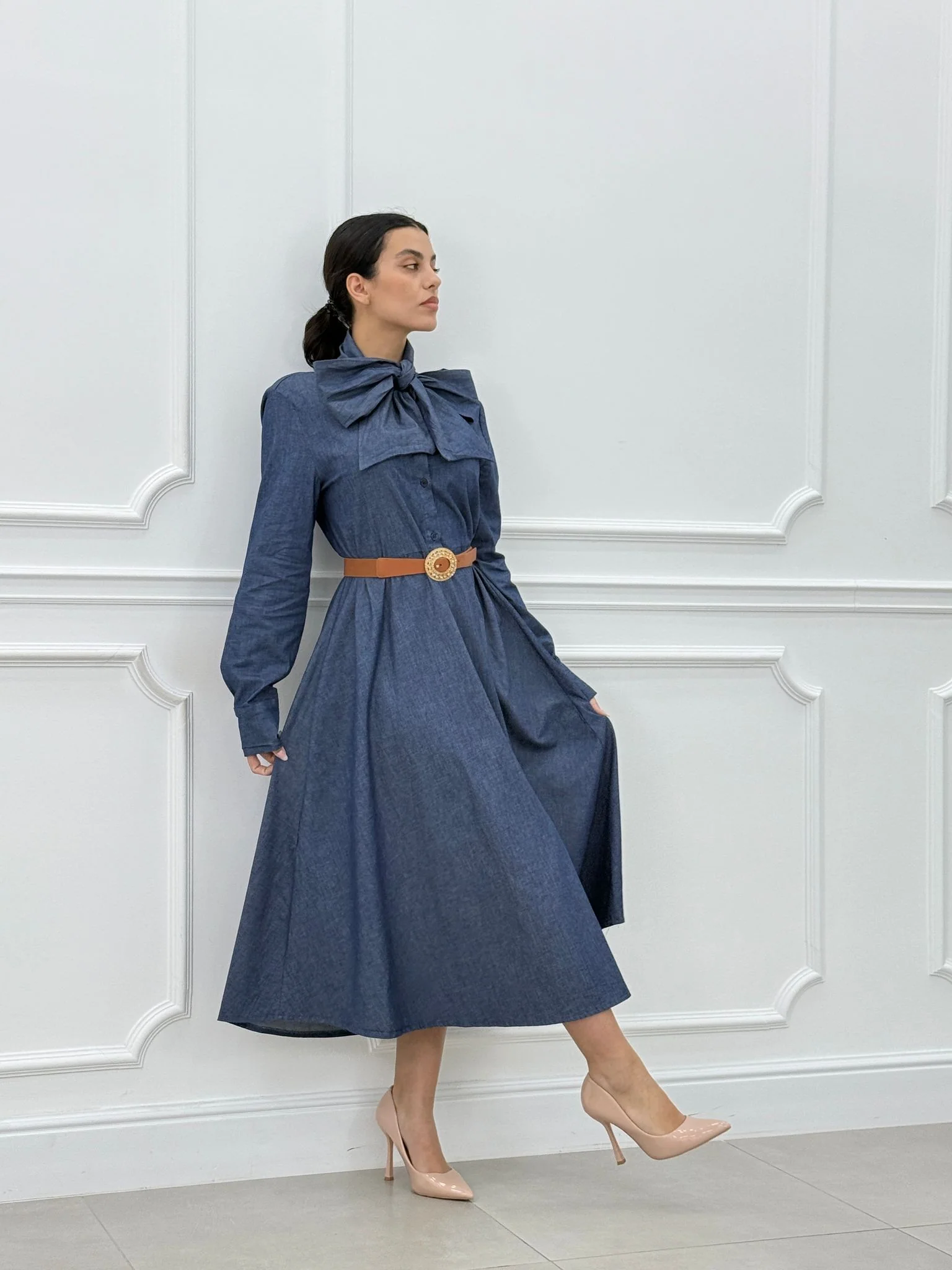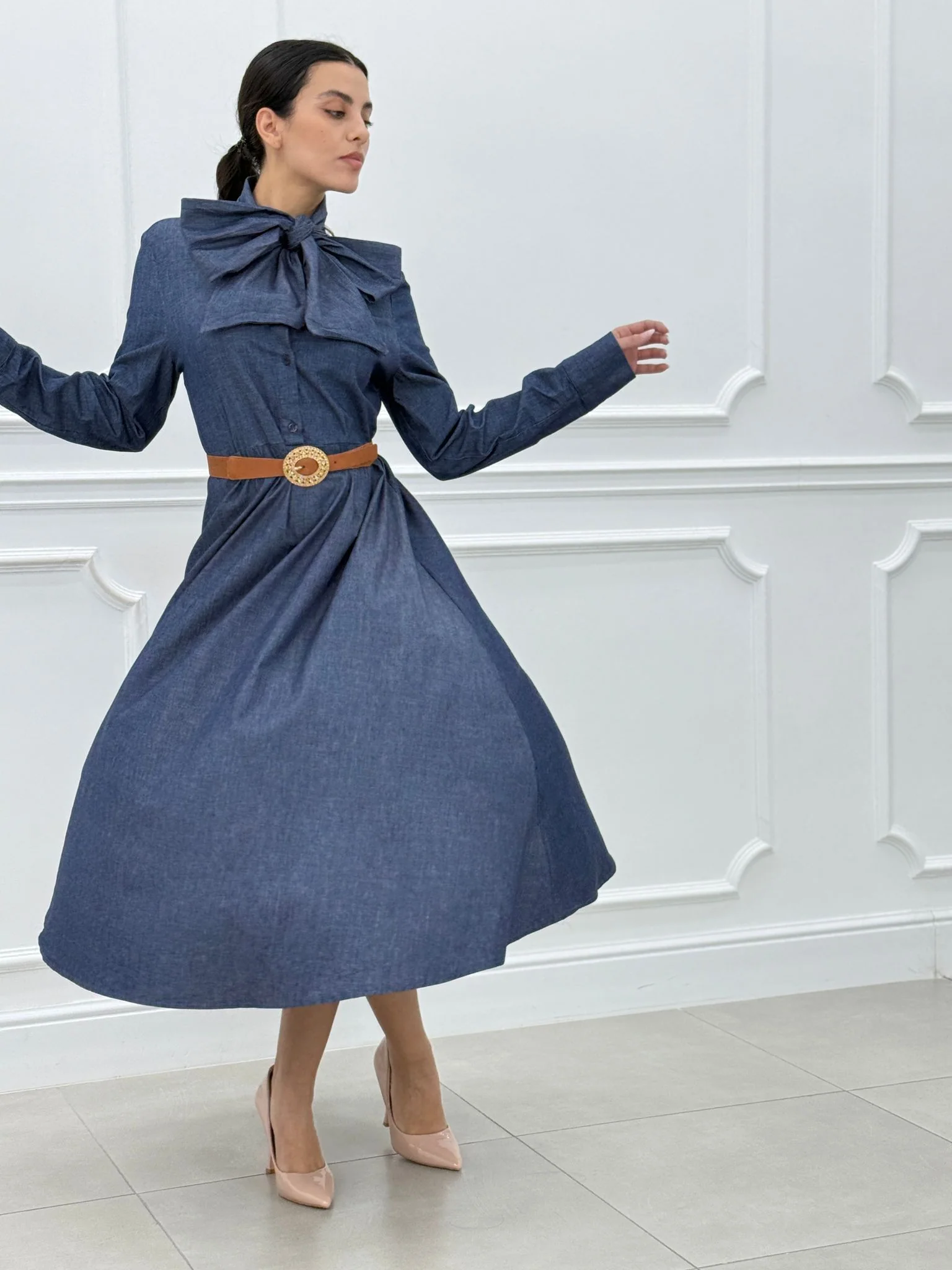 Abito denim con fiocco e bottoni