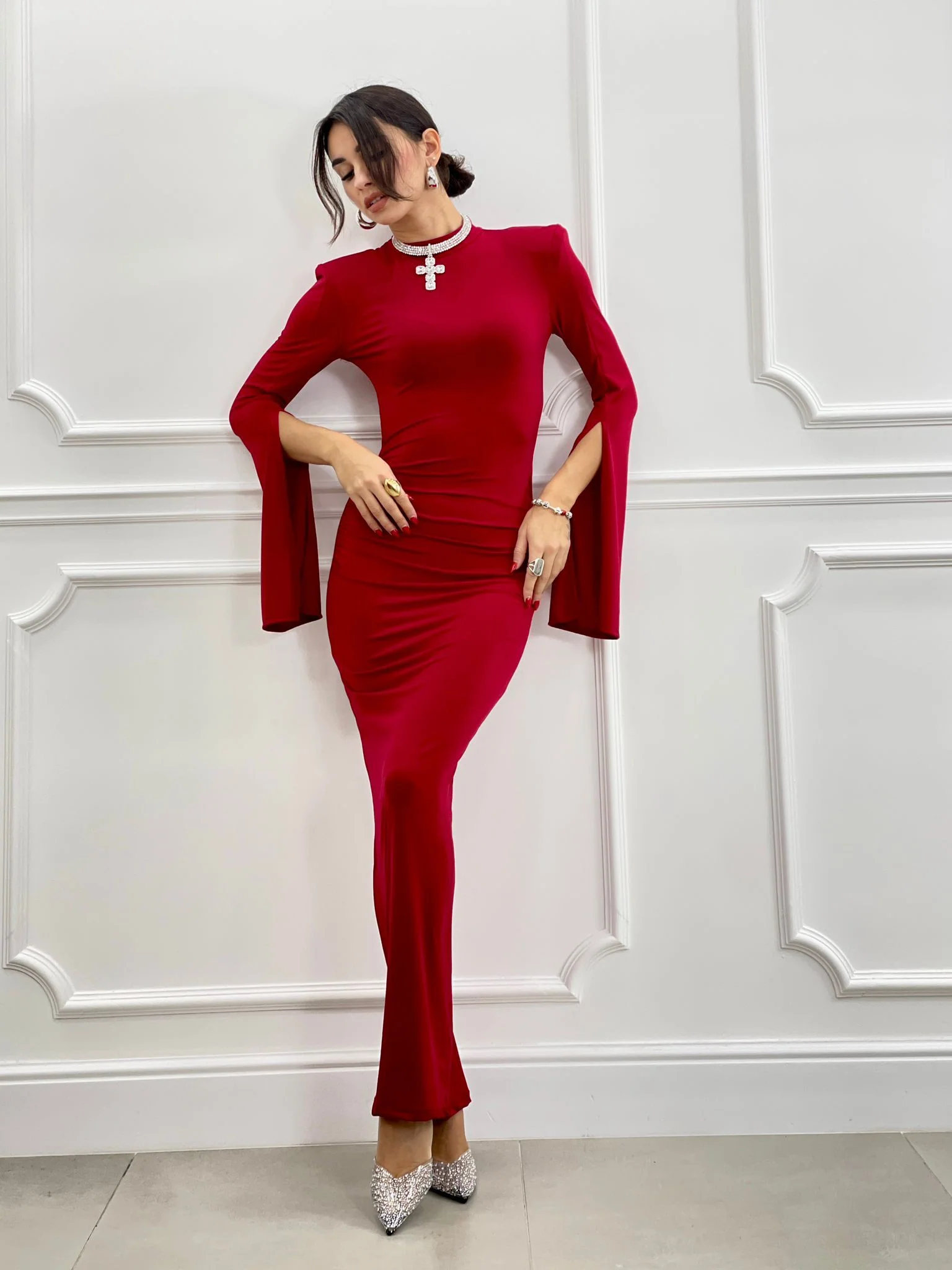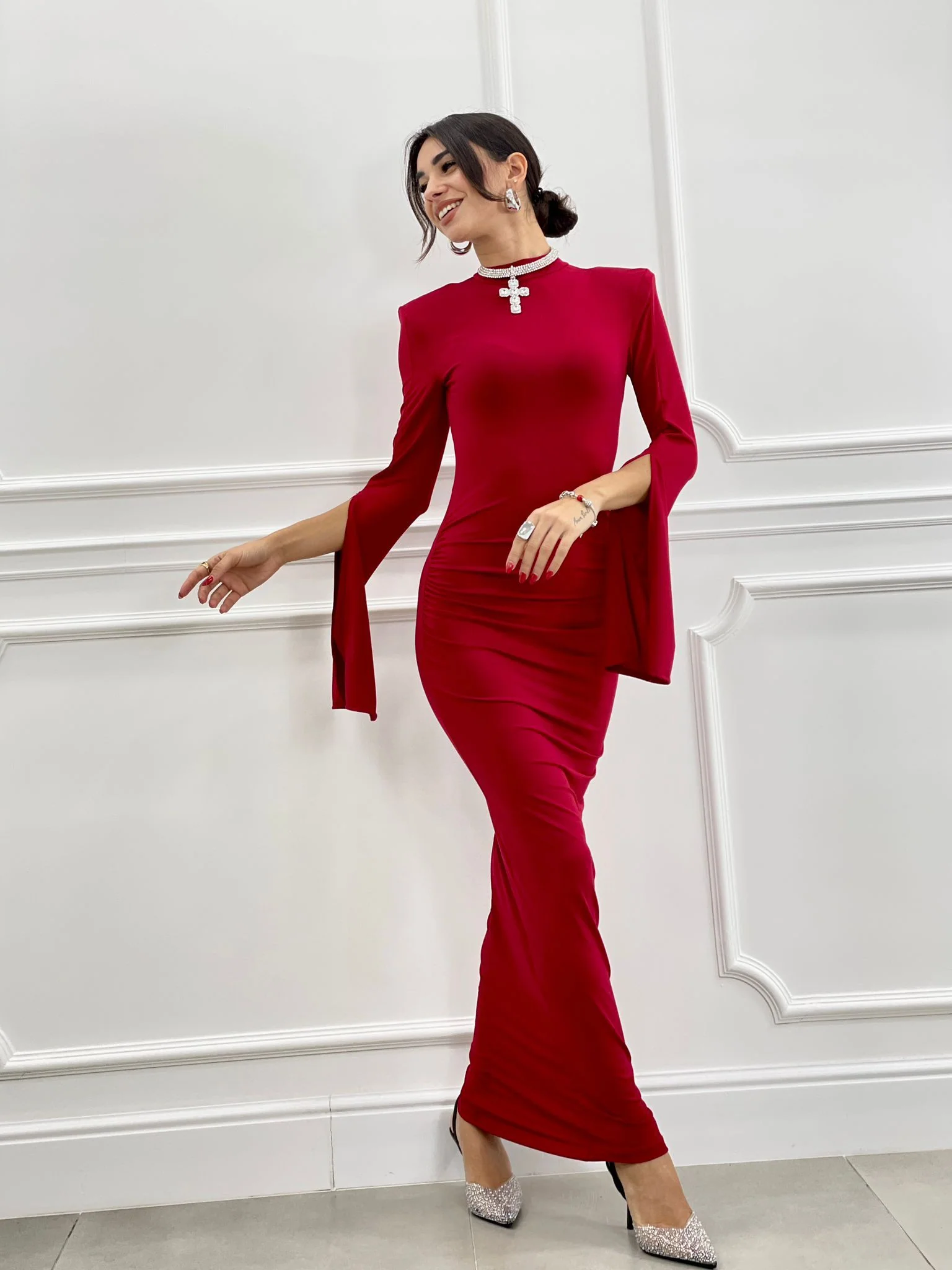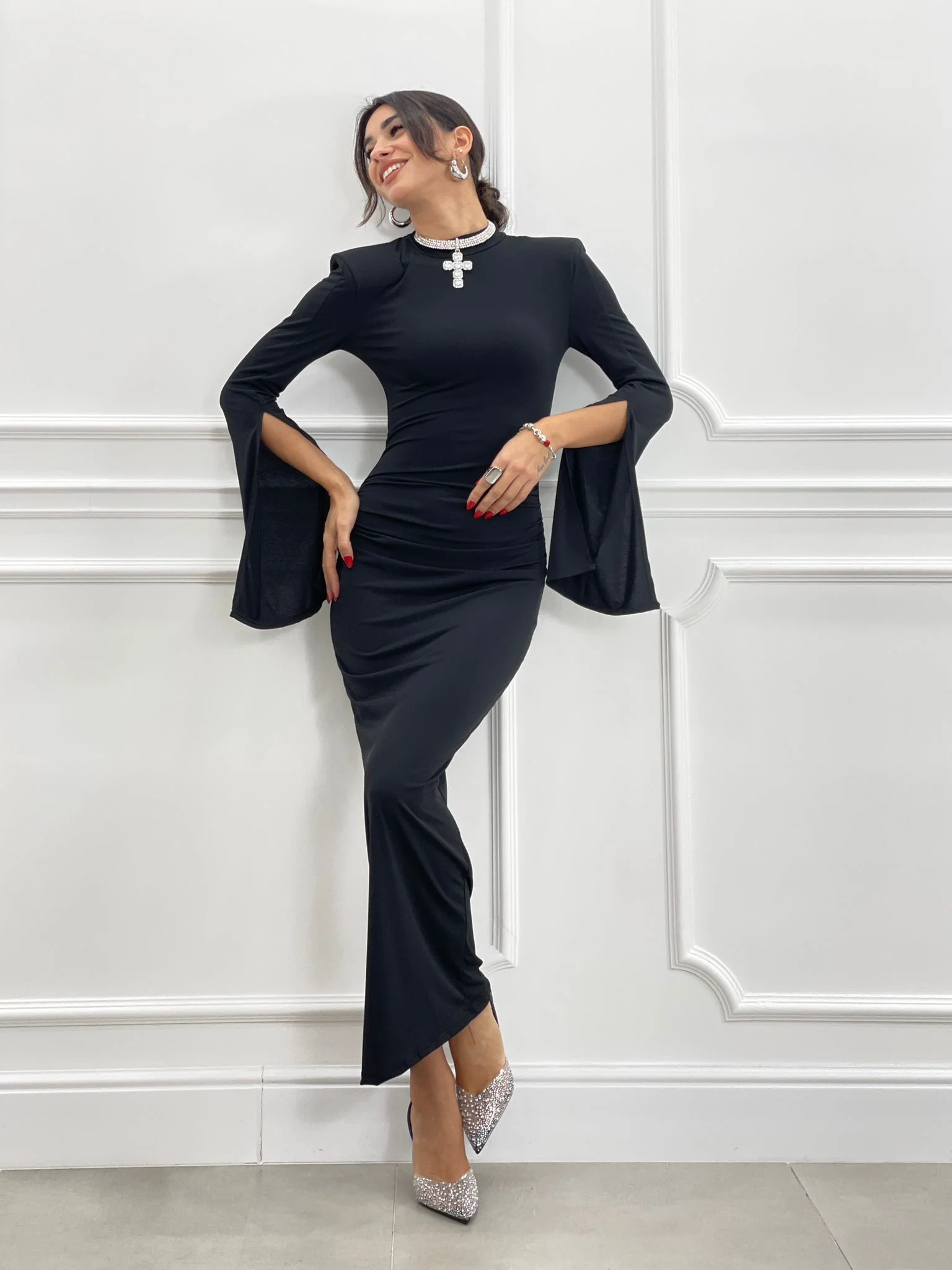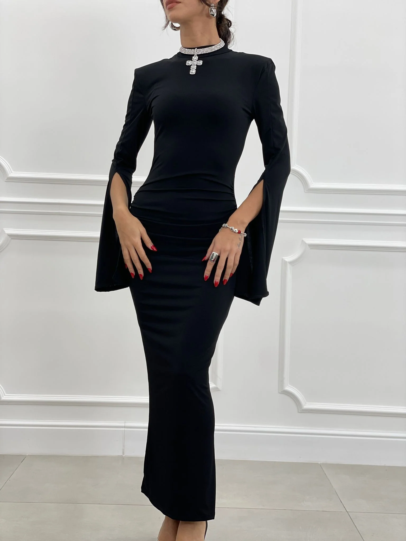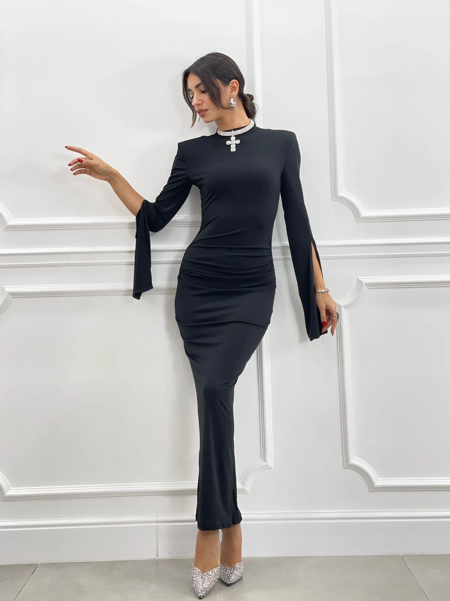 Abito lungo drappeggiato con spalline