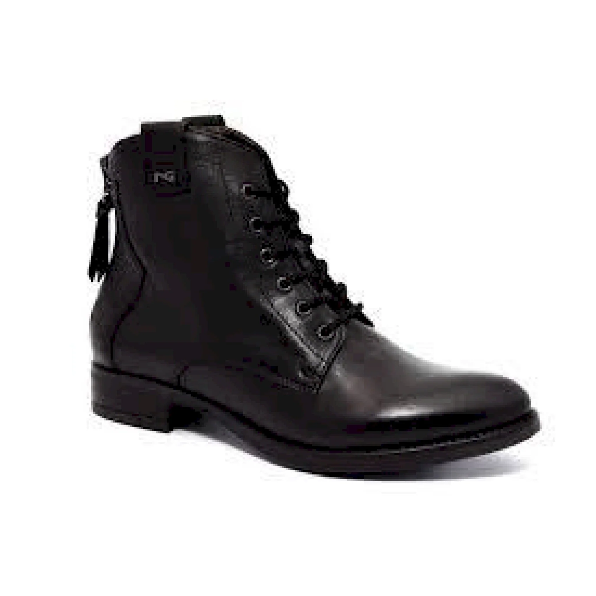 Tronchetto allacciato in pelle con inserti in pelle ricamati punta affusolata e dettagli in metallo