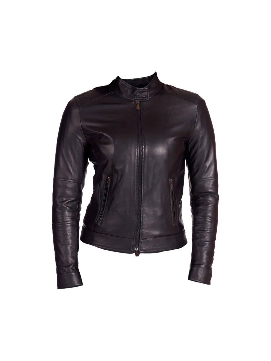 Giubbino in pelle nero con dettagli neri.