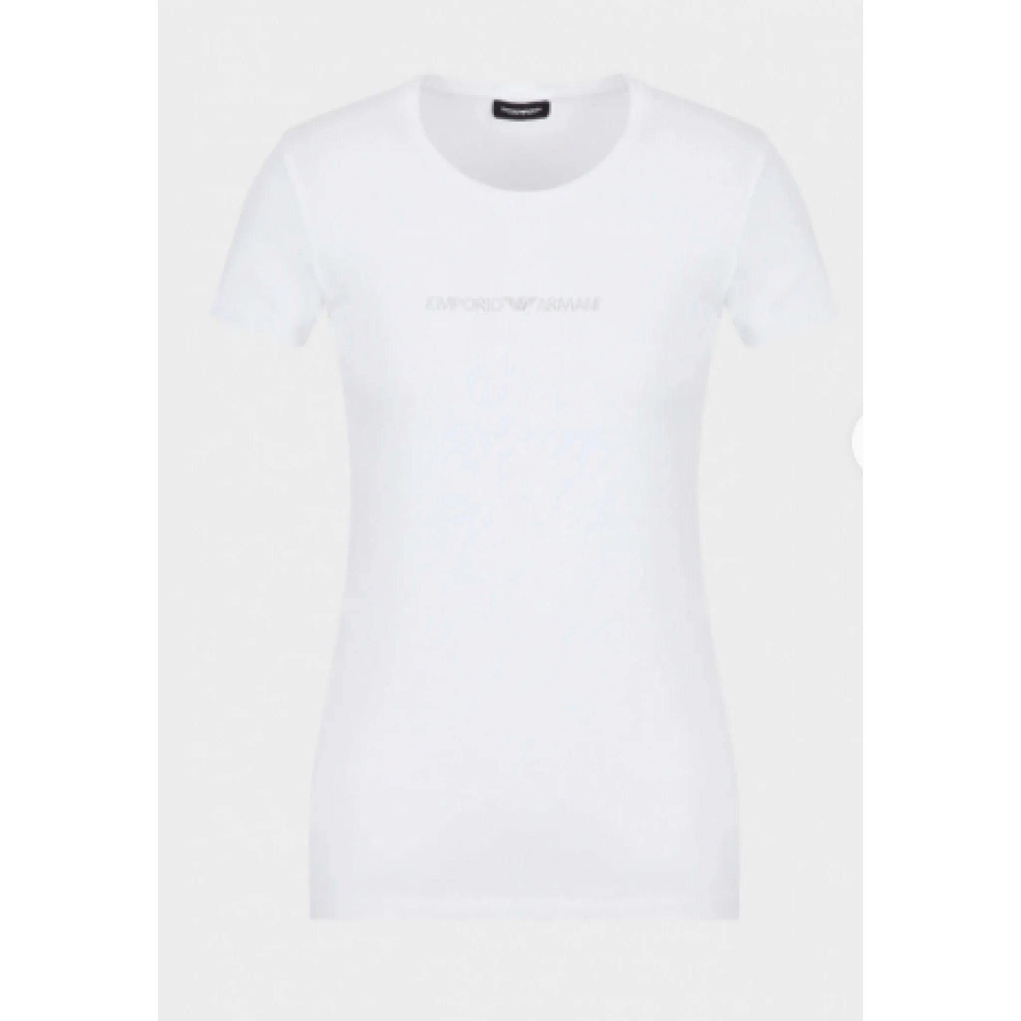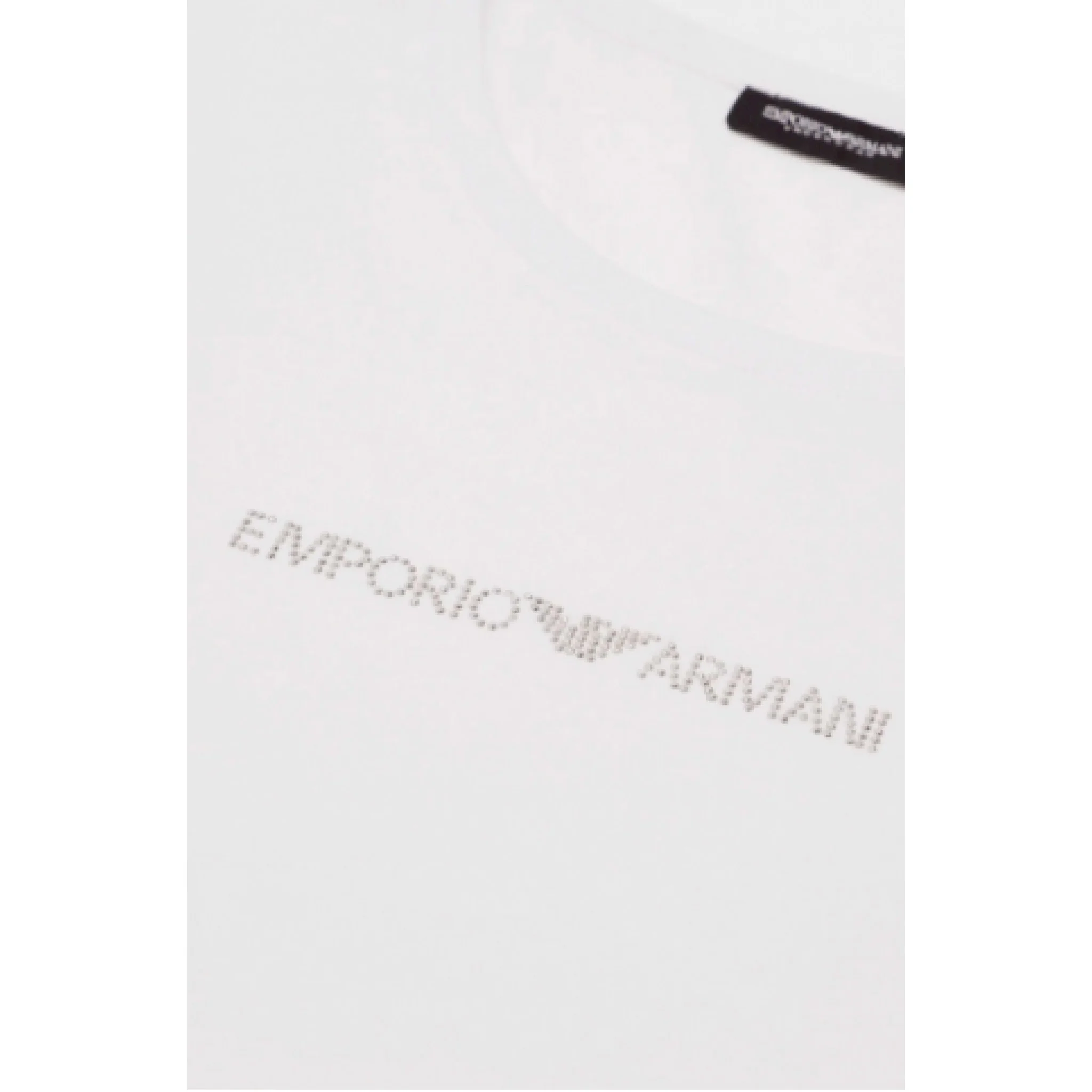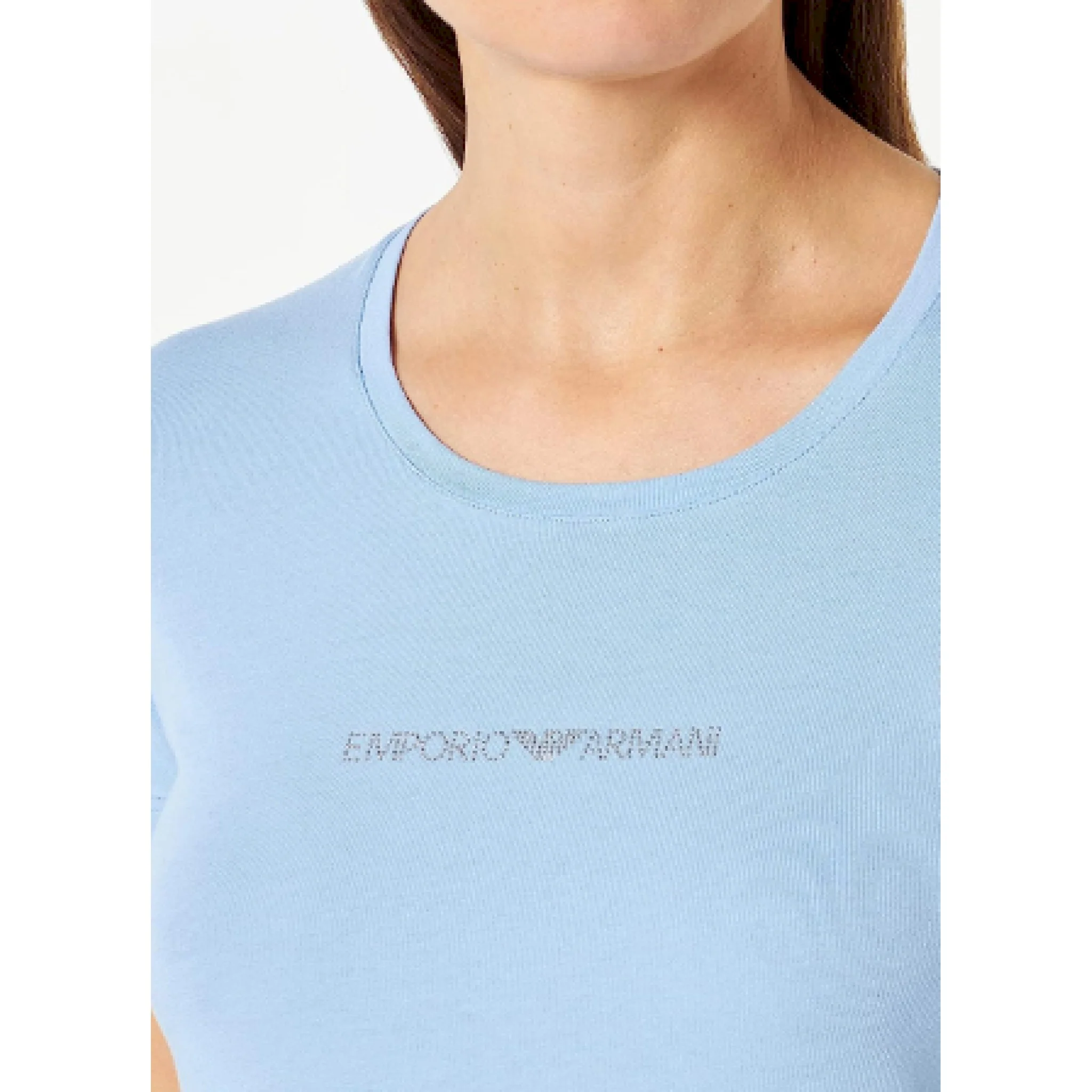 T-shirt sfiancata mezza manica con scritta centrale brillantini