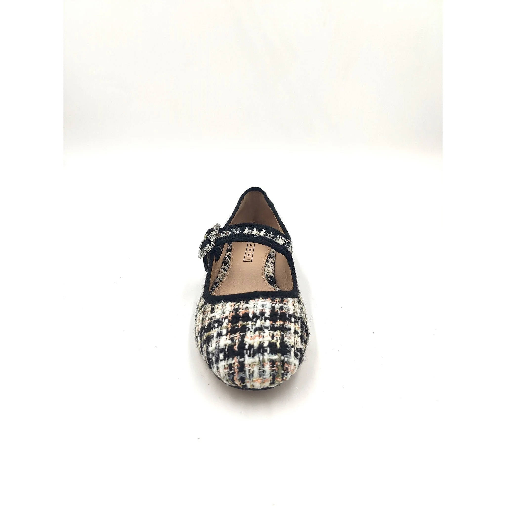 Ballerina modello bebè tweed multicolore con cinturino regolabile arricchito da fibbia gioiello