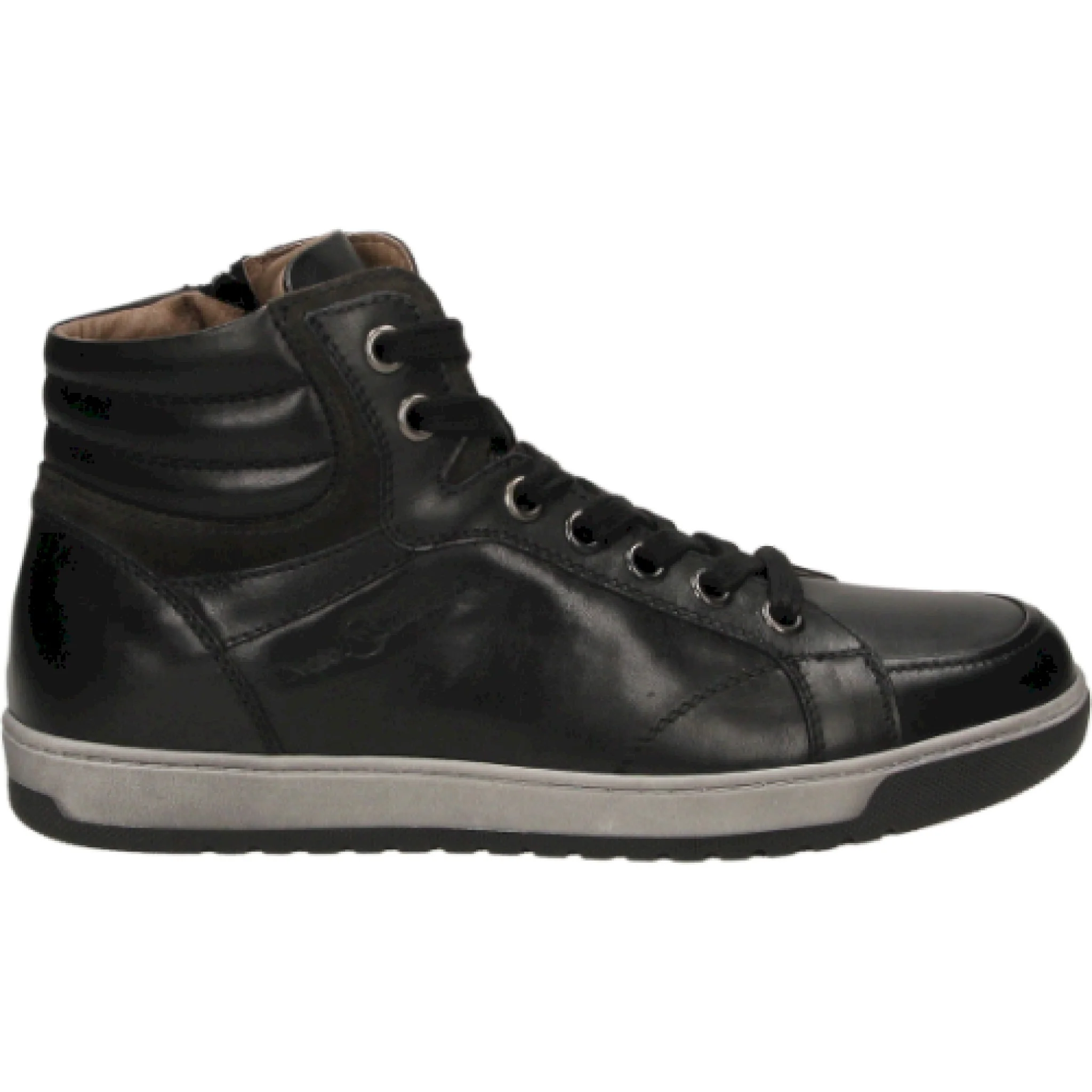 Scarponcini per uomo nero giardini realizzati in pelle nera con allaccio tramite 8 passanti e lampo interna. fodera in pelle marrone, sottopiede estraibile in pelle marrone, fondo in gomma nero. scarpe nero giardini modello a604370u royal nero. catalogo autunno inverno 2016 2017.