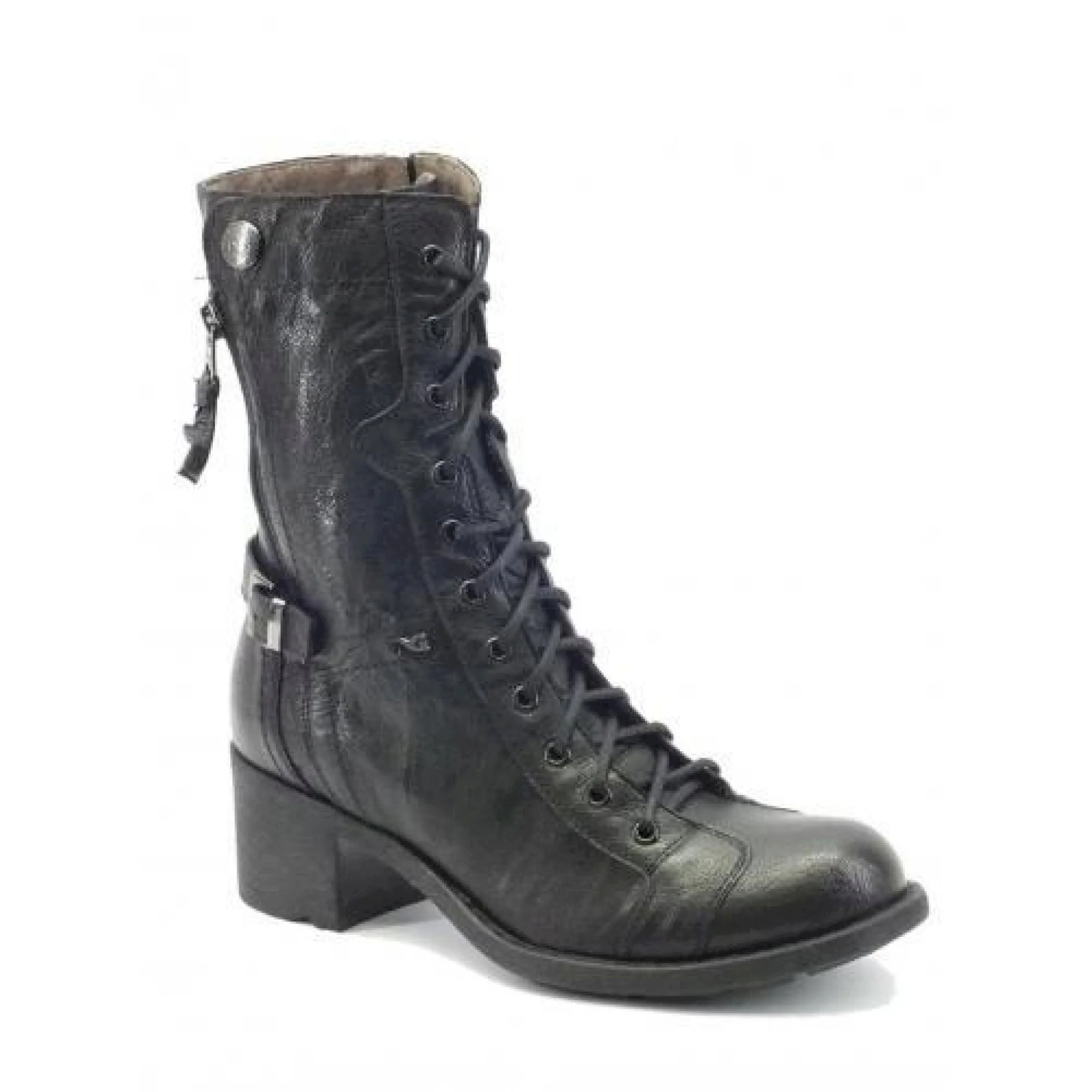 Anfibi per donna nero giardini realizzati in pelle bottolata colore nero con allaccio tramite 11 passanti e lampo lato interno, con fibbia e lampo funzionale lato esterno. fodera in pelle marrone sottopiede in pelle marrone, fondo in gomma nero con tacco 5cm. scarpe nero giardini modello a616465d monaco nero. catalogo autunno inverno 2016 2017.