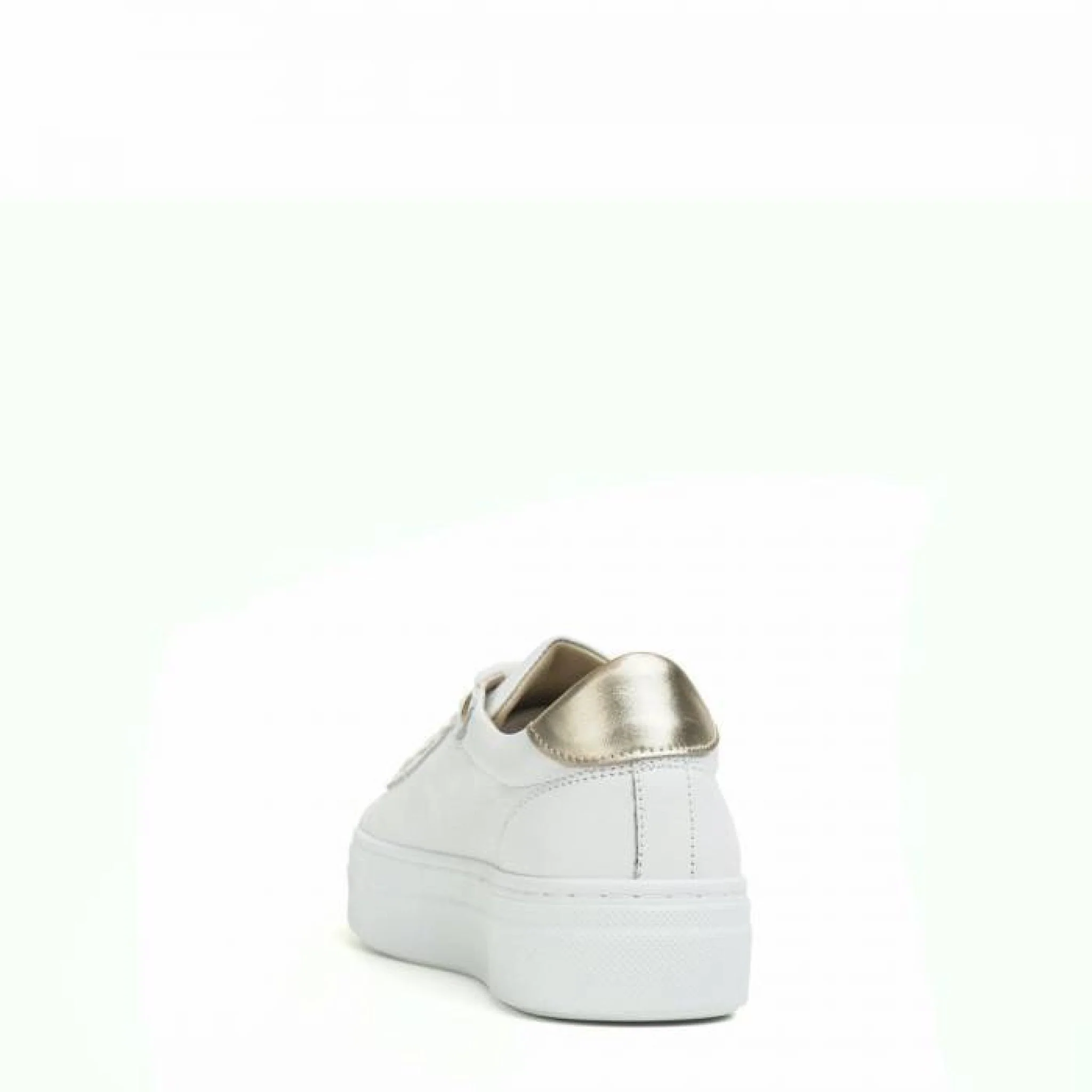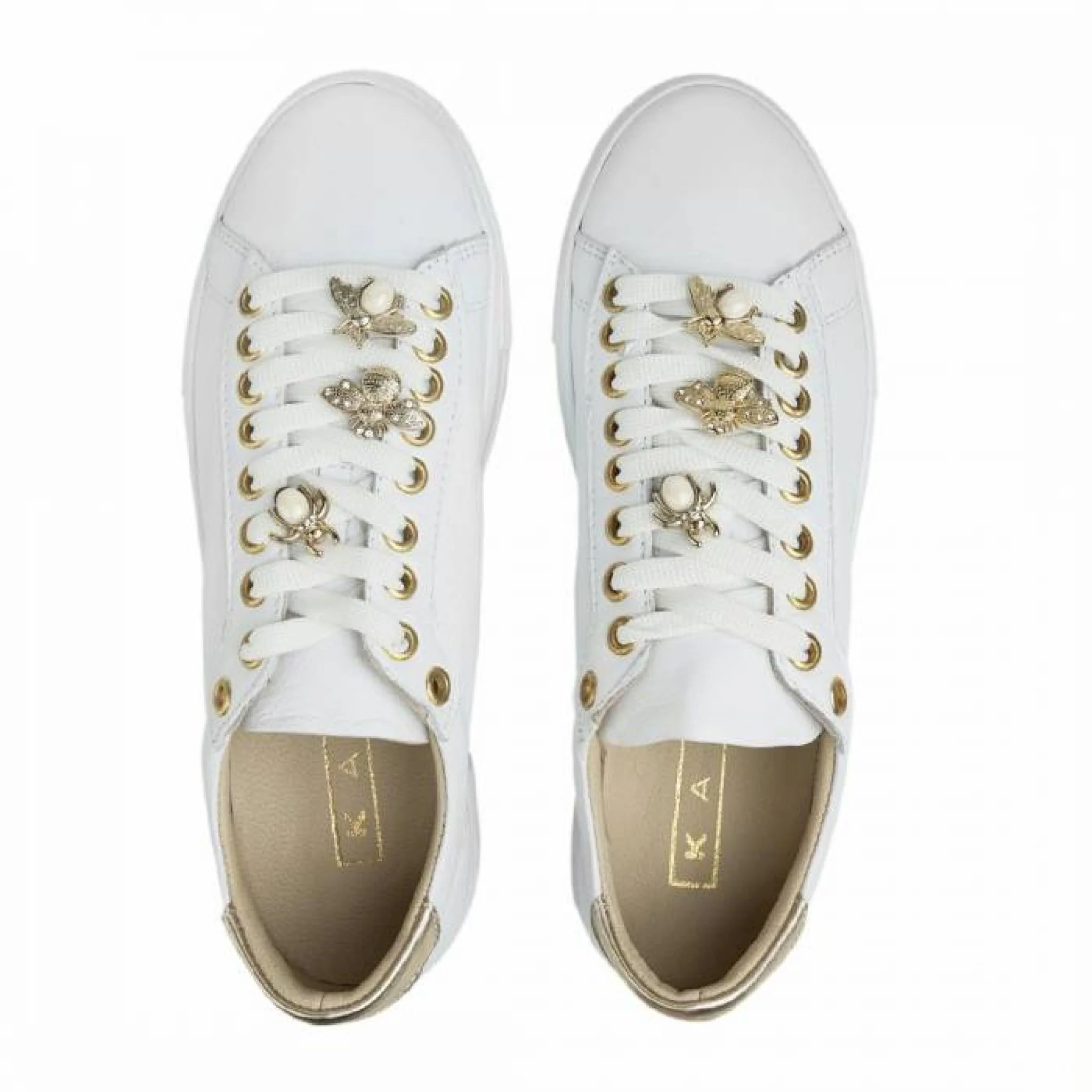 Sneakers in pelle bianca con tallonetta color platino e accessori a forma di ape, scarabeo e mosca