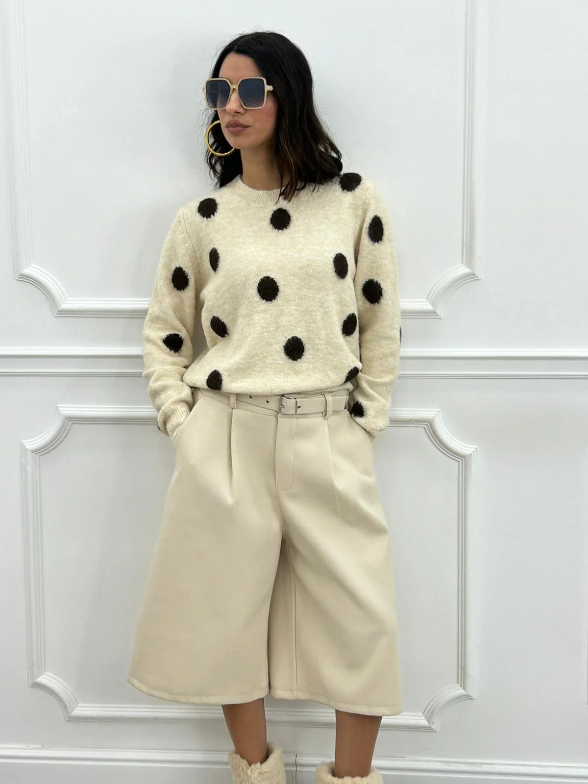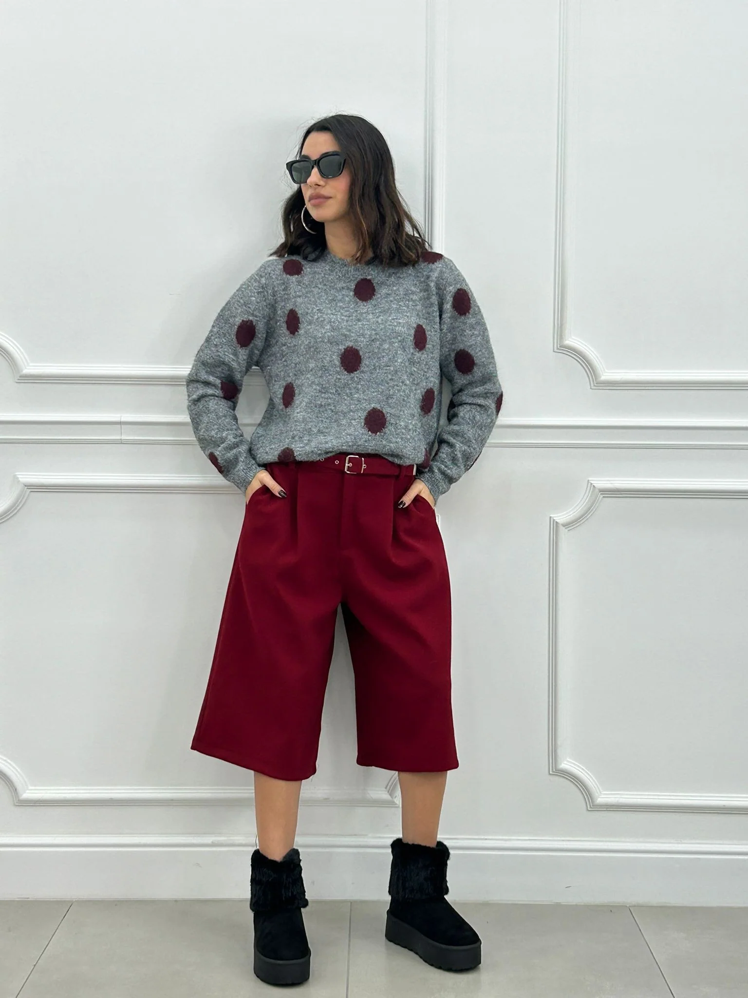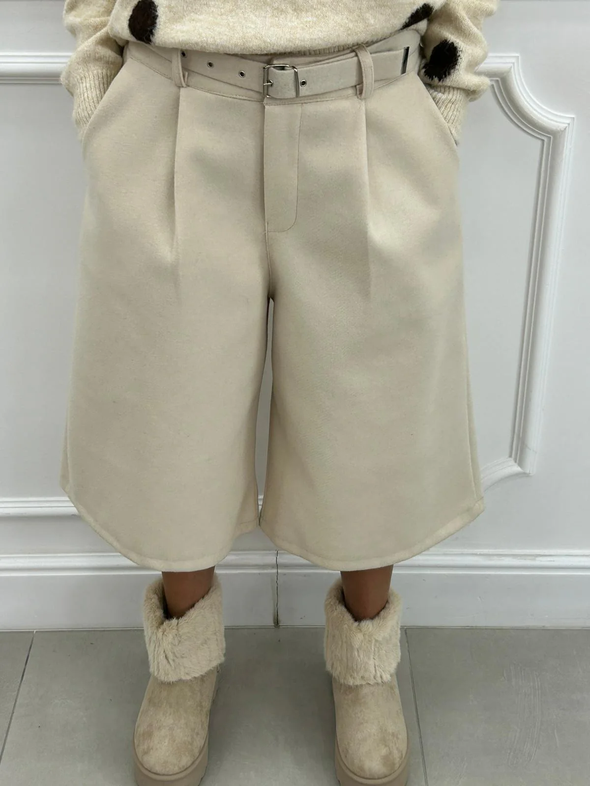Bermuda in panno con cintura e tasche ,elastico in vita