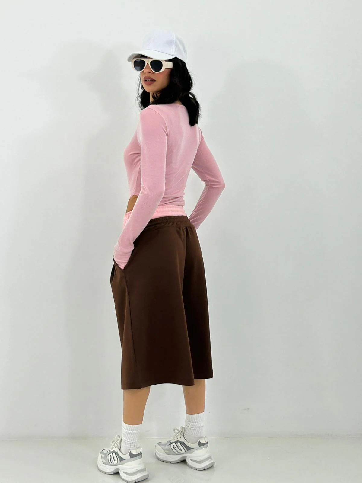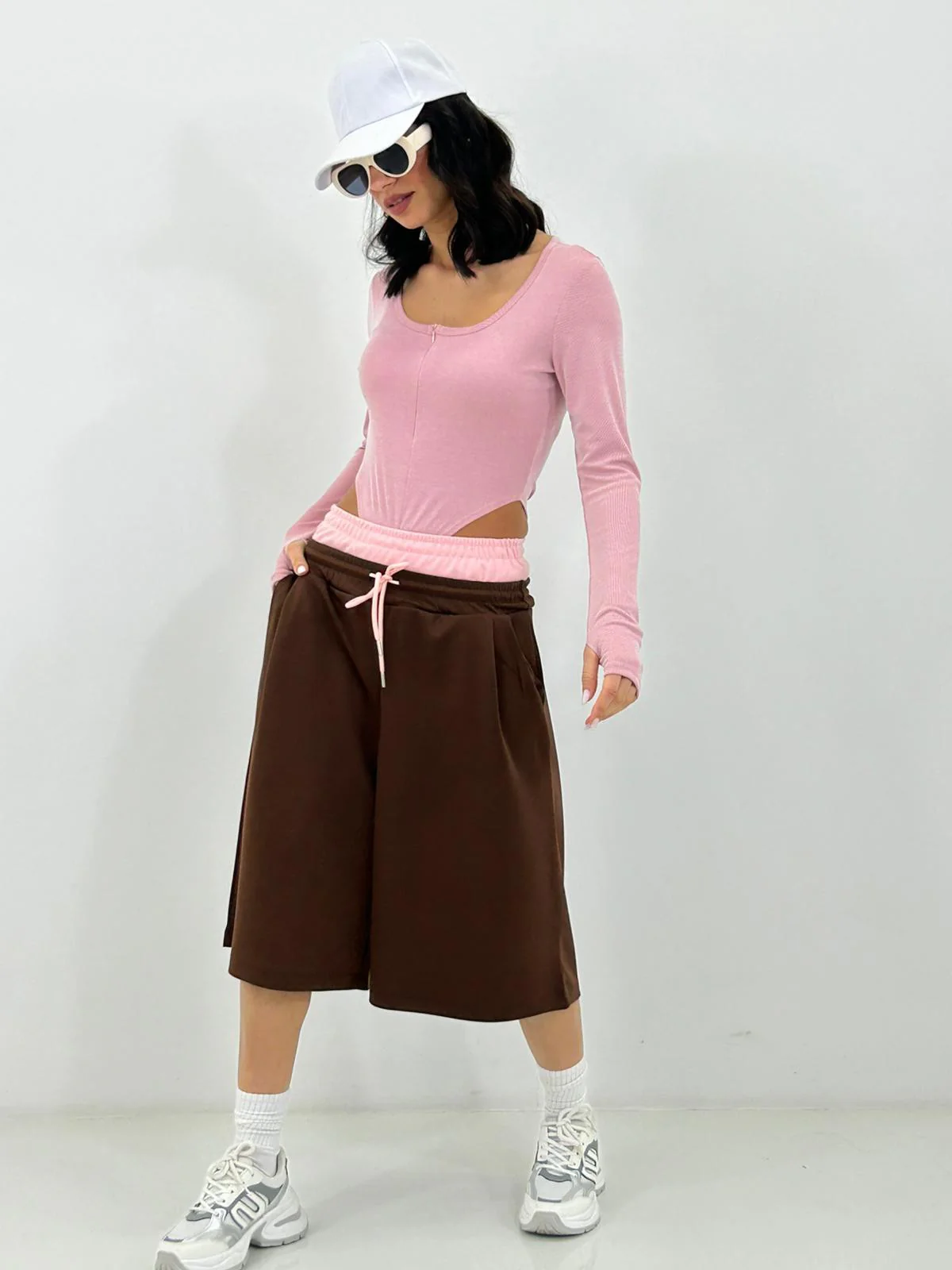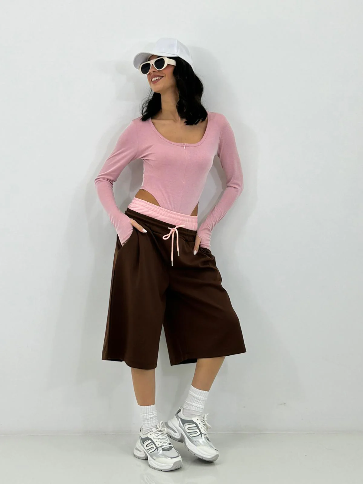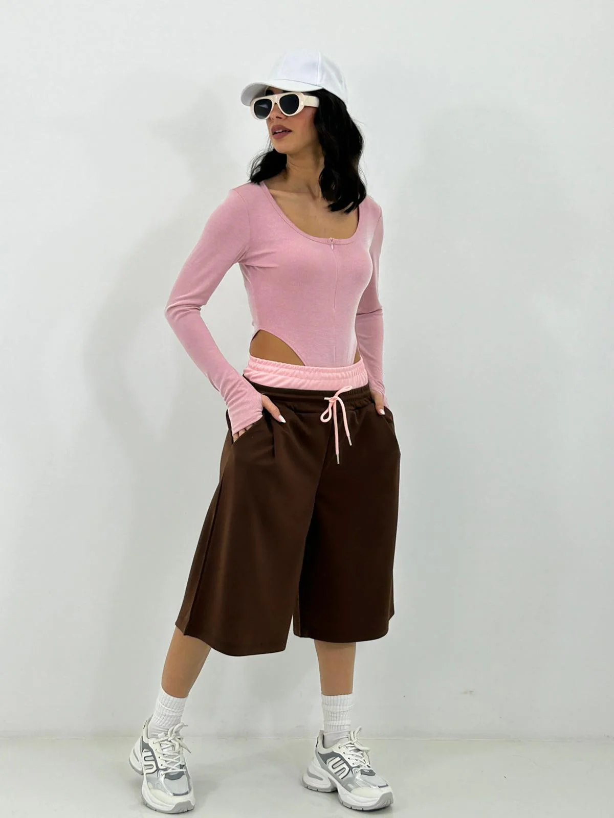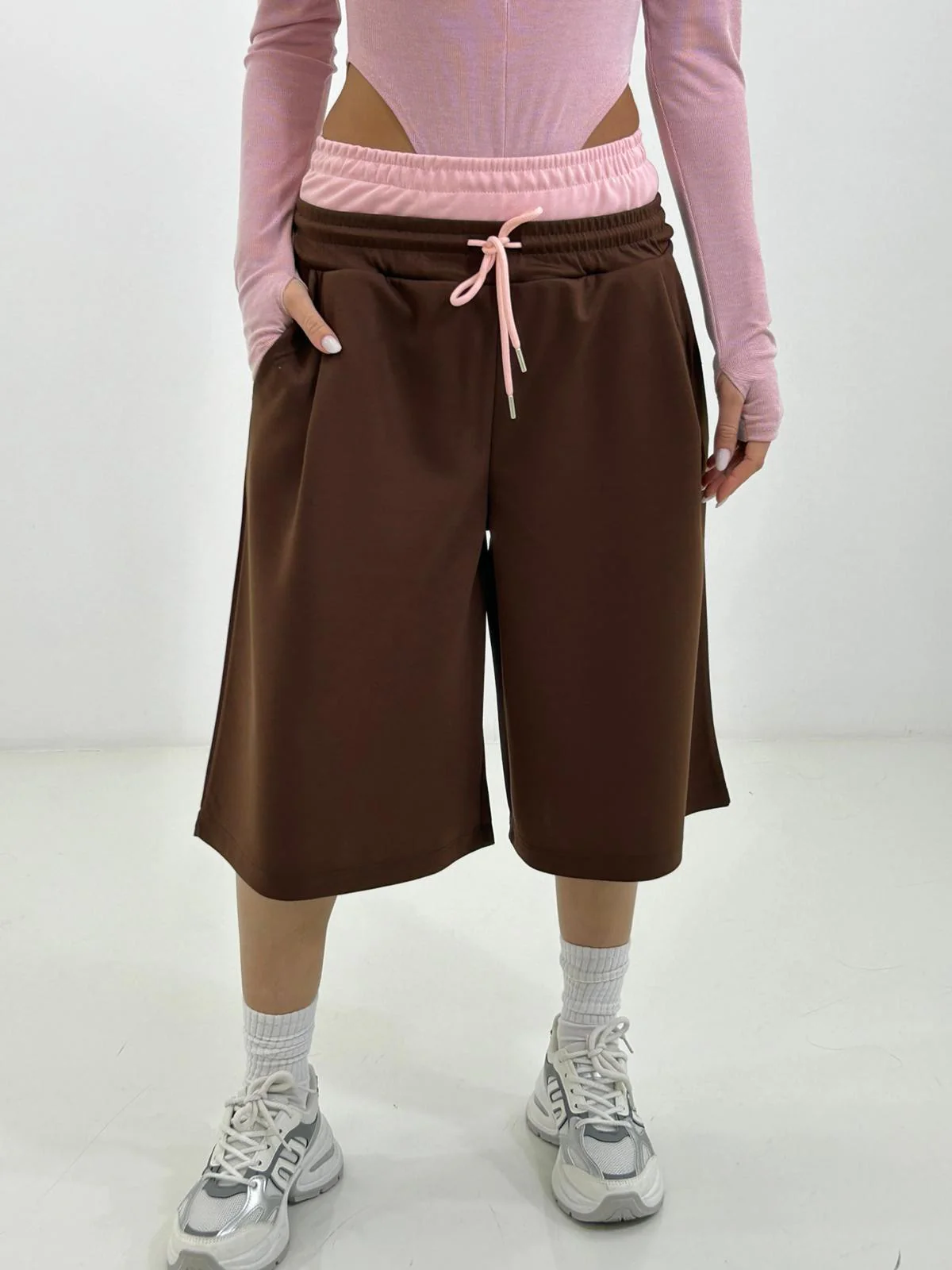 Bermuda con bustino contrasto , elastico in vita e tasche