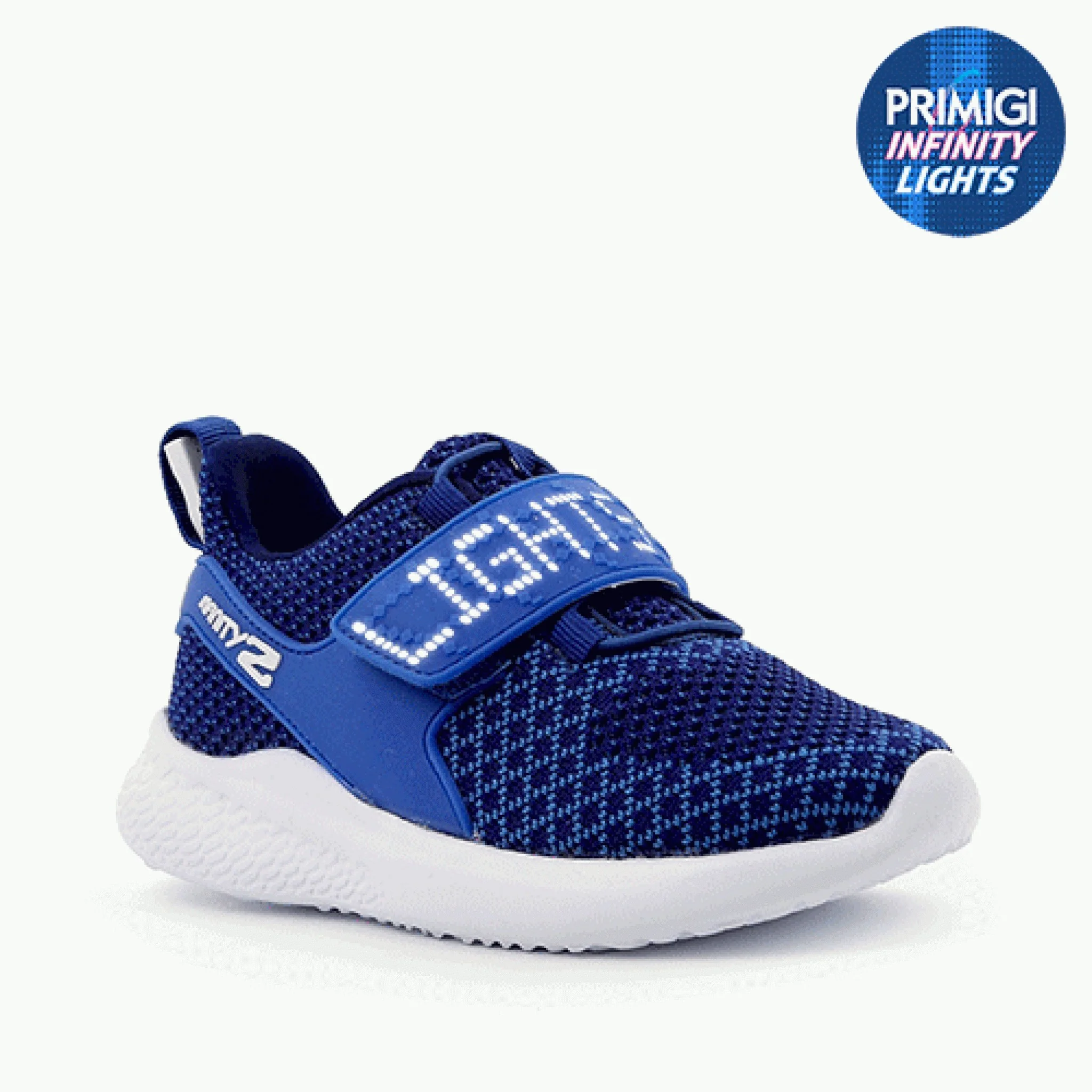 Scarpa in tessuto con velcro e luci a led con la possibilita’ tramite la app di primigi da scaricare si possono scrivere messaggi , inserire decori e molto altro , un scarpa fantastica