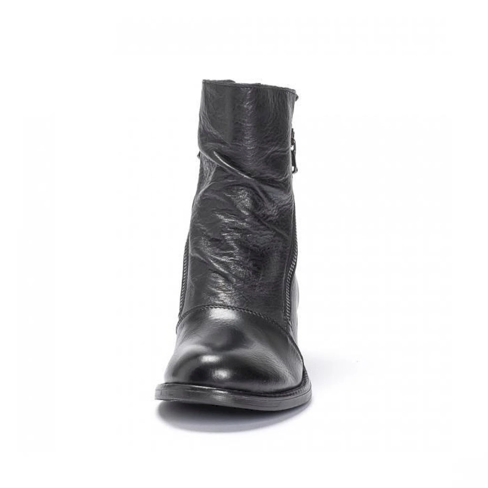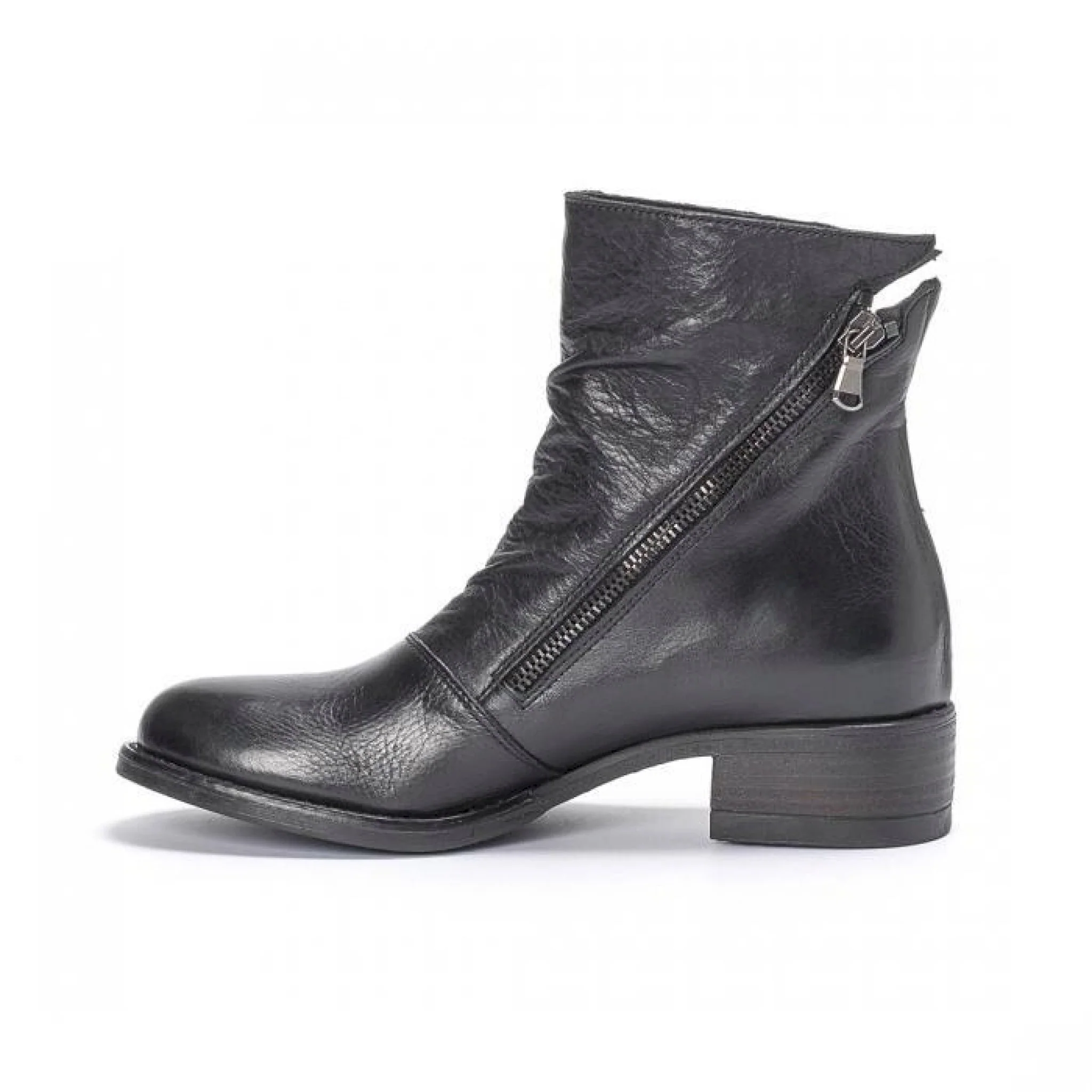 Stivaletto stile biker in pelle nera martellata con doppia cerniera
