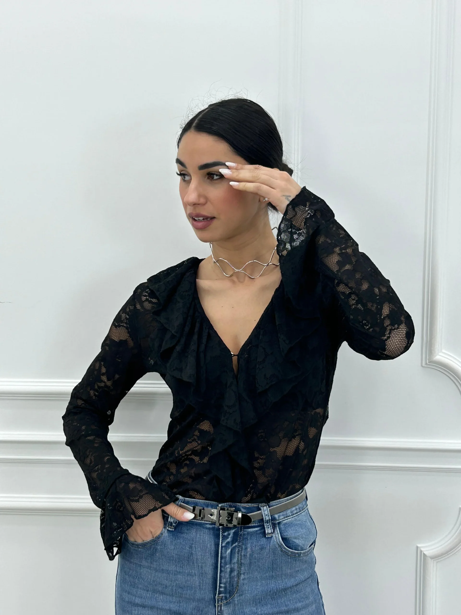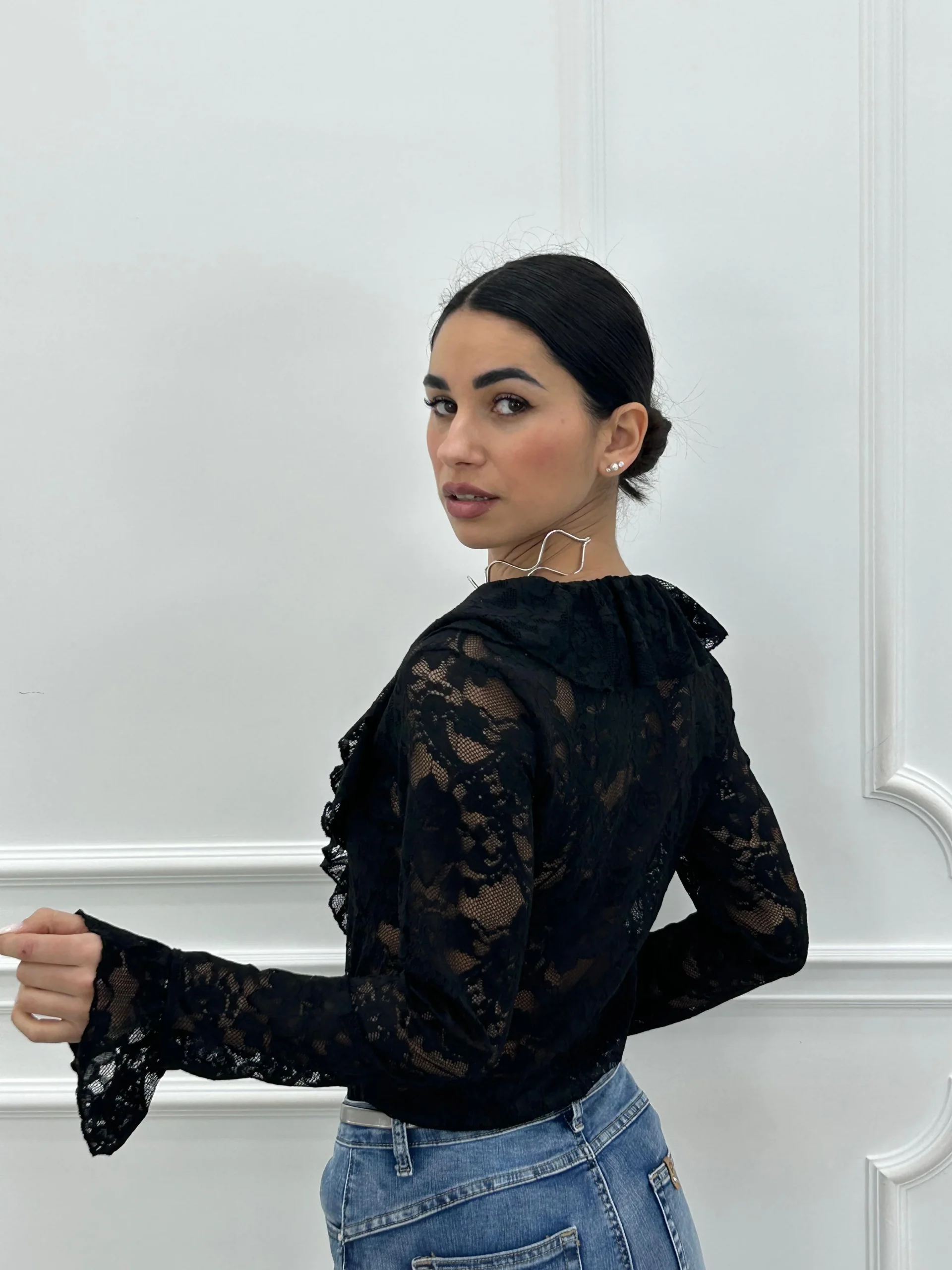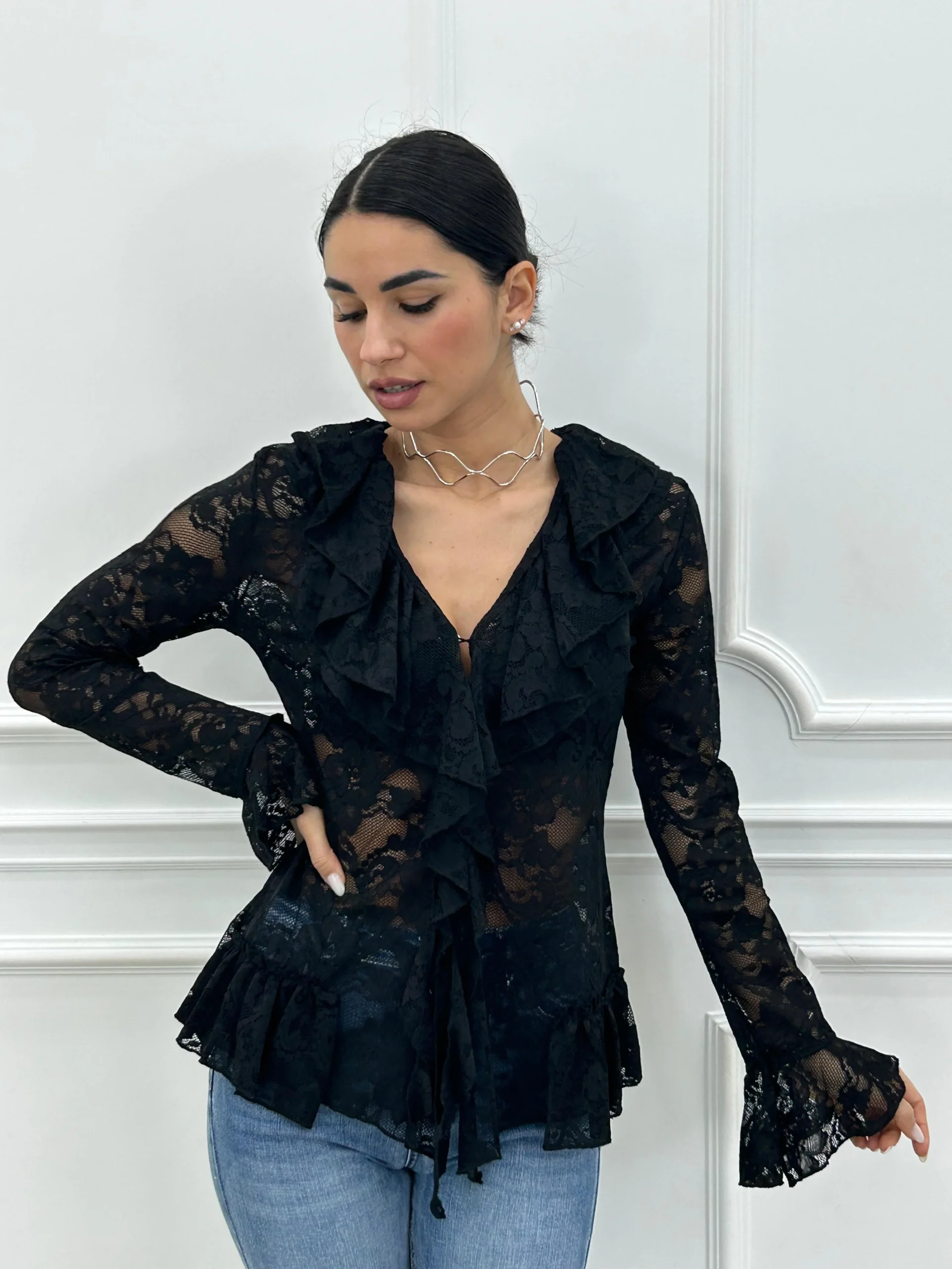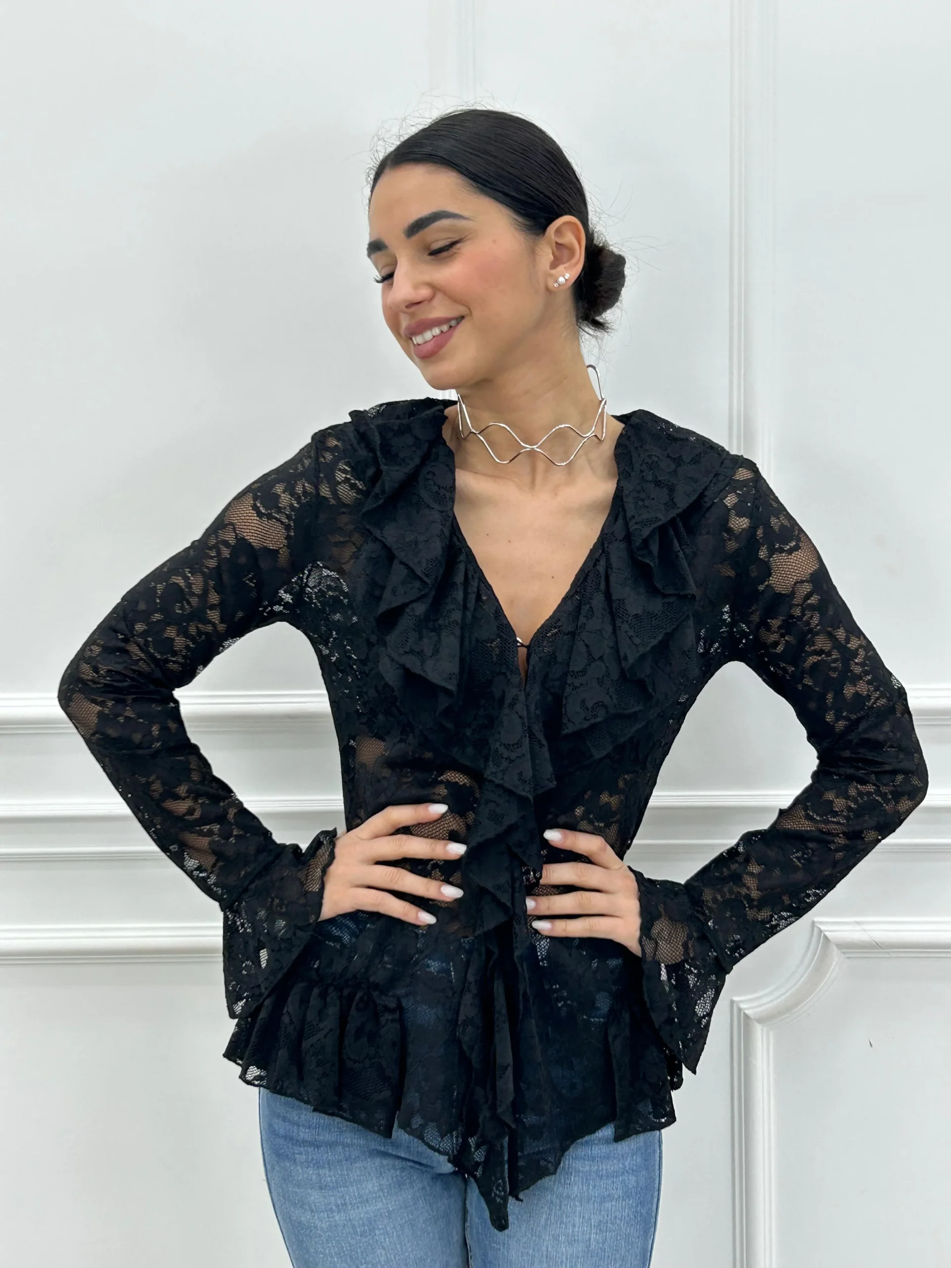 Camicia pizzo e rouche,con bottoni