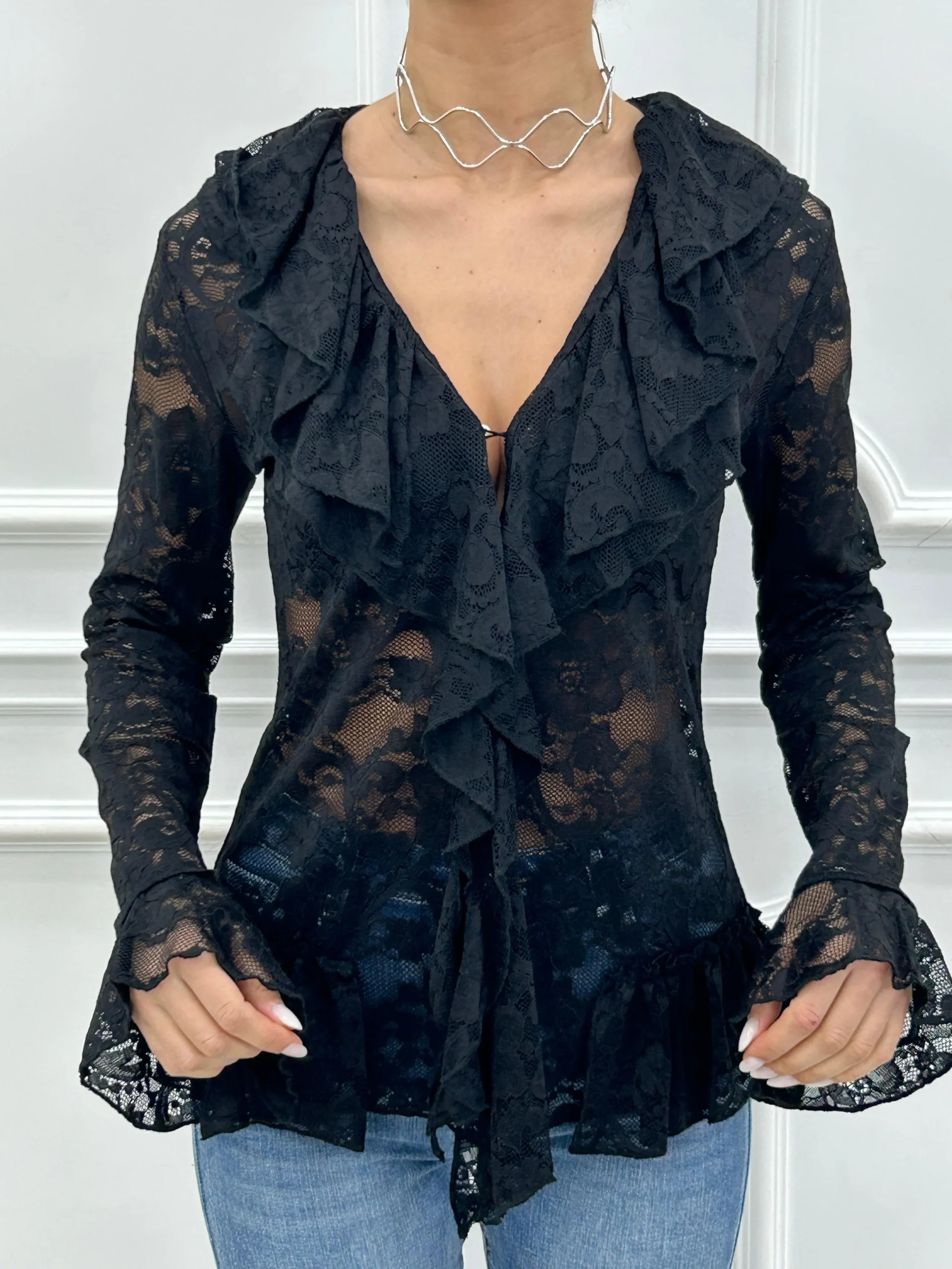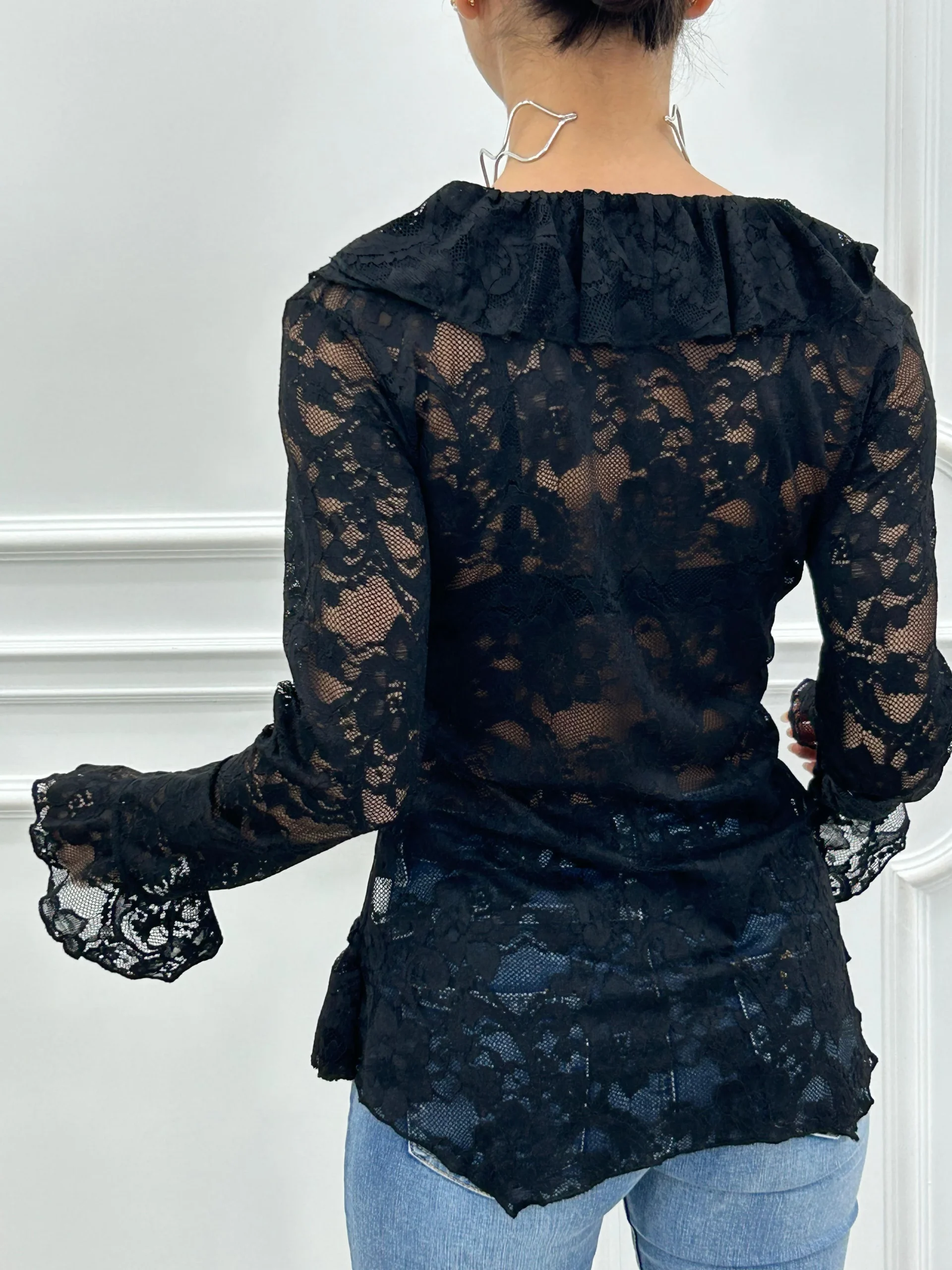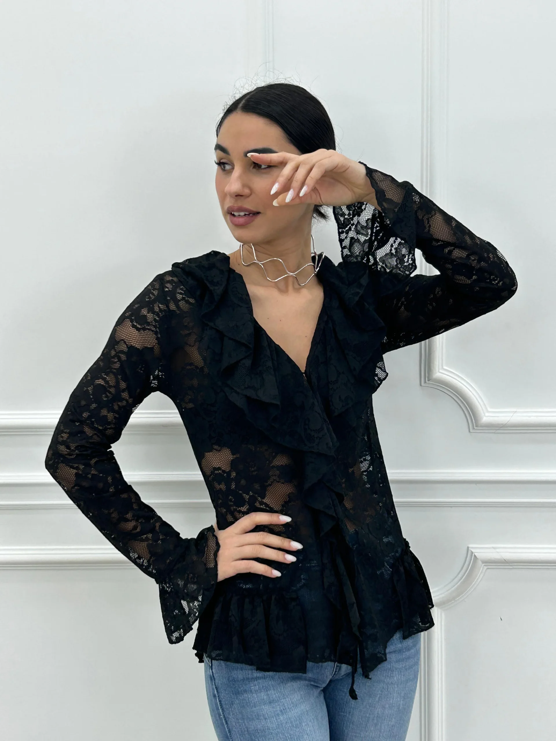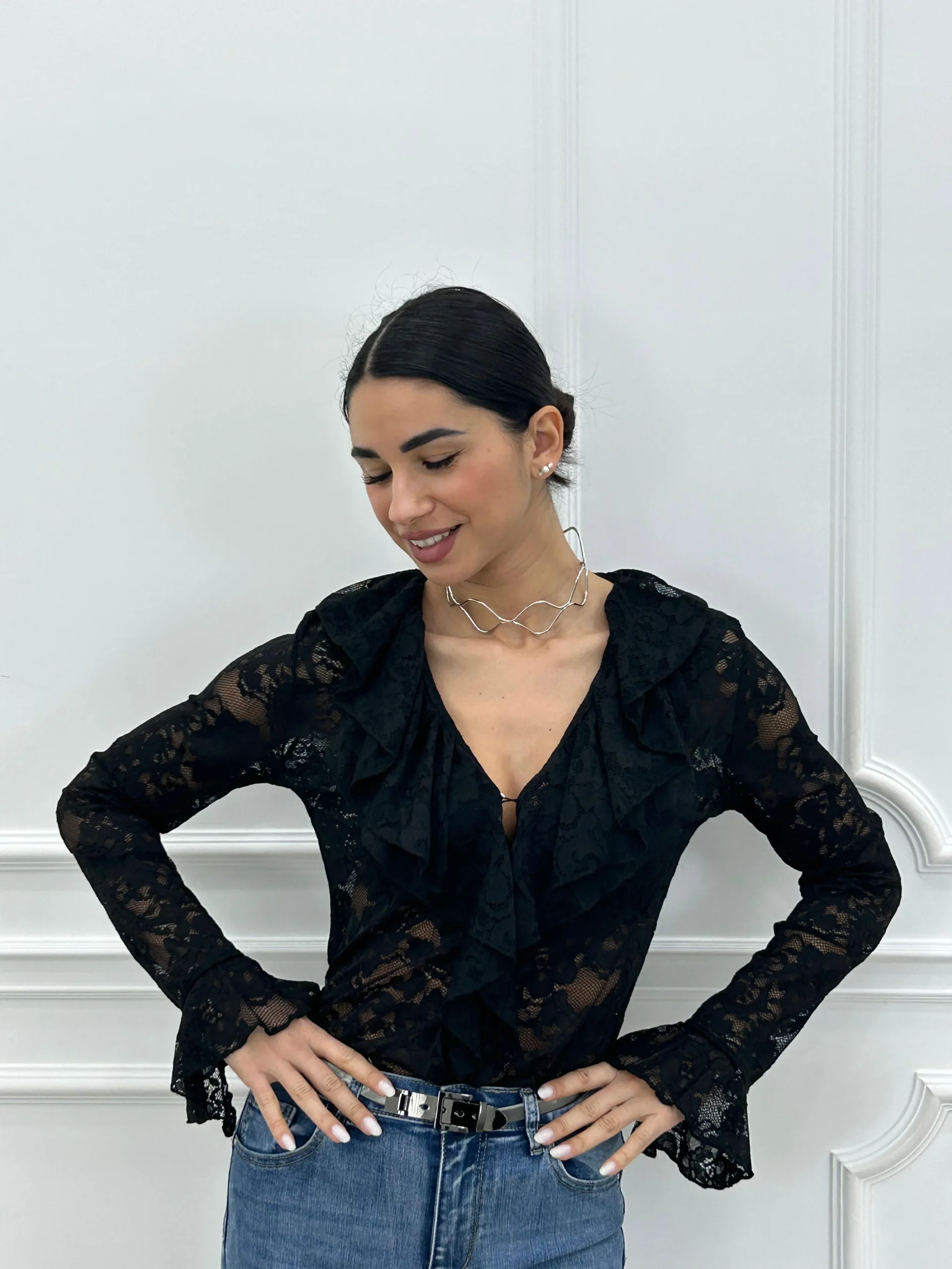 Camicia pizzo e rouche,con bottoni
