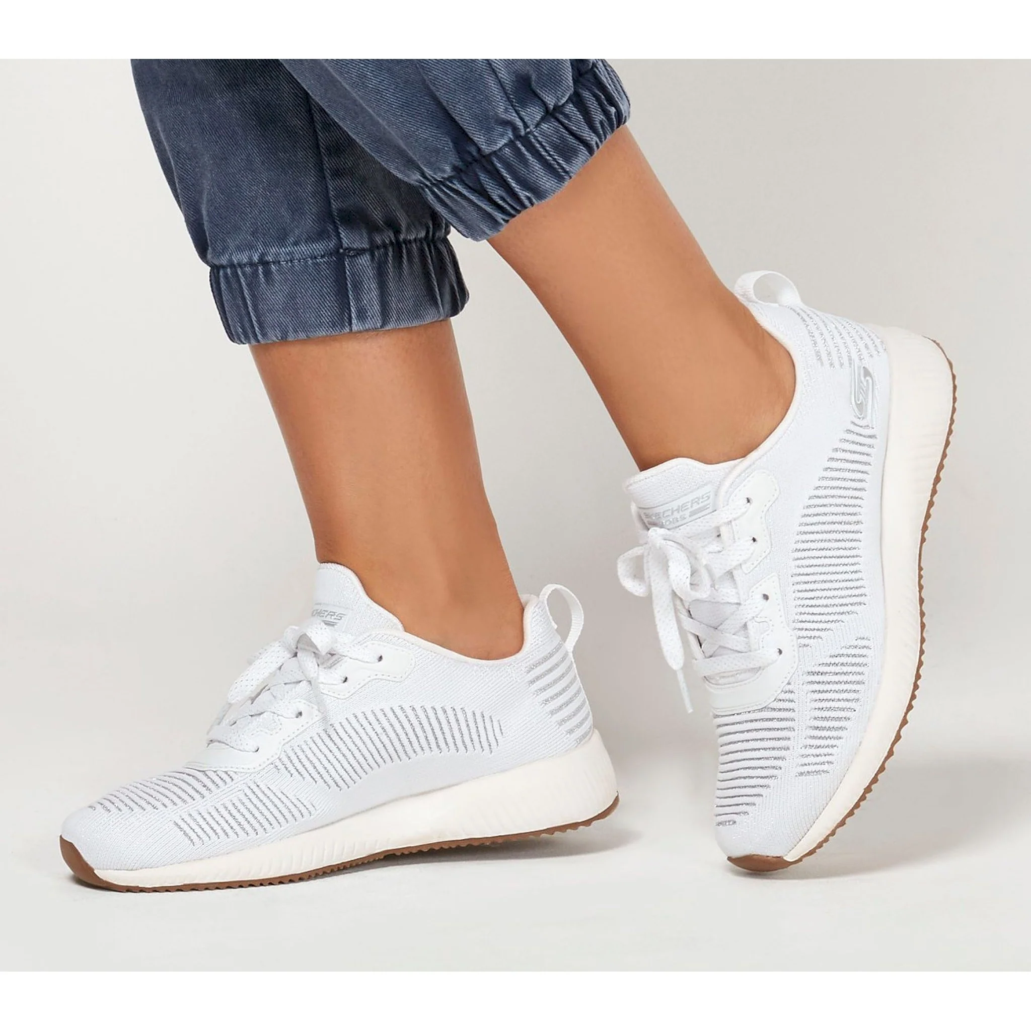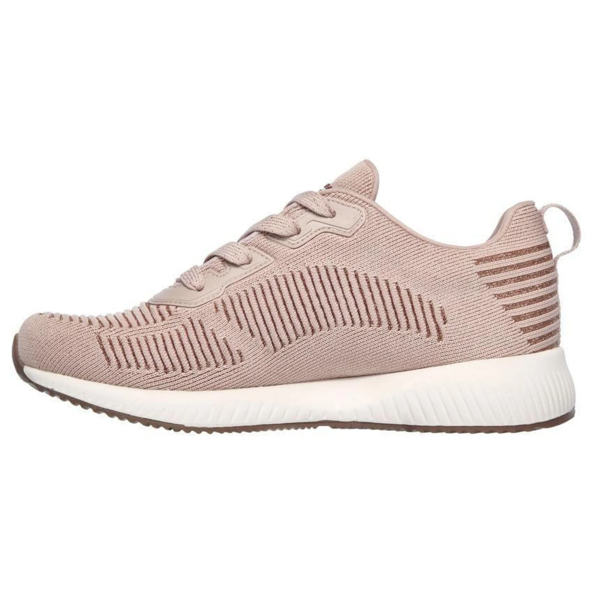La bella sneaker si unisce a un comfort straordinario nella scarpa skechers bobs sport squad – glam league. tomaia in morbido tessuto sportivo lavorato a maglia con accenti scintillanti in una sneaker alla moda con lacci con sovrapposizioni sintetiche e soletta memory foam.