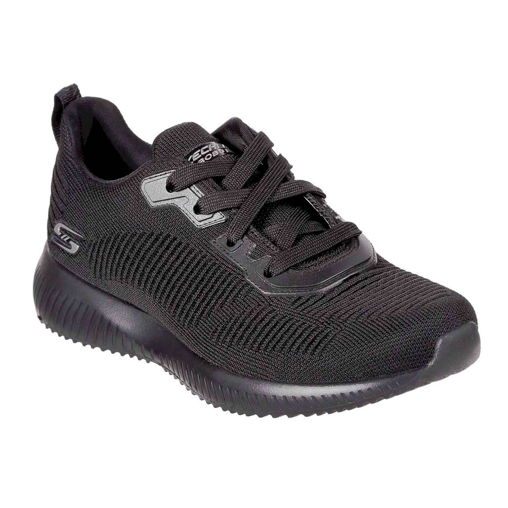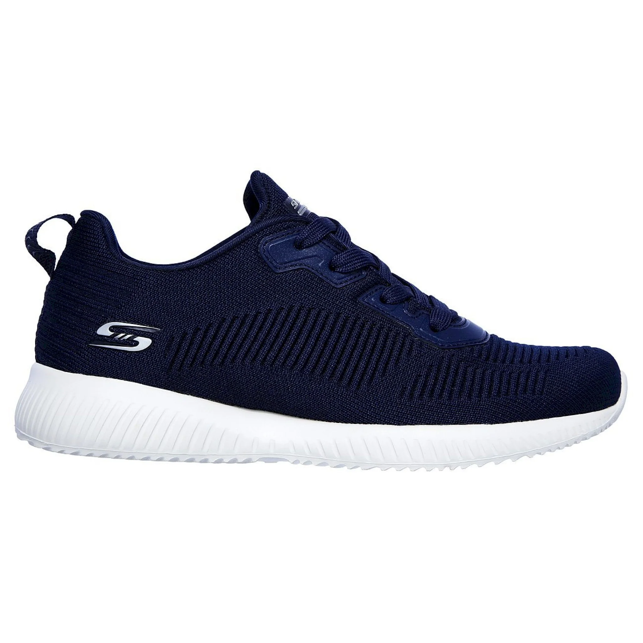 Sostieni sempre le tue richieste in stile sportivo e comfort totale con la scarpa skechers bobs sport squad – tough talk. tomaia in morbido tessuto lavorato a maglia in una sneaker alla moda con lacci sovrapposti sintetici e soletta memory foam.