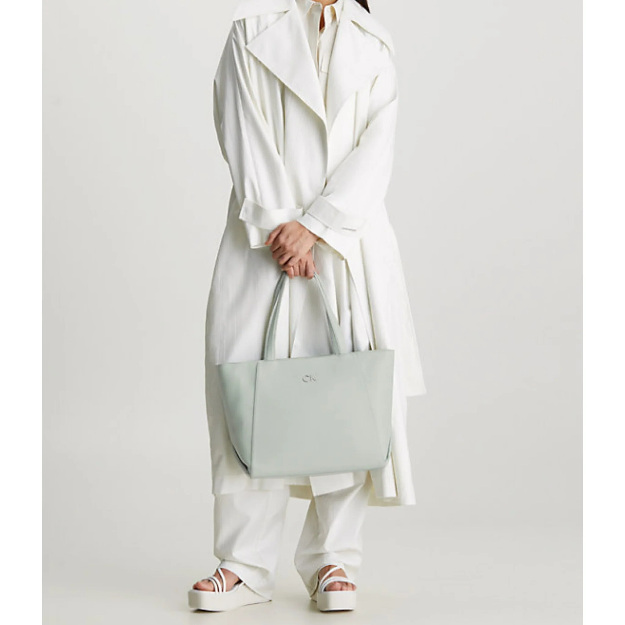 • rivetto con iconico monogramma calvin klein in argento lucido