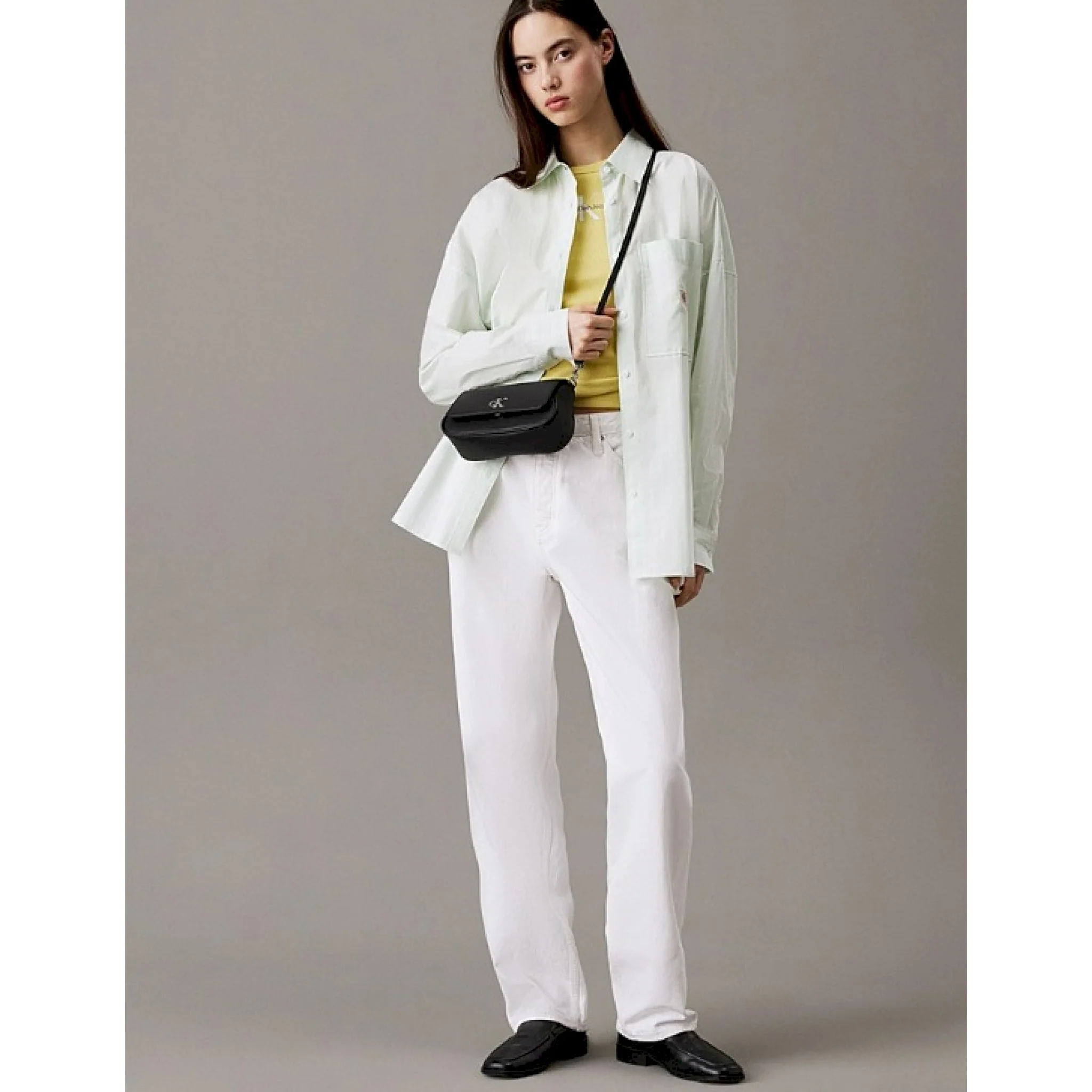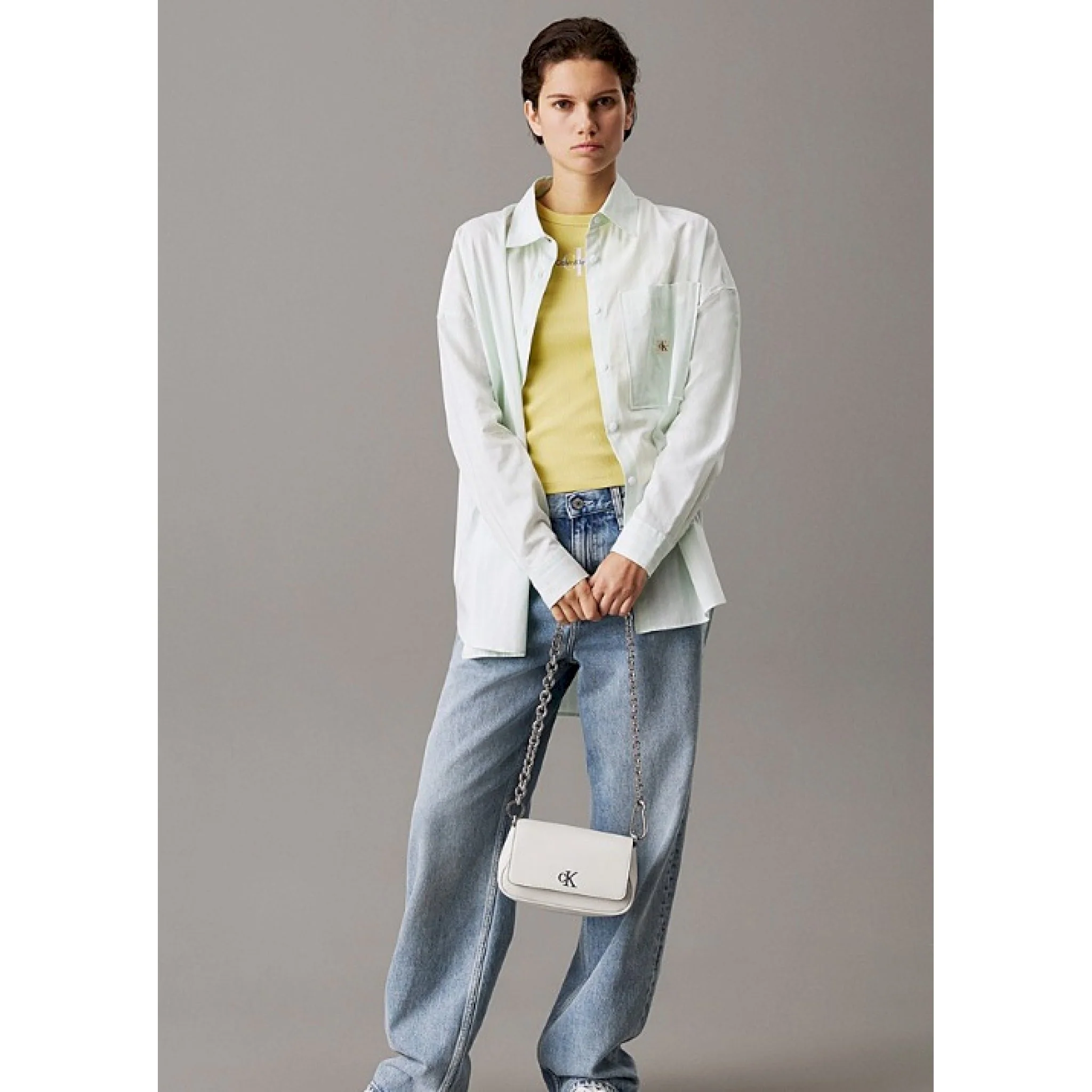 • monogramma metallico con firma calvin klein sul davanti