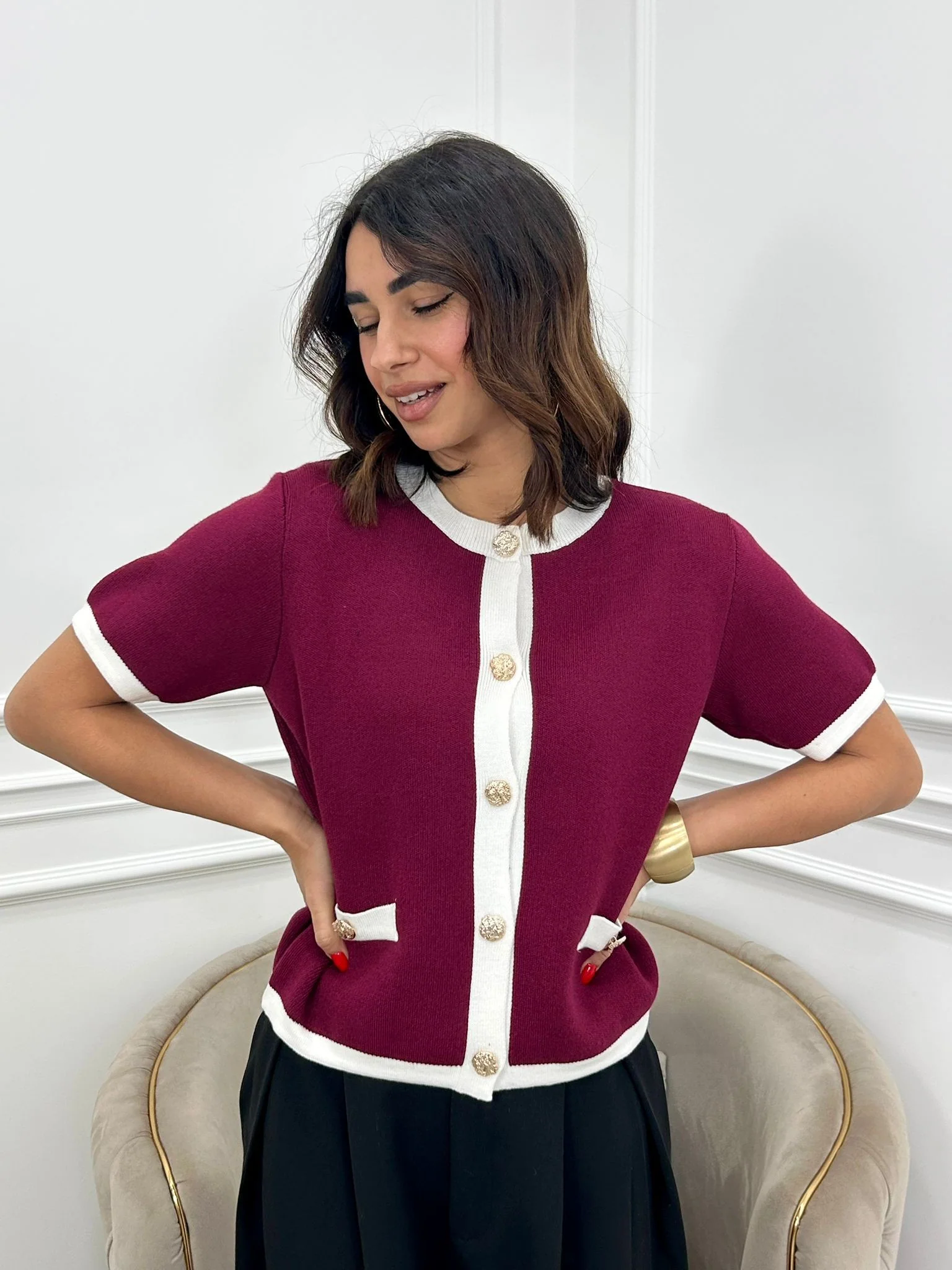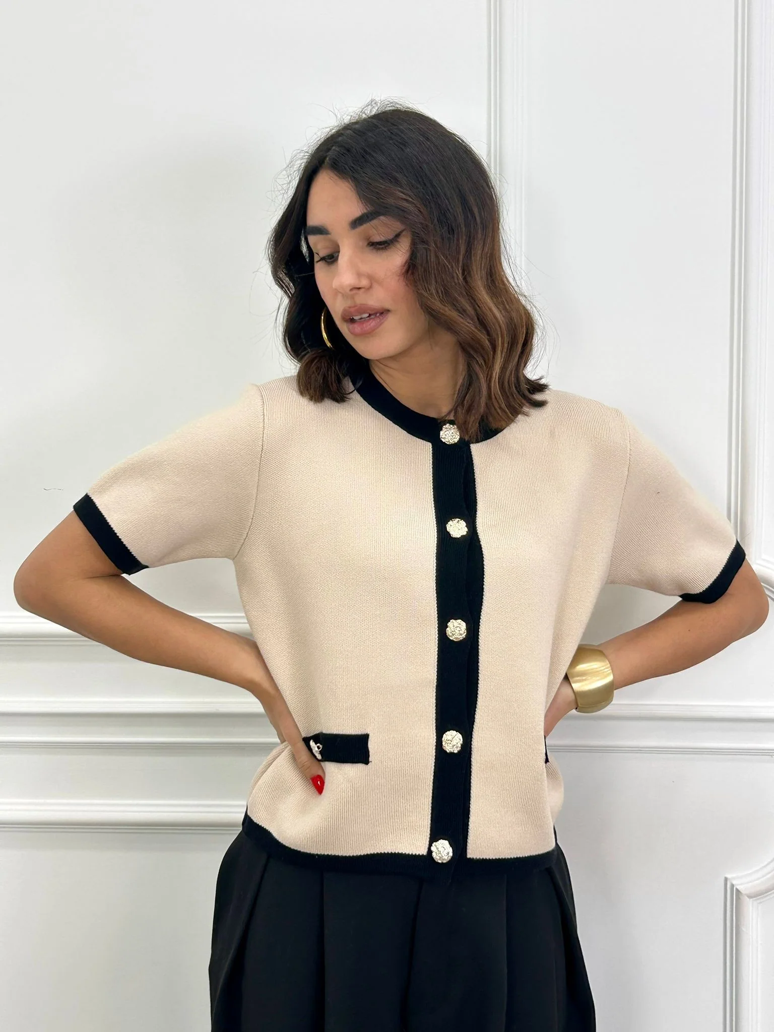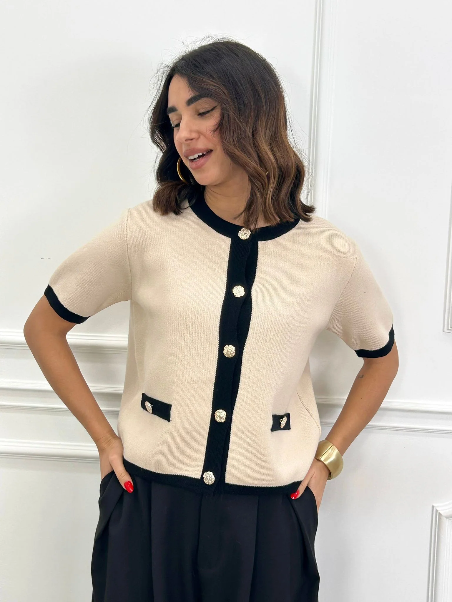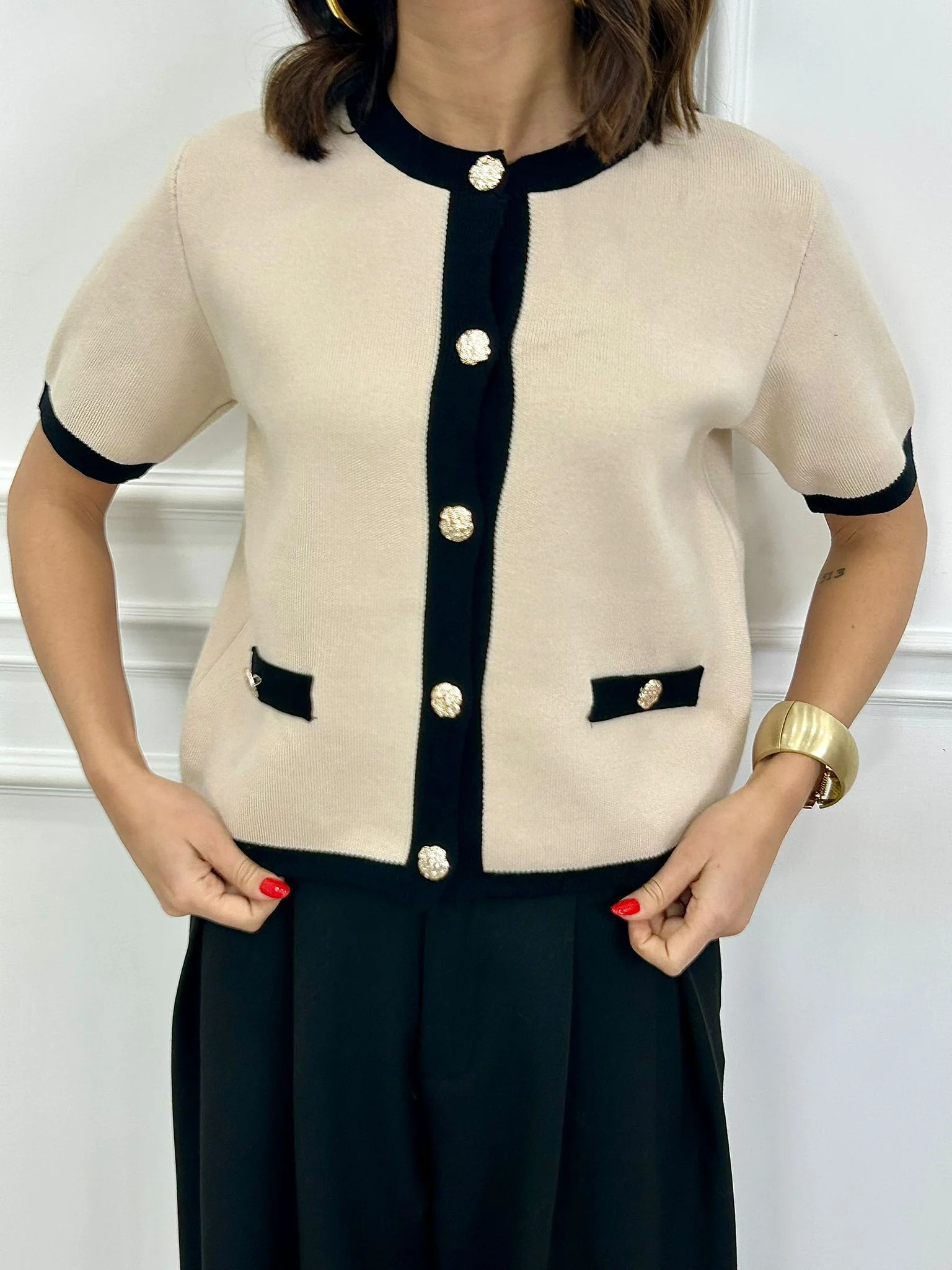 Cardigan mezza manica con bottoni