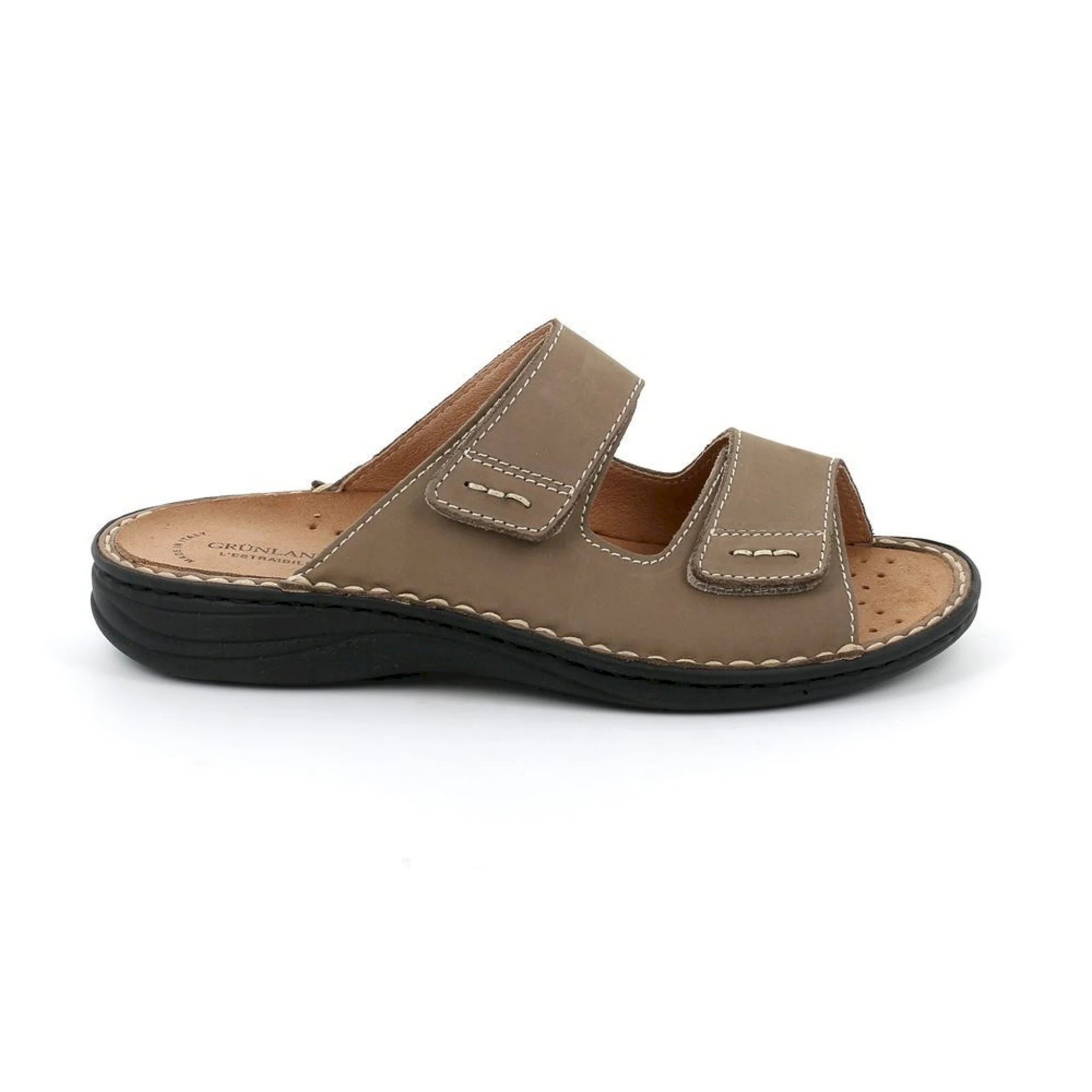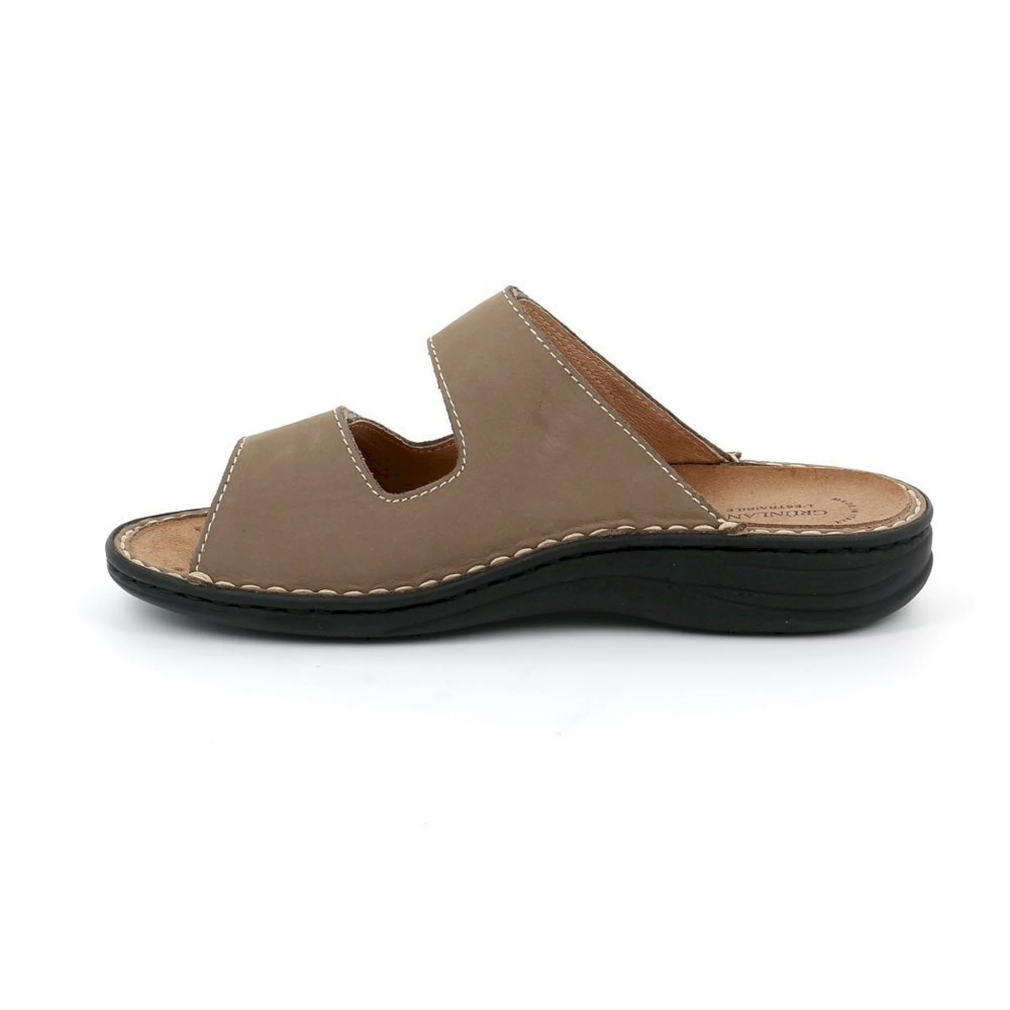 Interamente costruita in italia con vera pelle nabuk questa ciabatta con plantare intercambiabile in sughero naturale è confortevole e morbida da poter essere indossata tutto il giorno. provala!