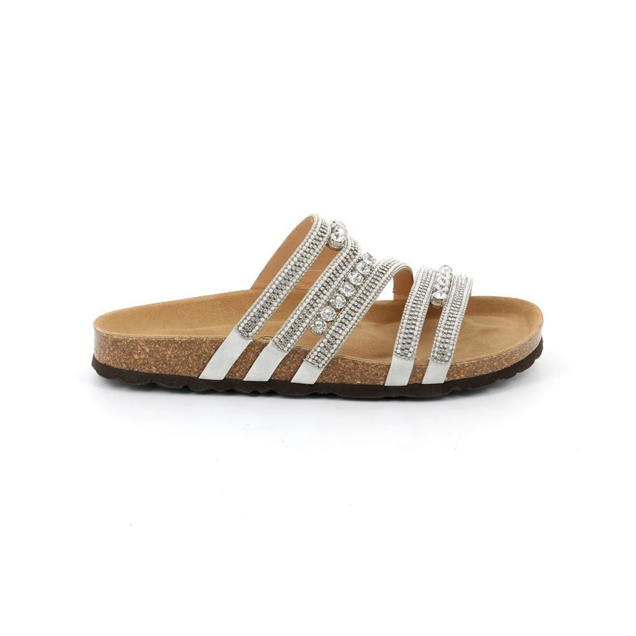 Questa favolosa ciabatta darà quel tocco glamour al tuo look, che tu la voglia indossare negli afosi pomeriggi di sole o nelle calde serate estive, lei non ti farà mai passare inosservata. massimo comfort grazie al plantare in sughero e tutto lo stile del nome grünland.