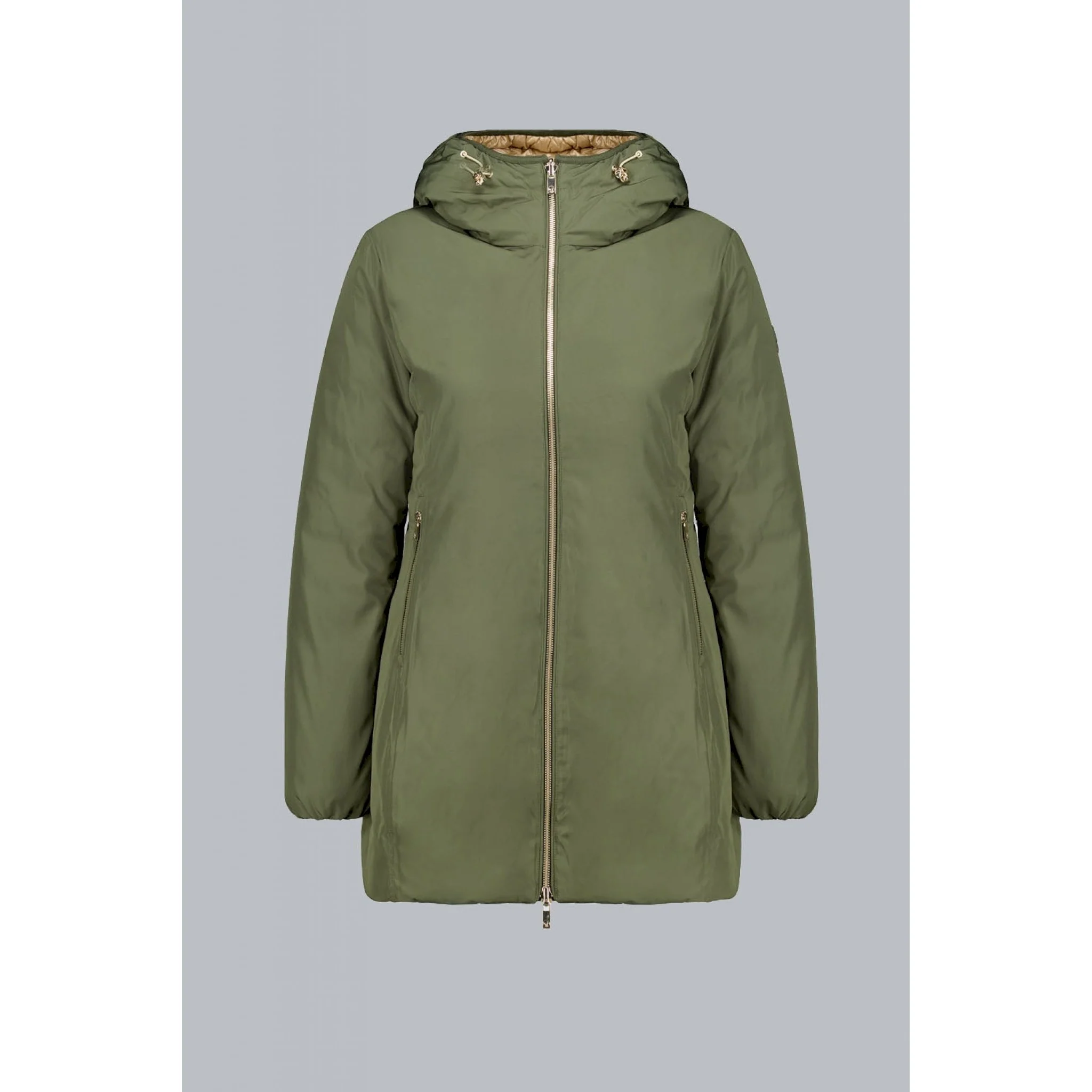 – zip reversibile: in tono lato trapuntato/dorato lato liscio