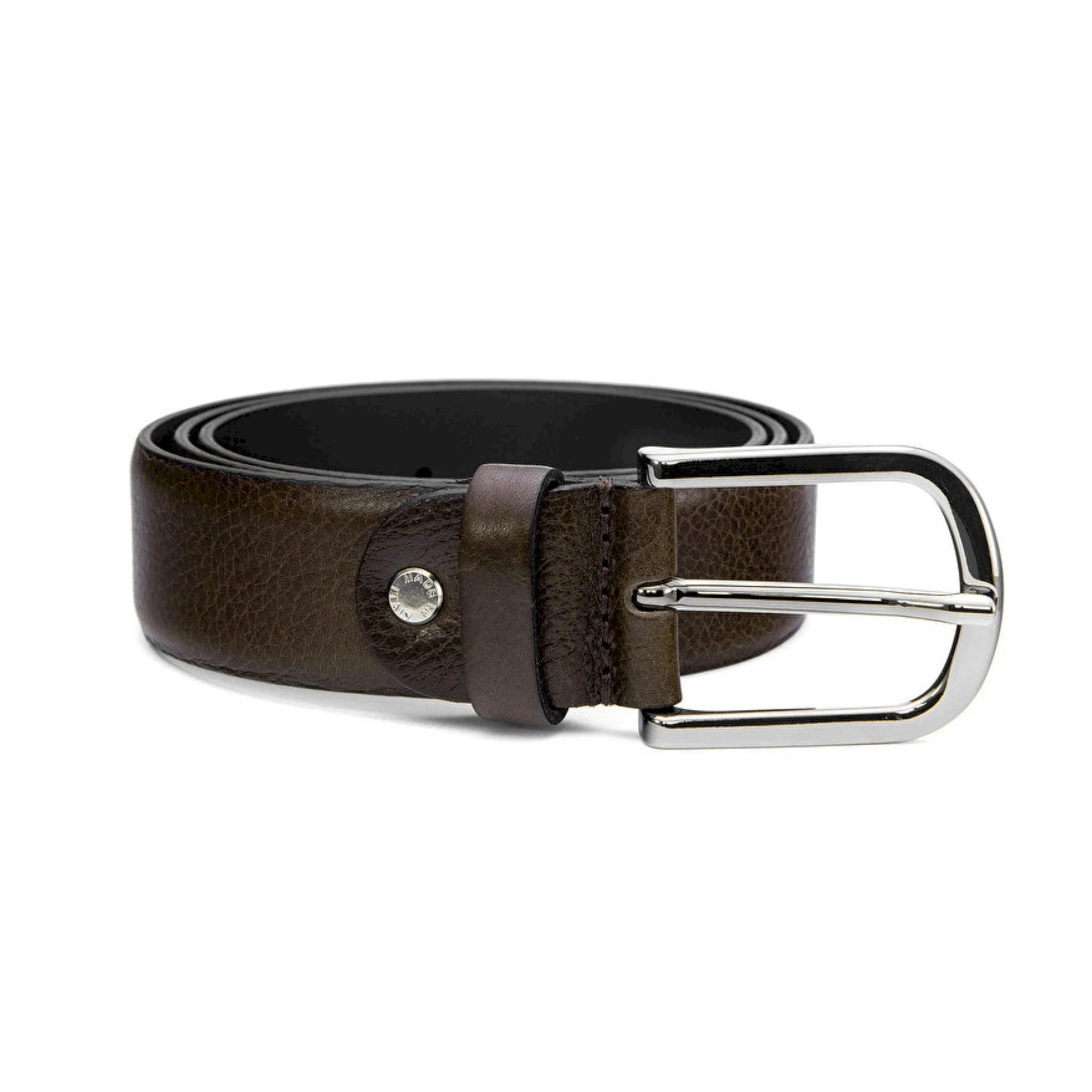 Elegante cintura realizzata in pelle bottalata con fibbia in metallo e passante in tinta. altezza 5 cm.