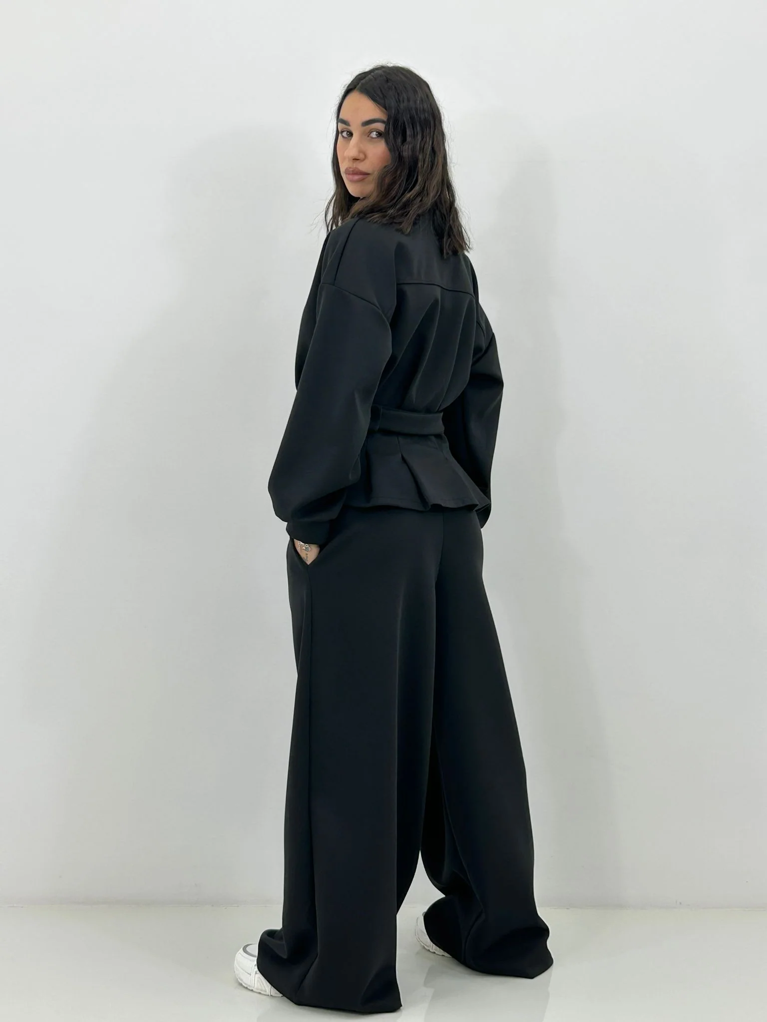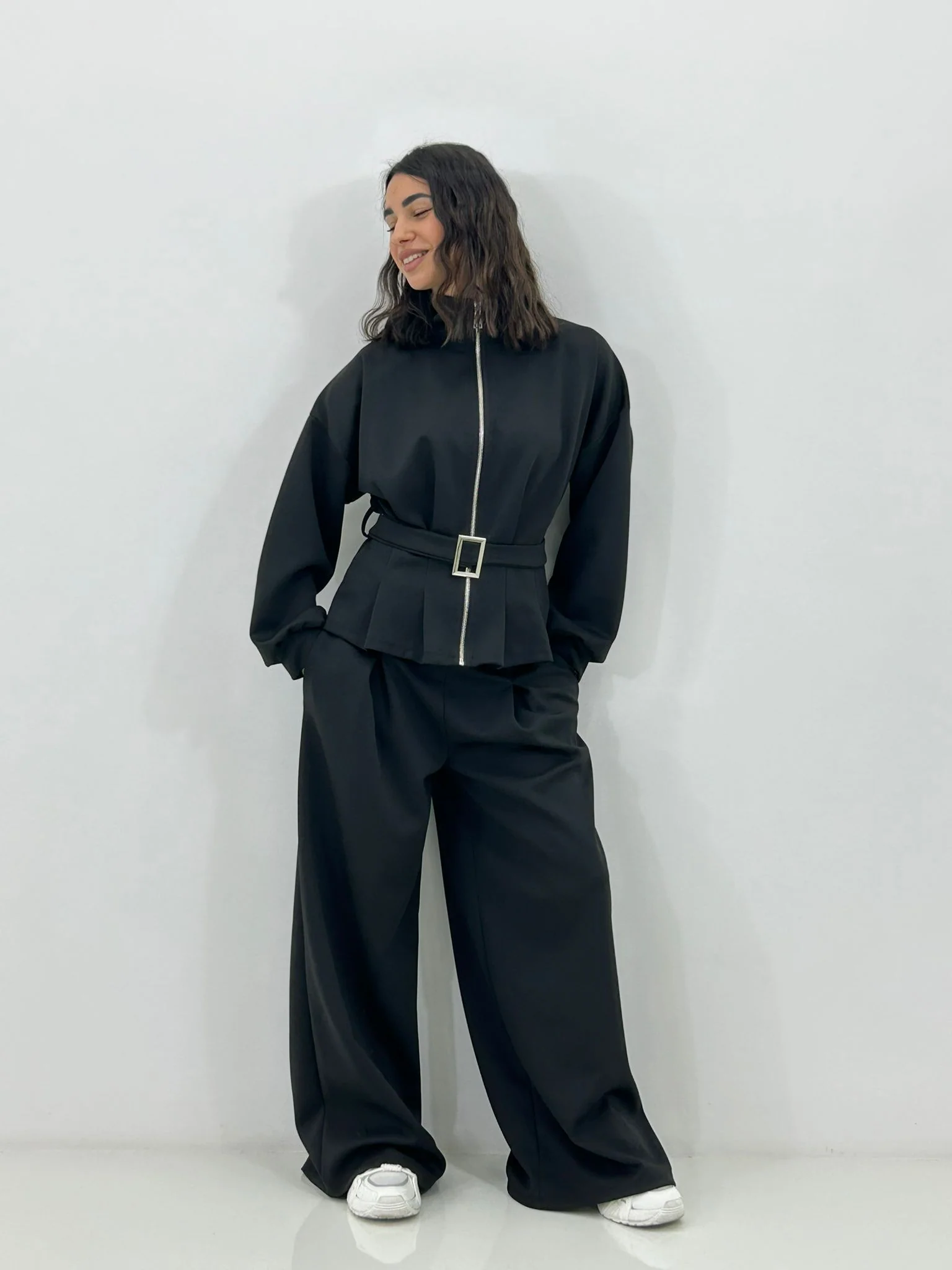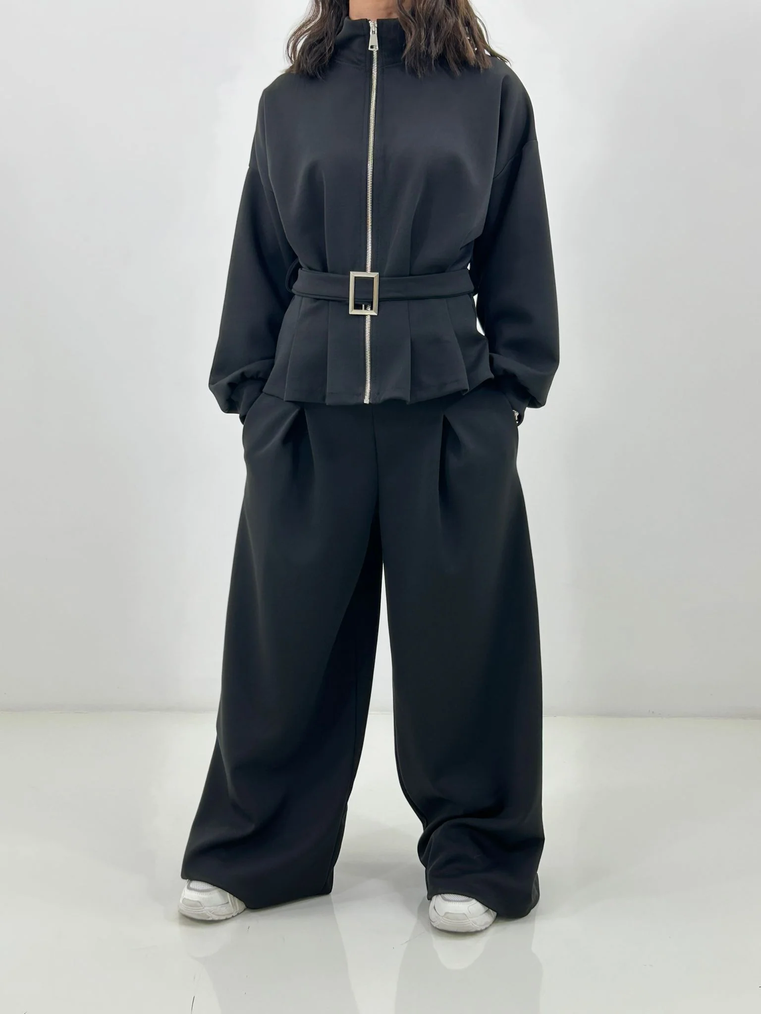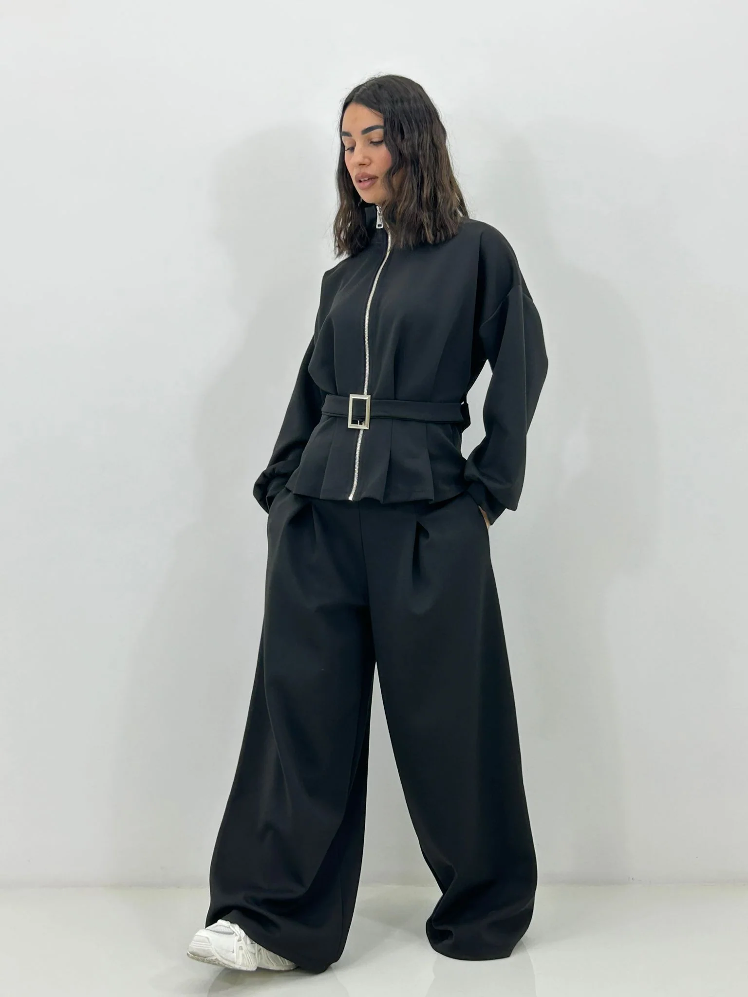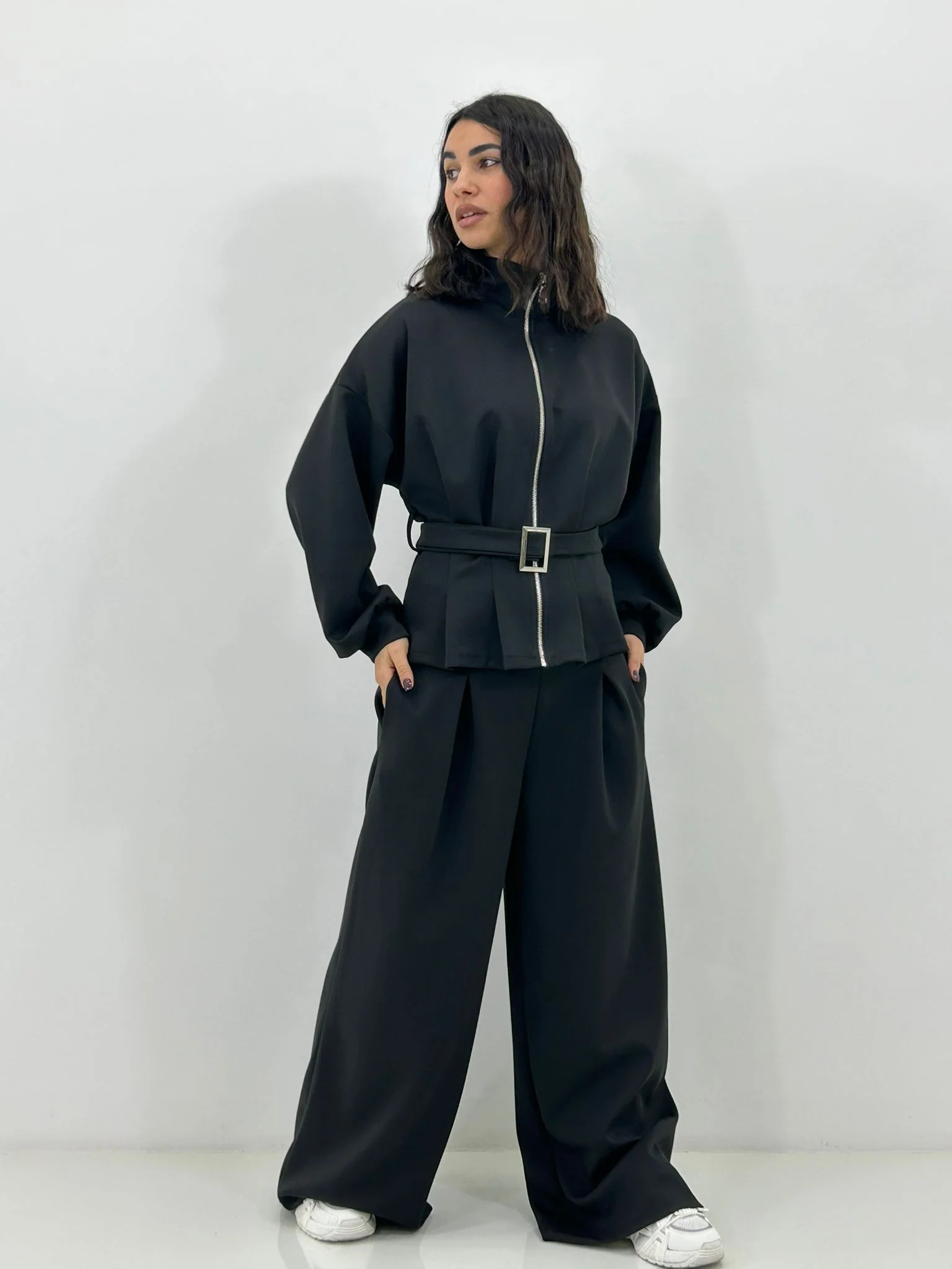 Coordinato tuta ,felpa con zip e cintura ,pantalone con pinces e tasche