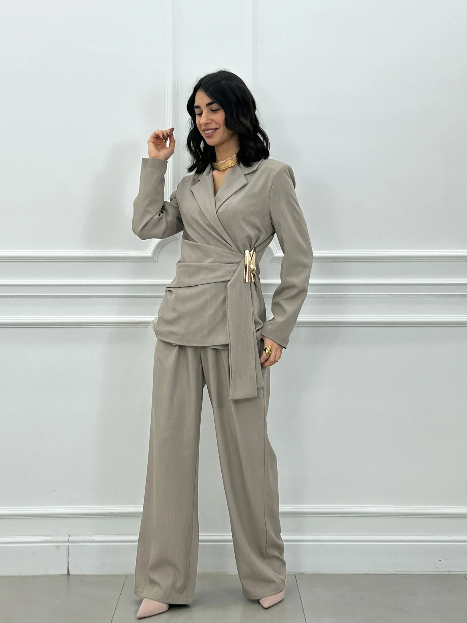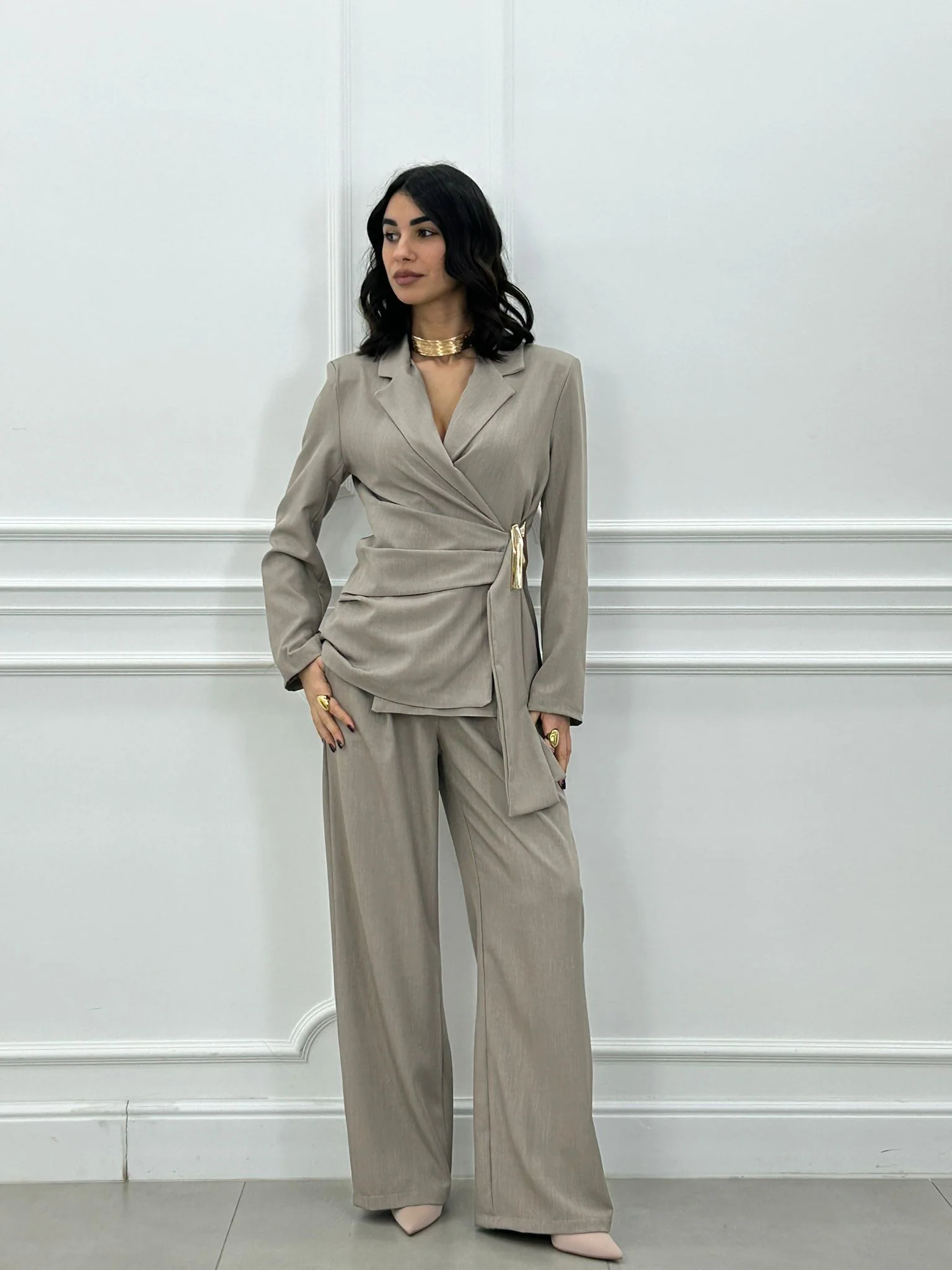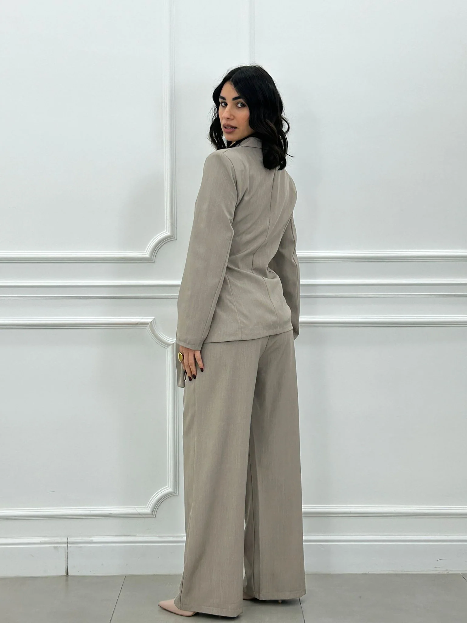 Coordinato giacca con dettaglio oro interno foderata,pantalone con tasche , elastico in vita