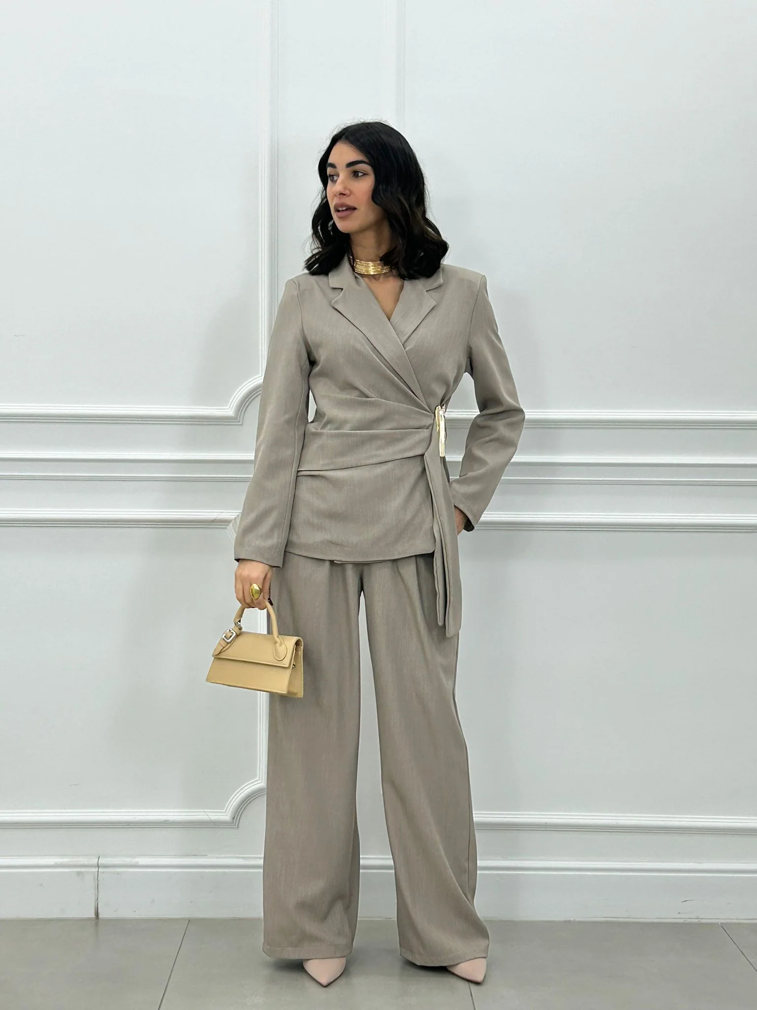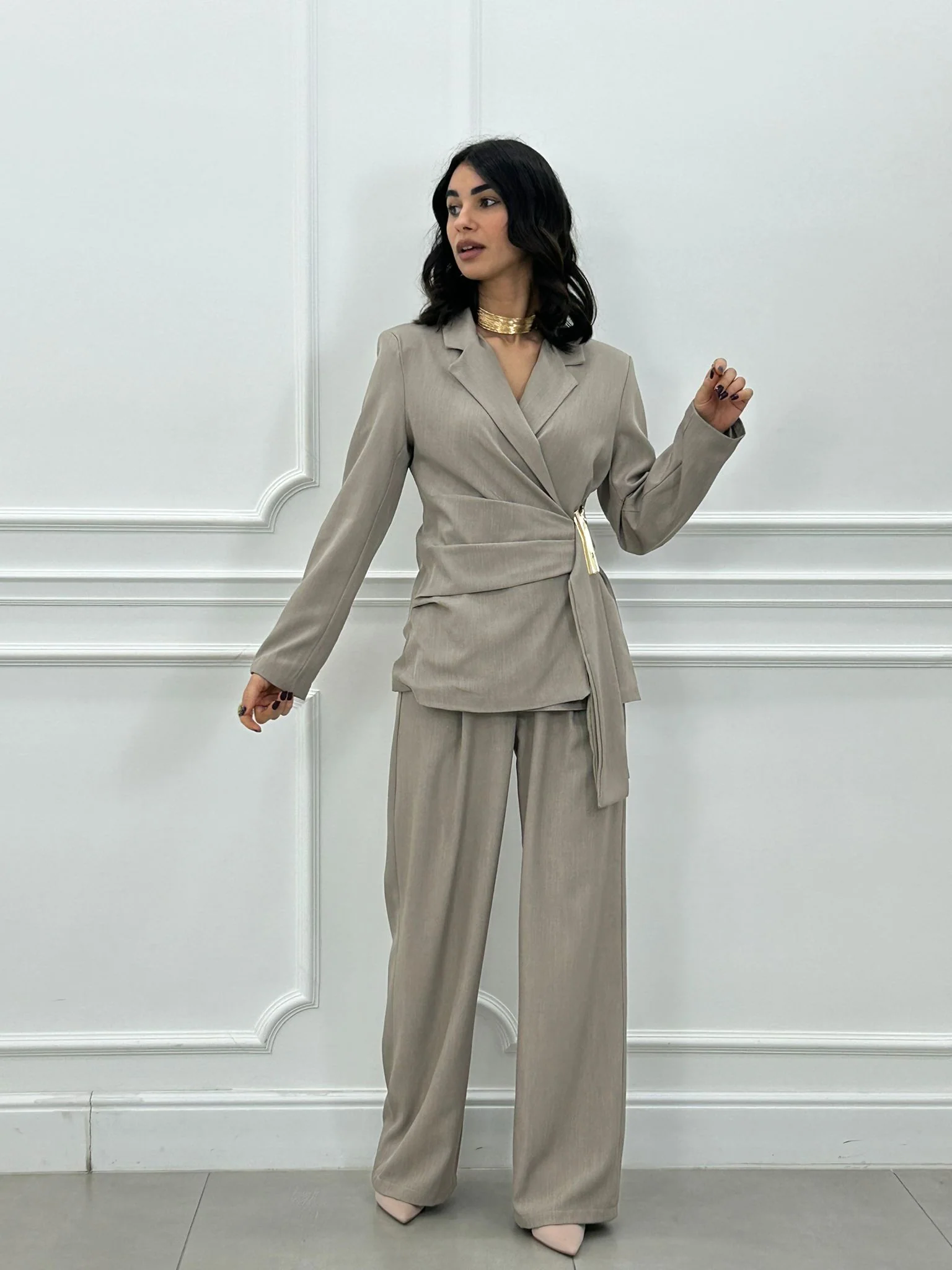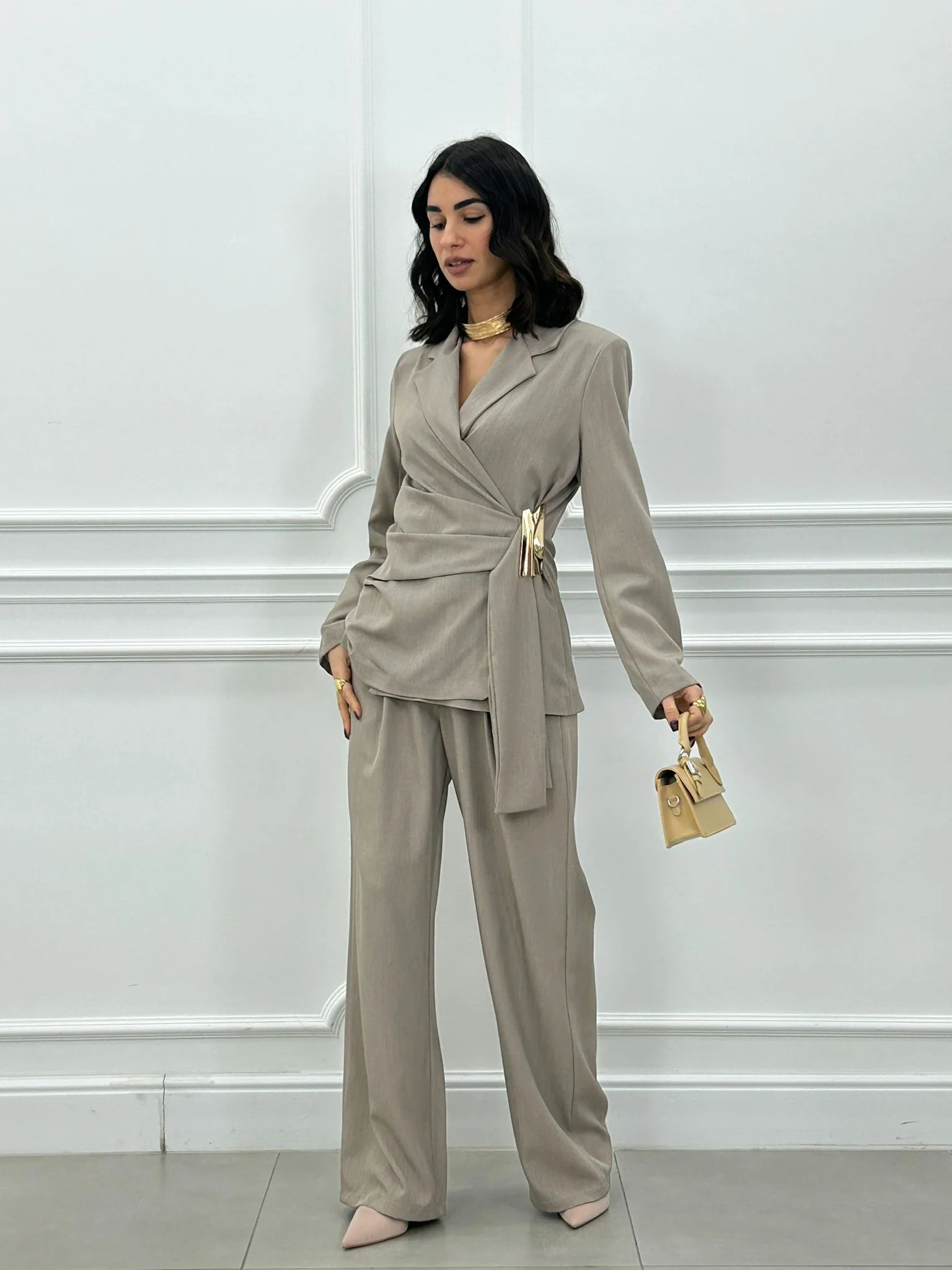 Coordinato giacca con dettaglio oro interno foderata,pantalone con tasche , elastico in vita