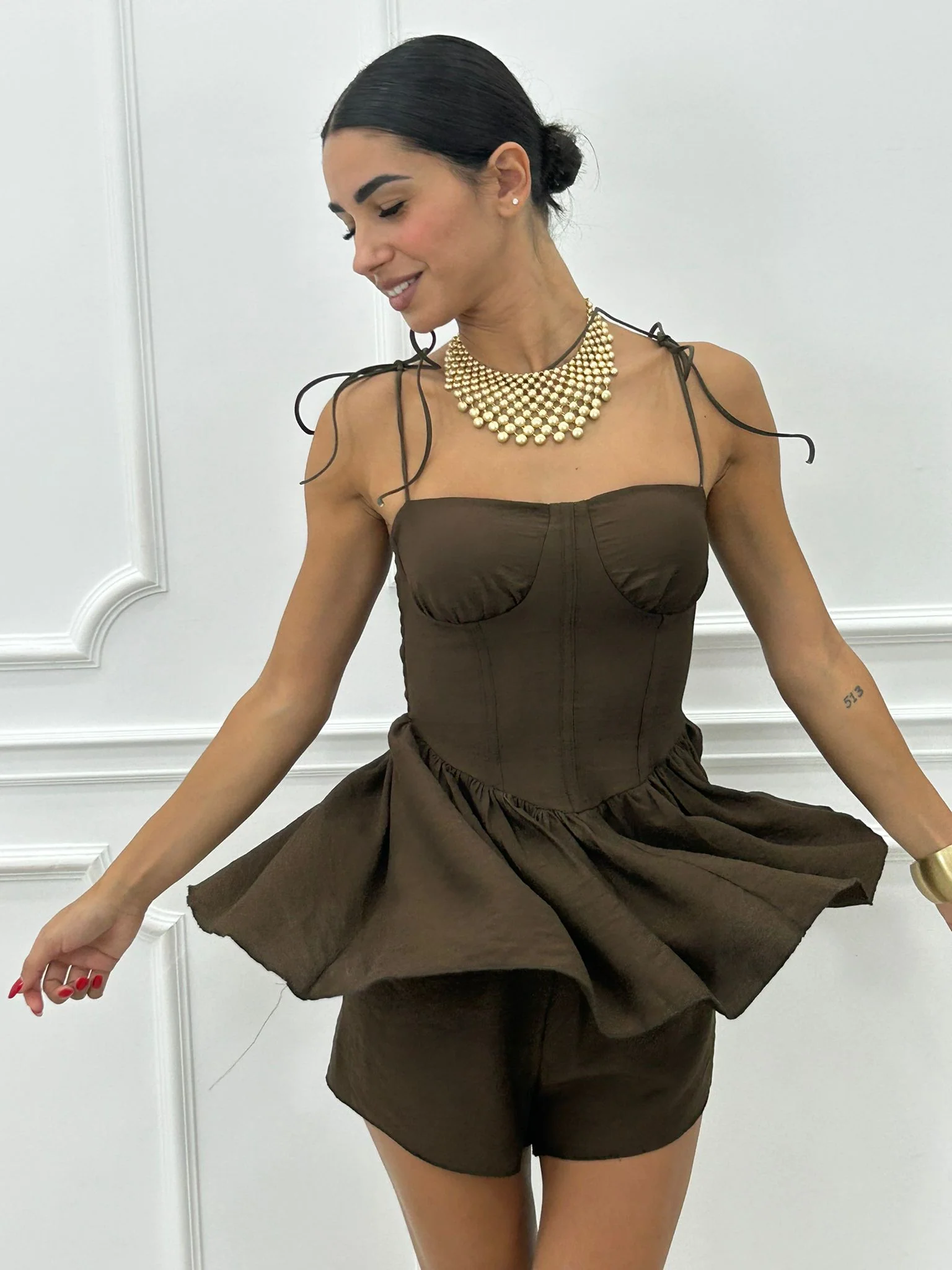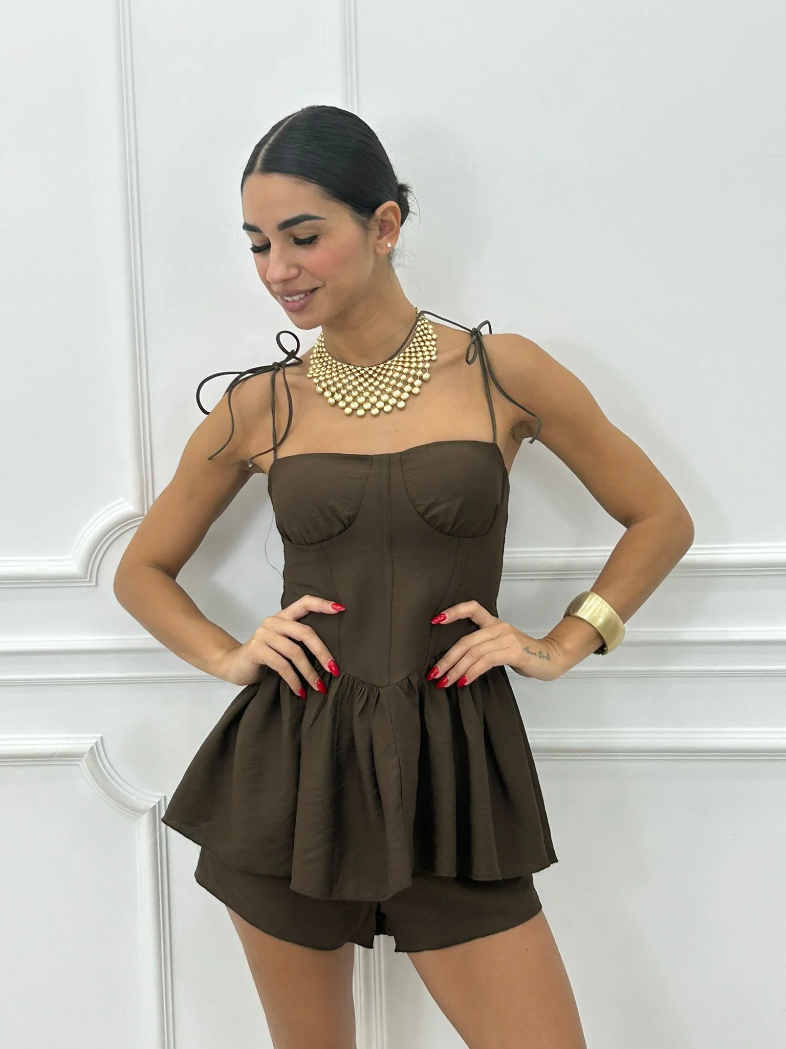 Coord-set top con balze , coppe al seno e spalline regolabili , e shorts con elastico in vita