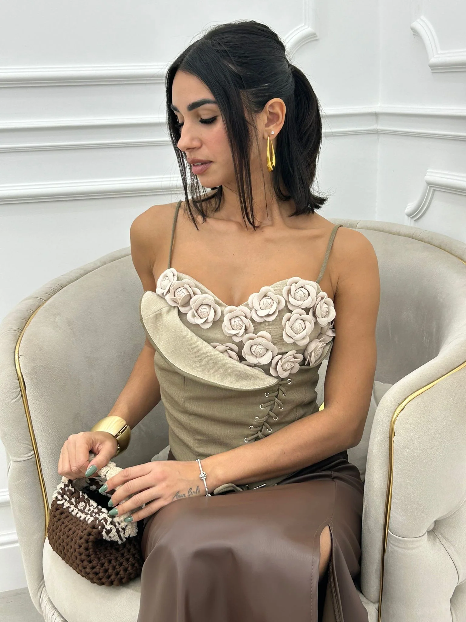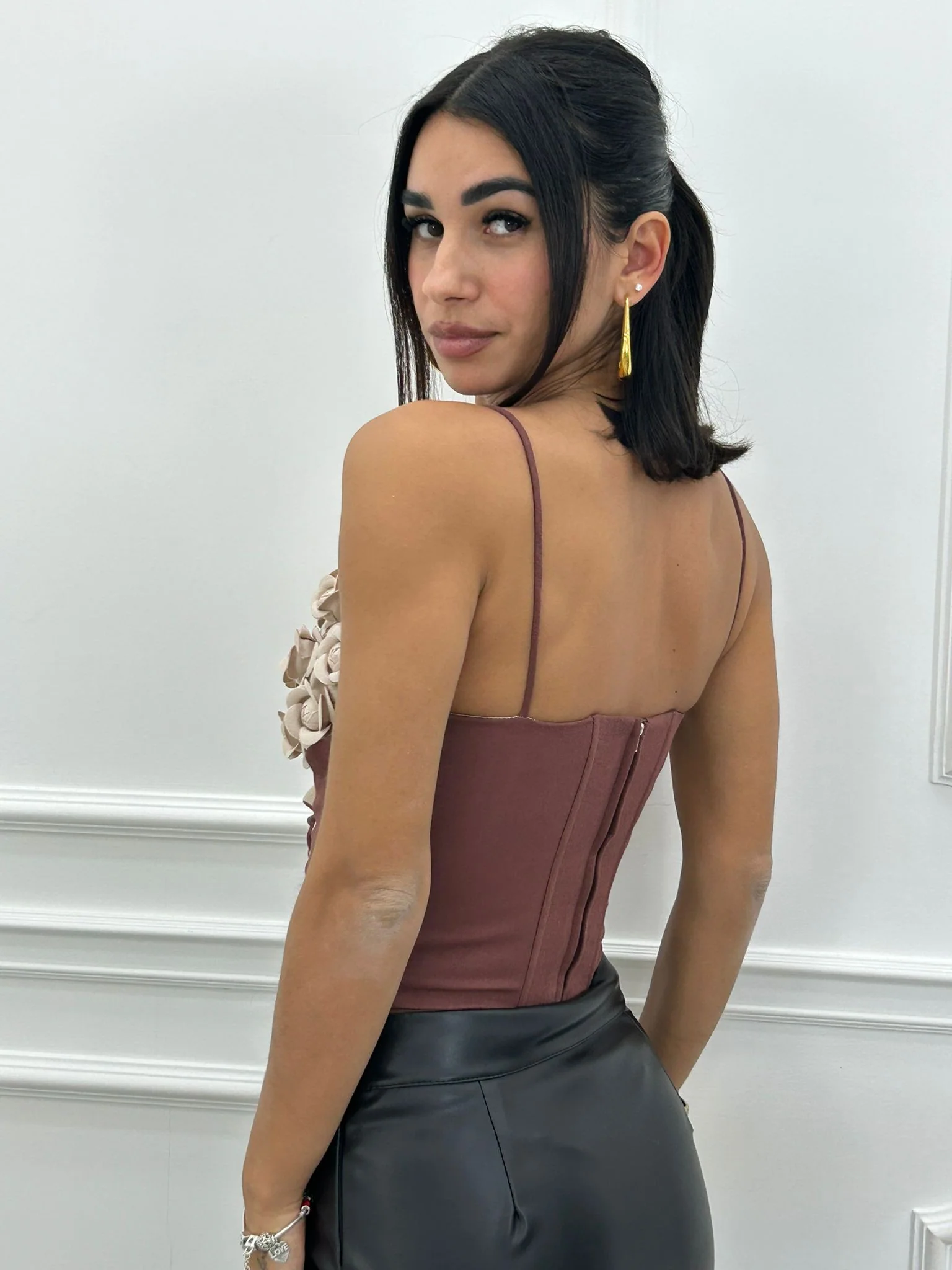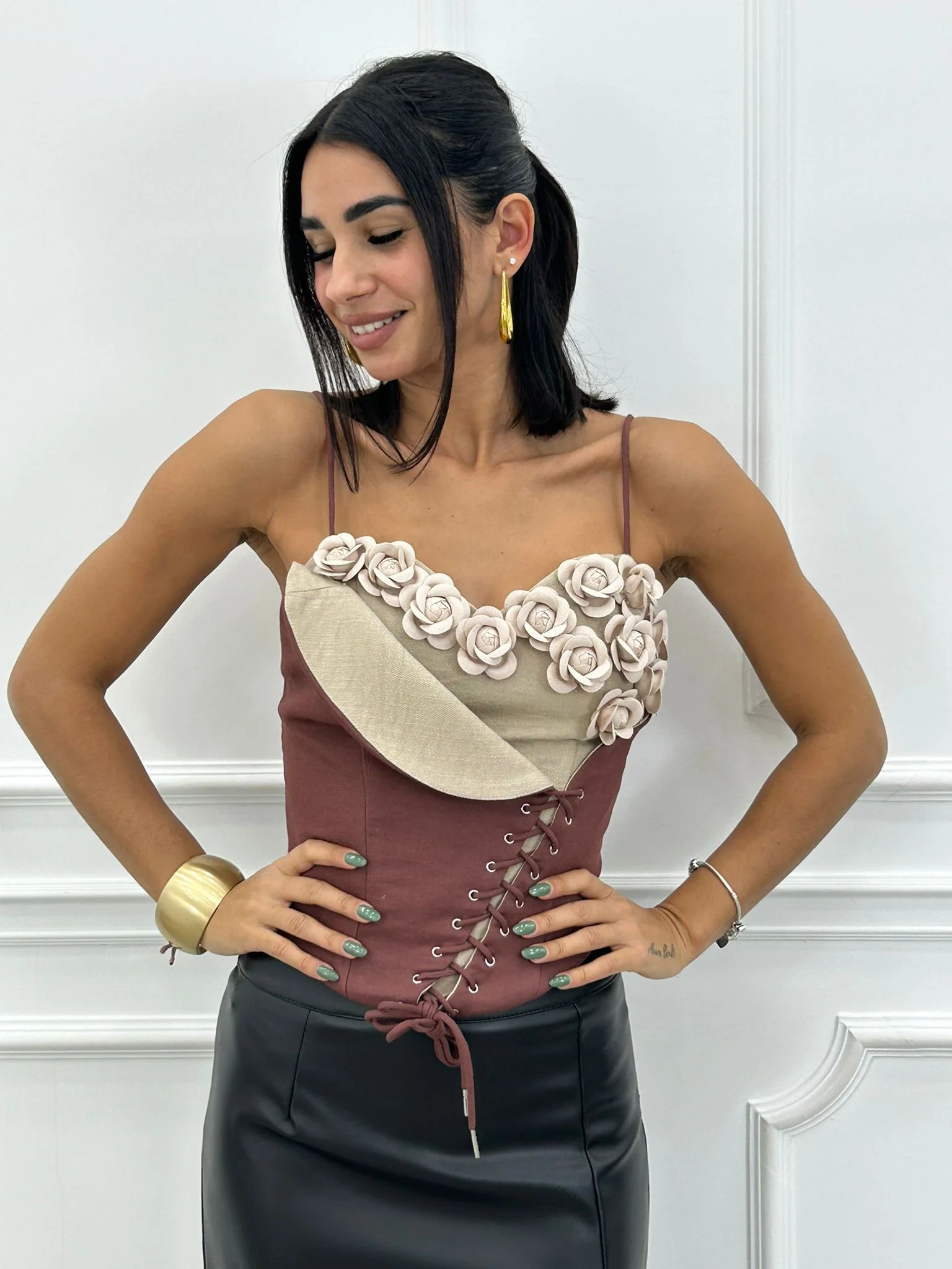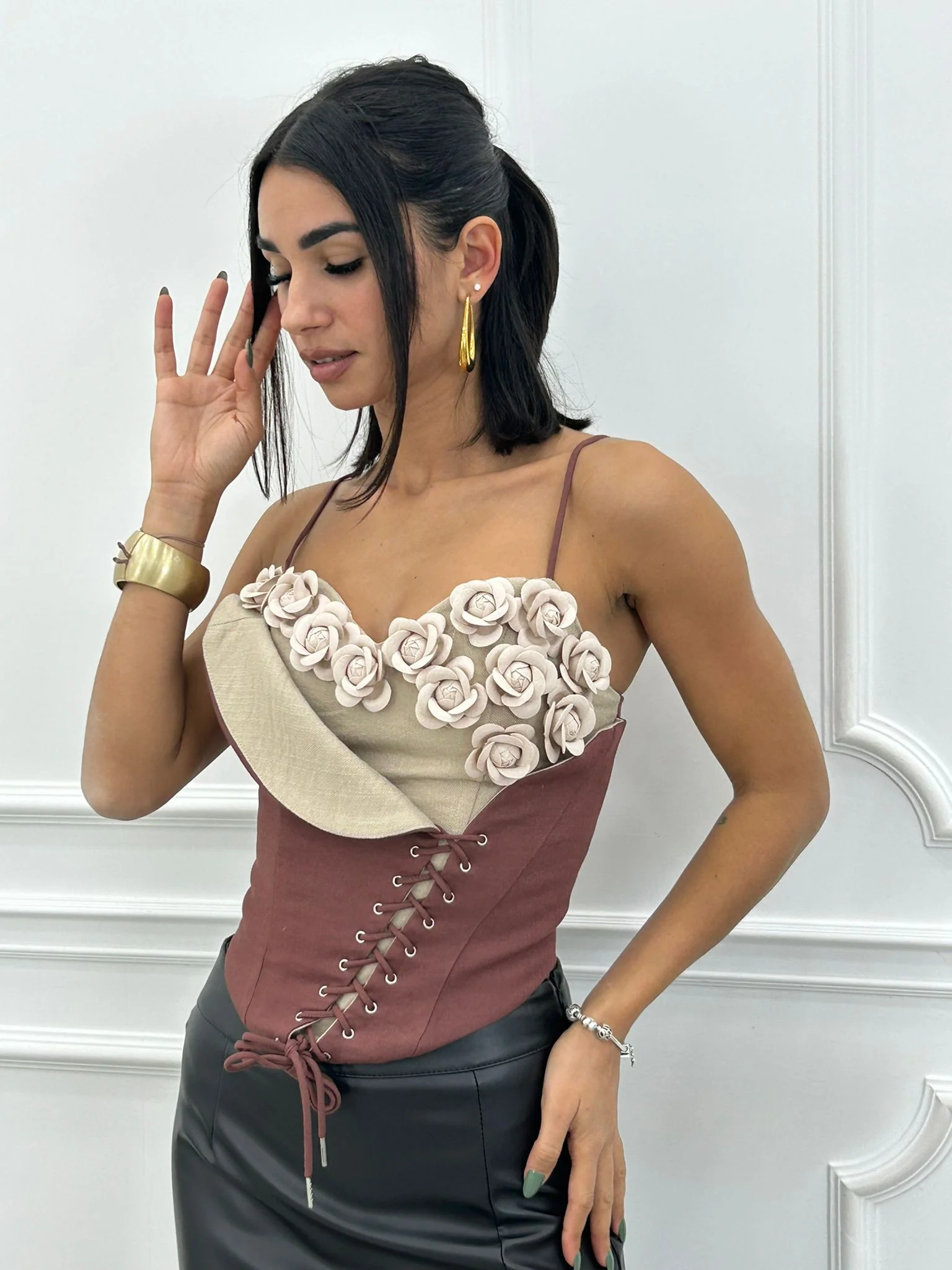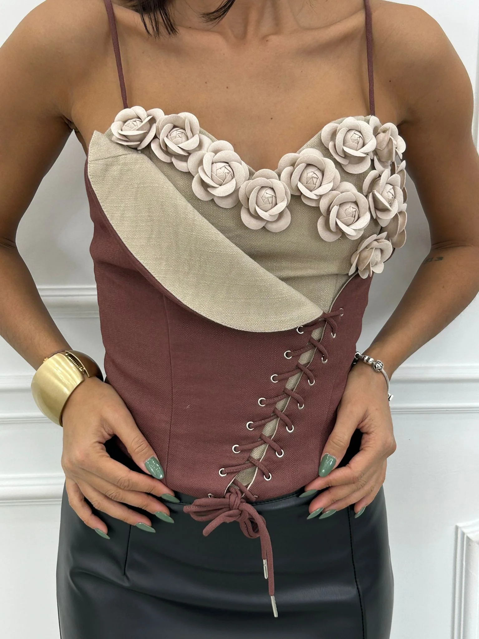 Corsetto con fiori e stringhe,zip posteriore