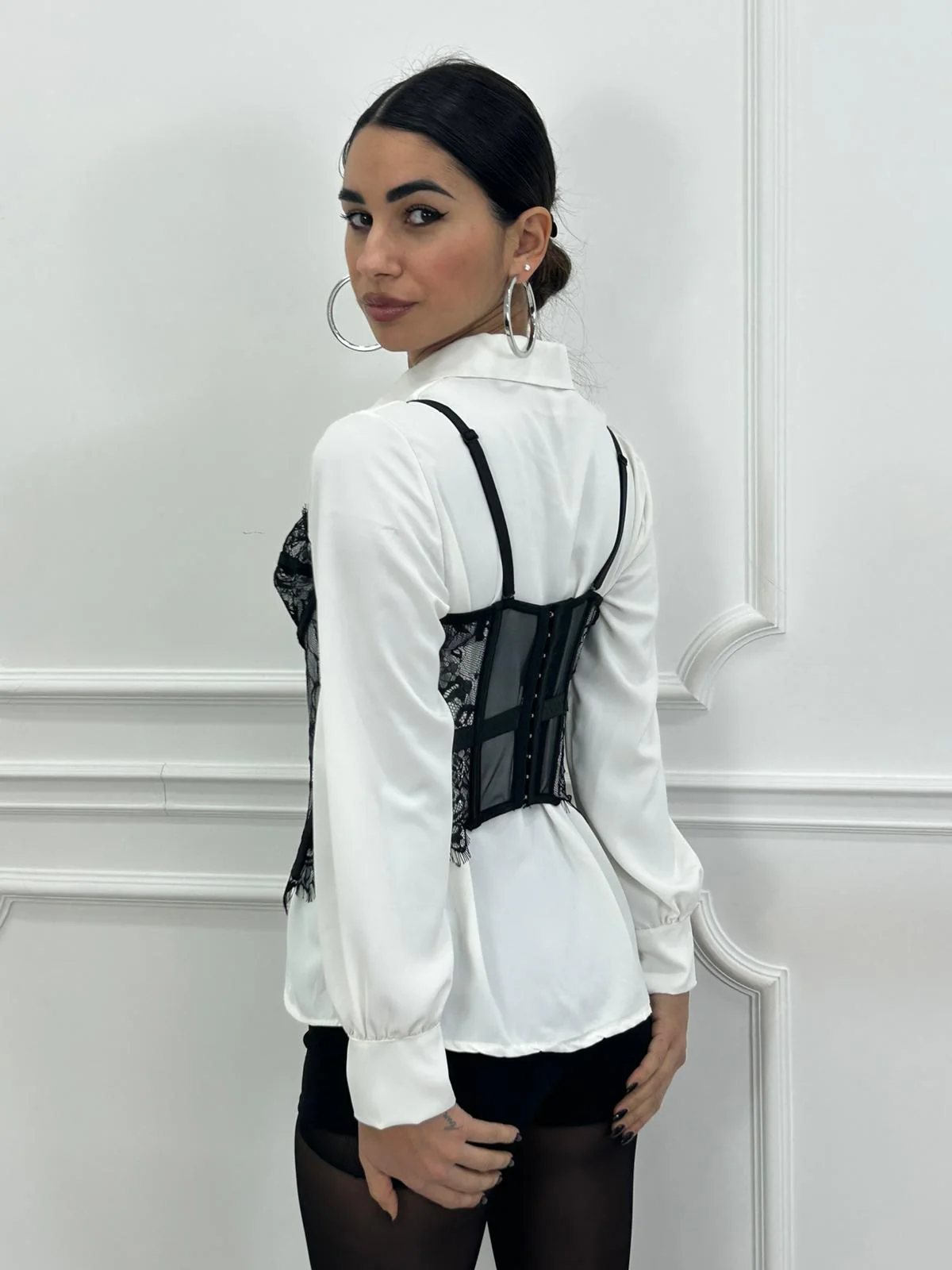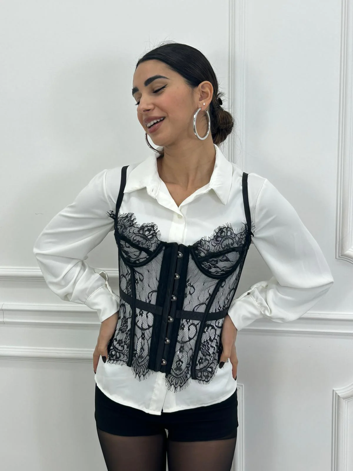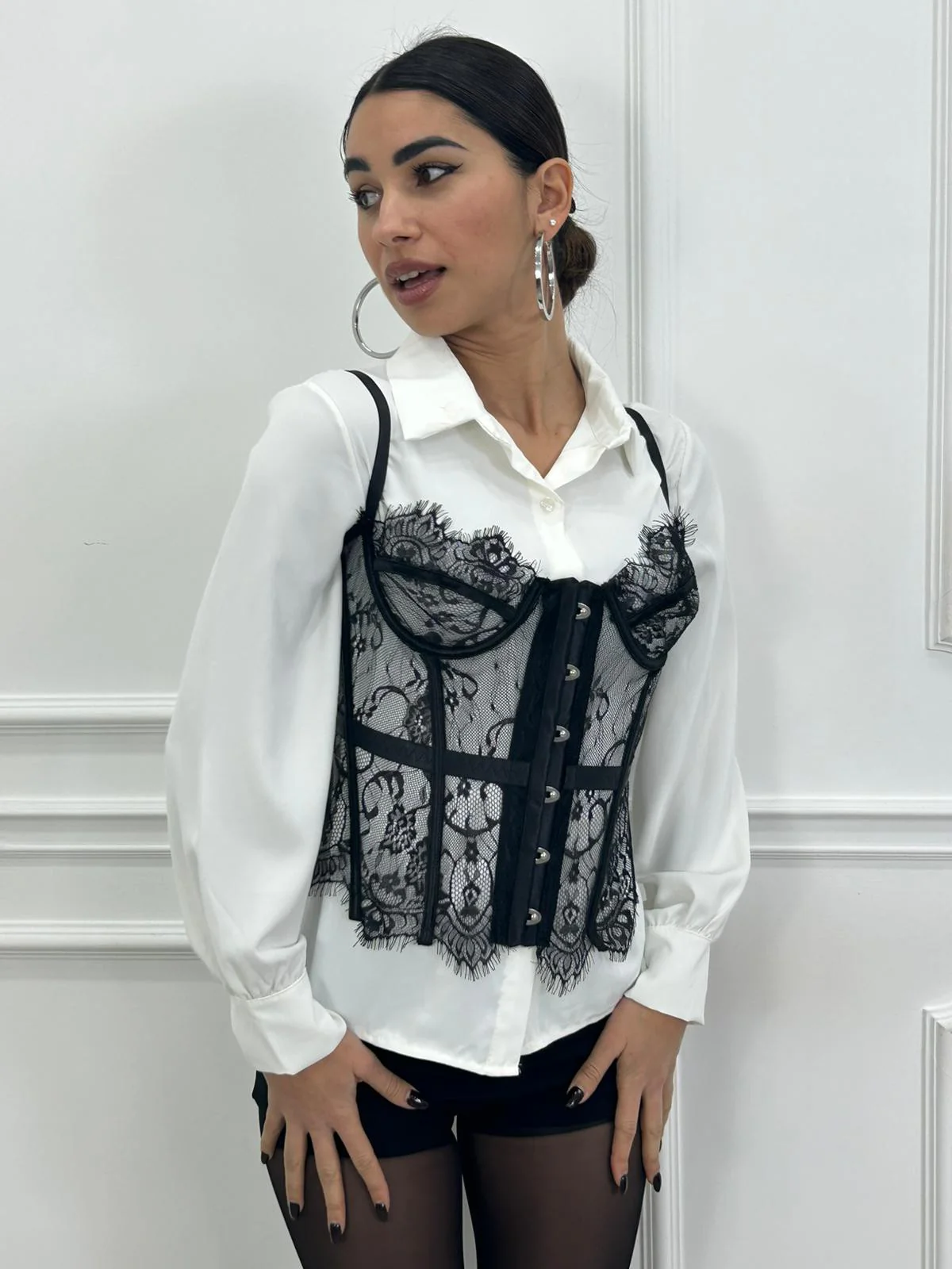 Corsetto in pizzo con trasparenza