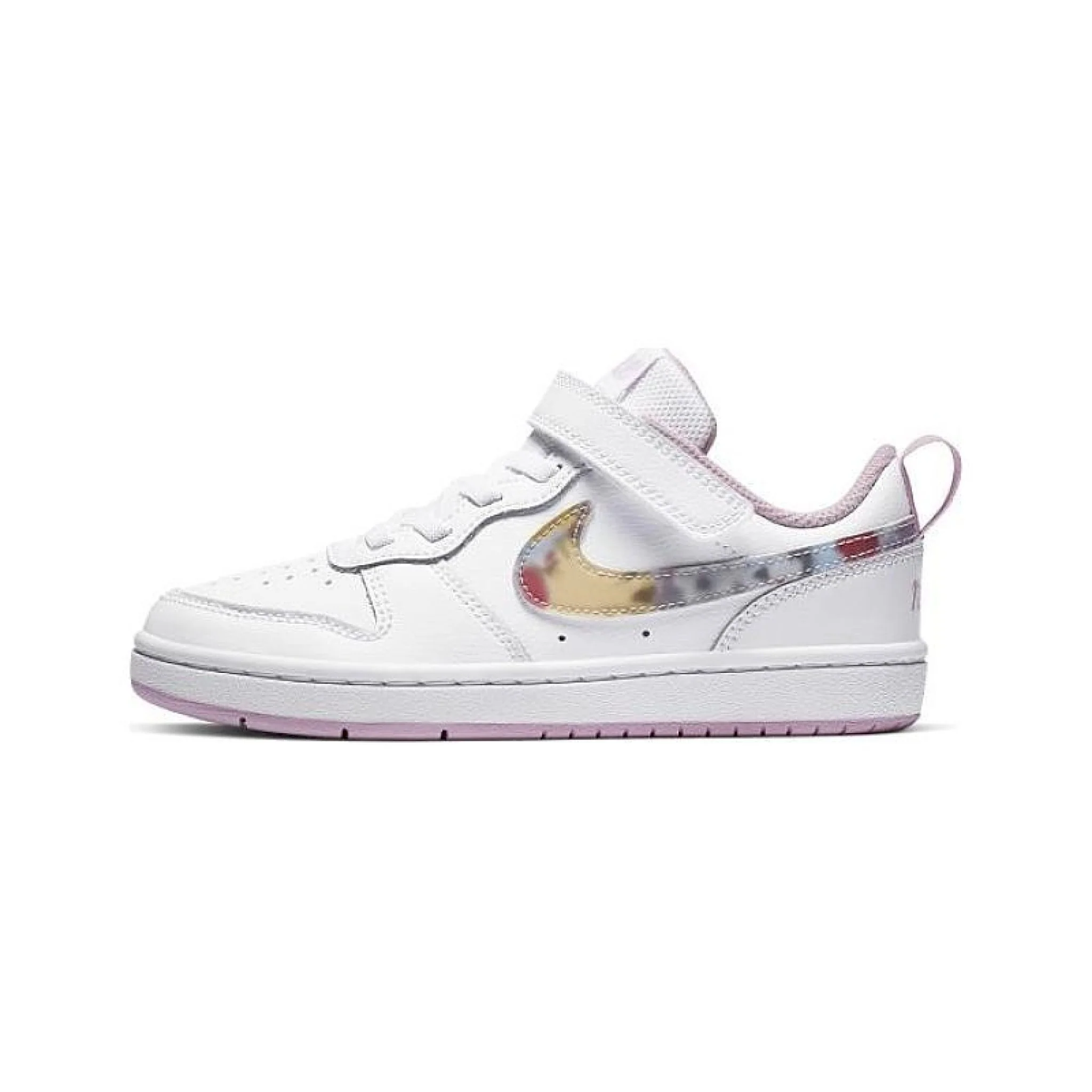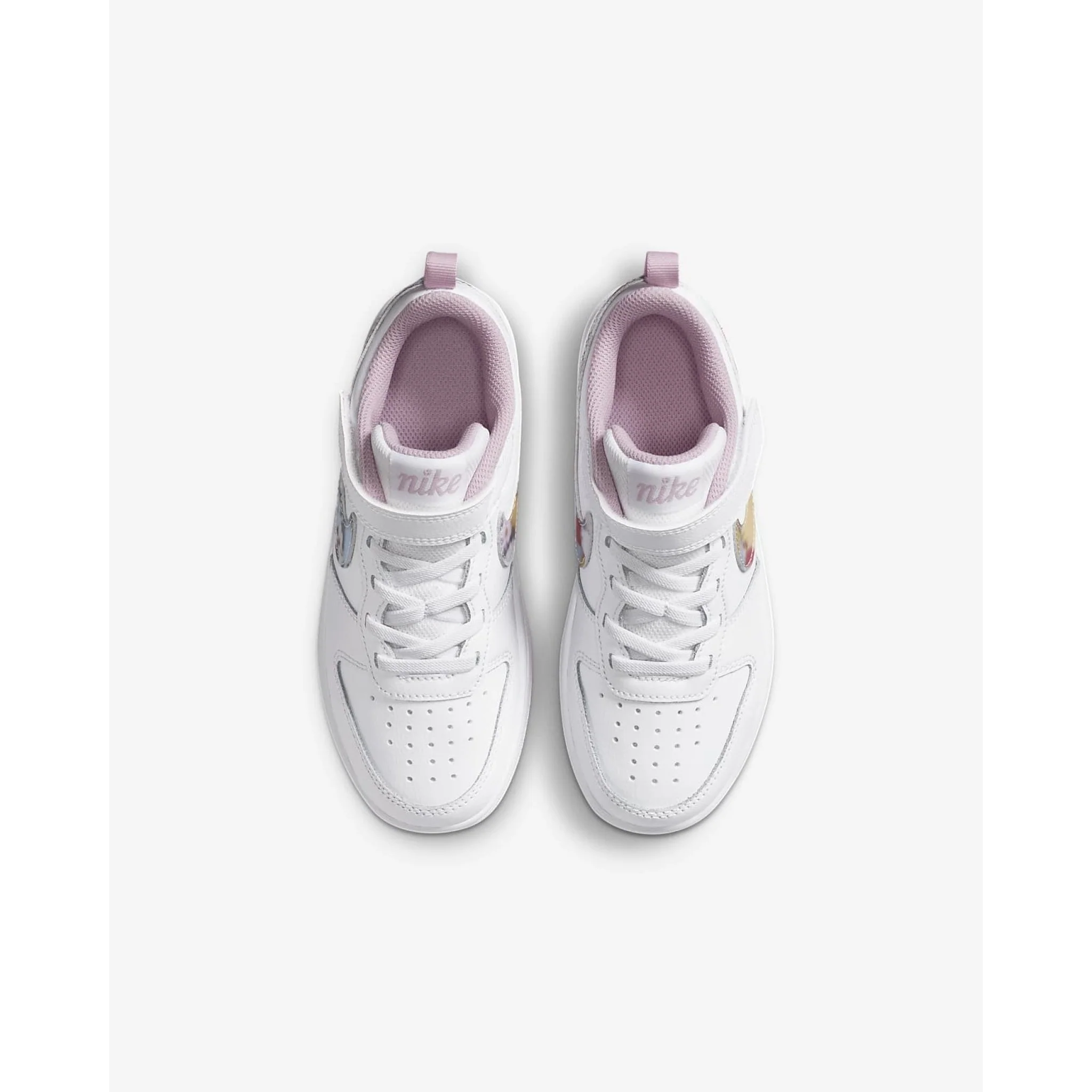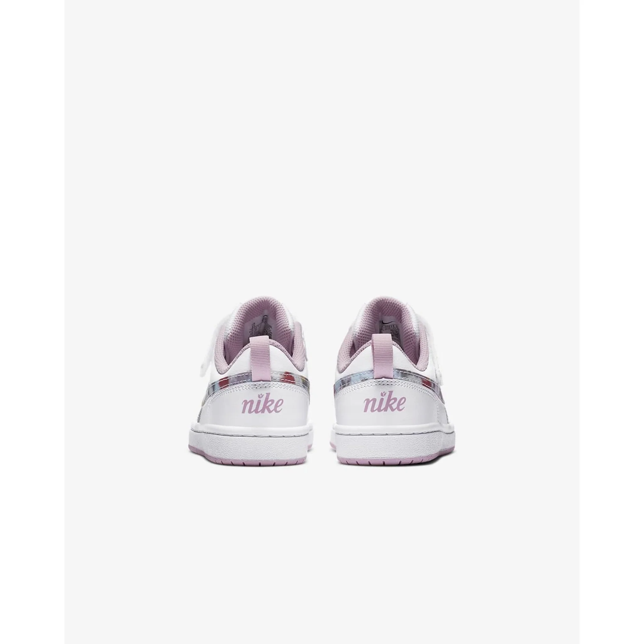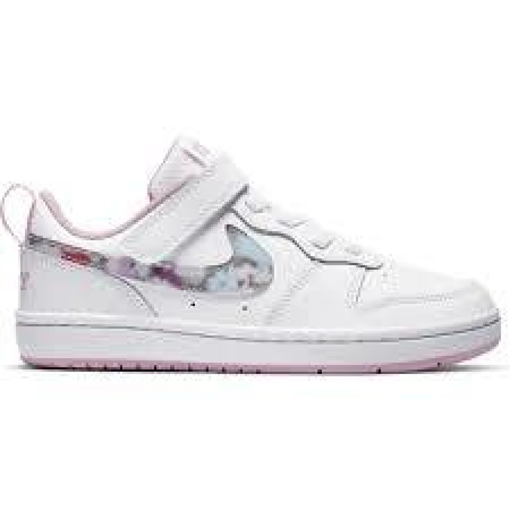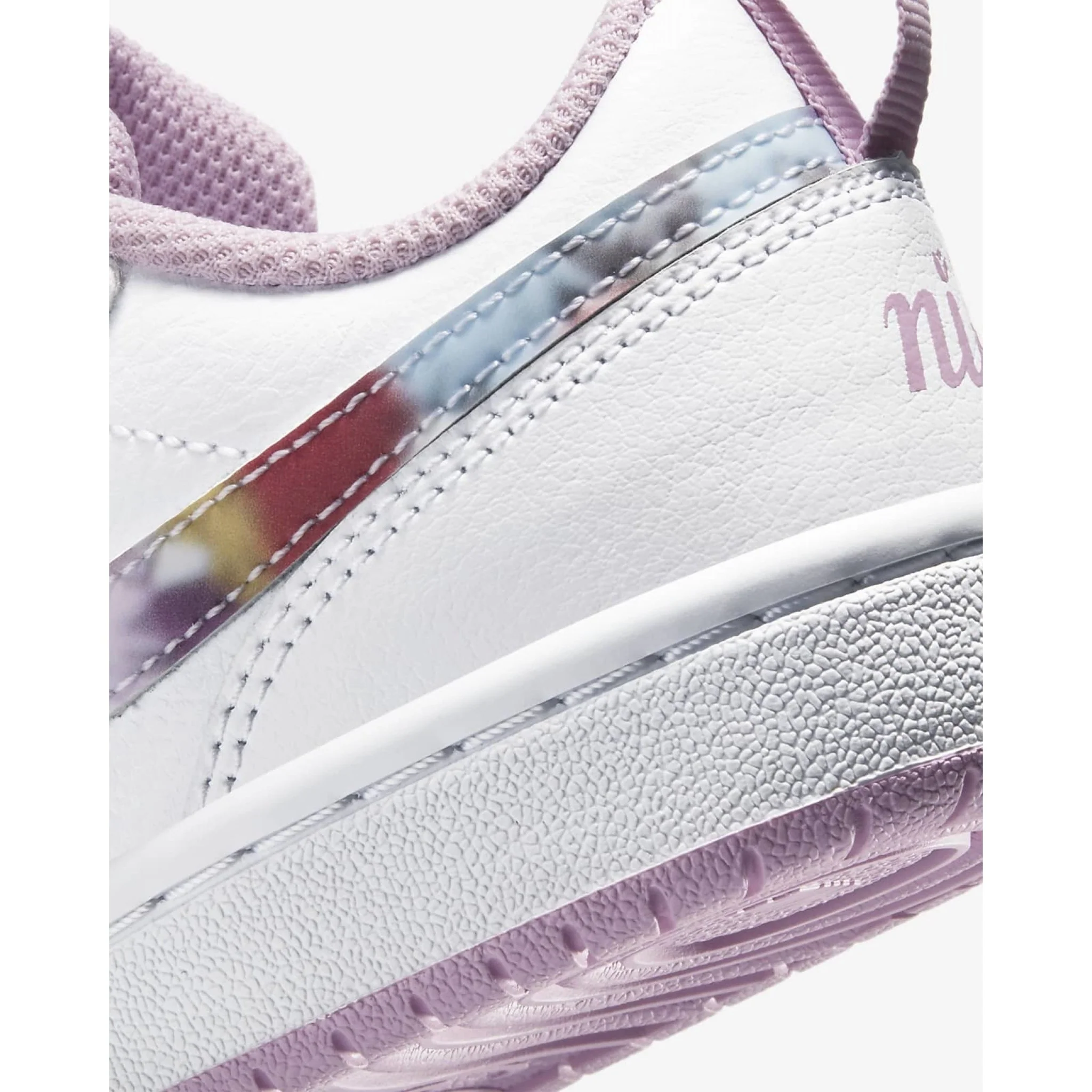 La scarpa nike court borough low 2 è un trionfo di flower power. un colorato swoosh floreale sullo stile del basket rétro è perfetto per le piccole star del futuro.