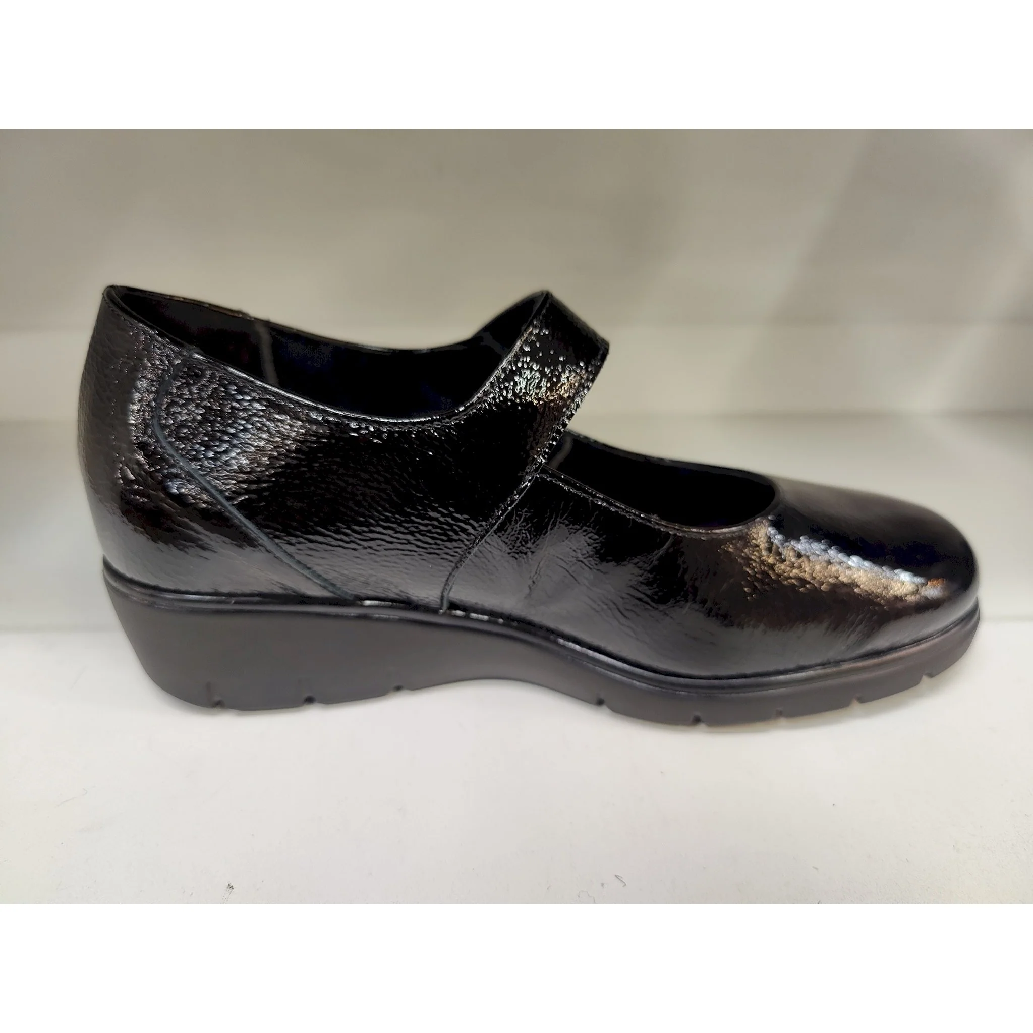 scarpa comoda donna,predisposta per plantari,pianta larga,fondo antiscivolo,adatta a piedi sensibili,cinturino stretch