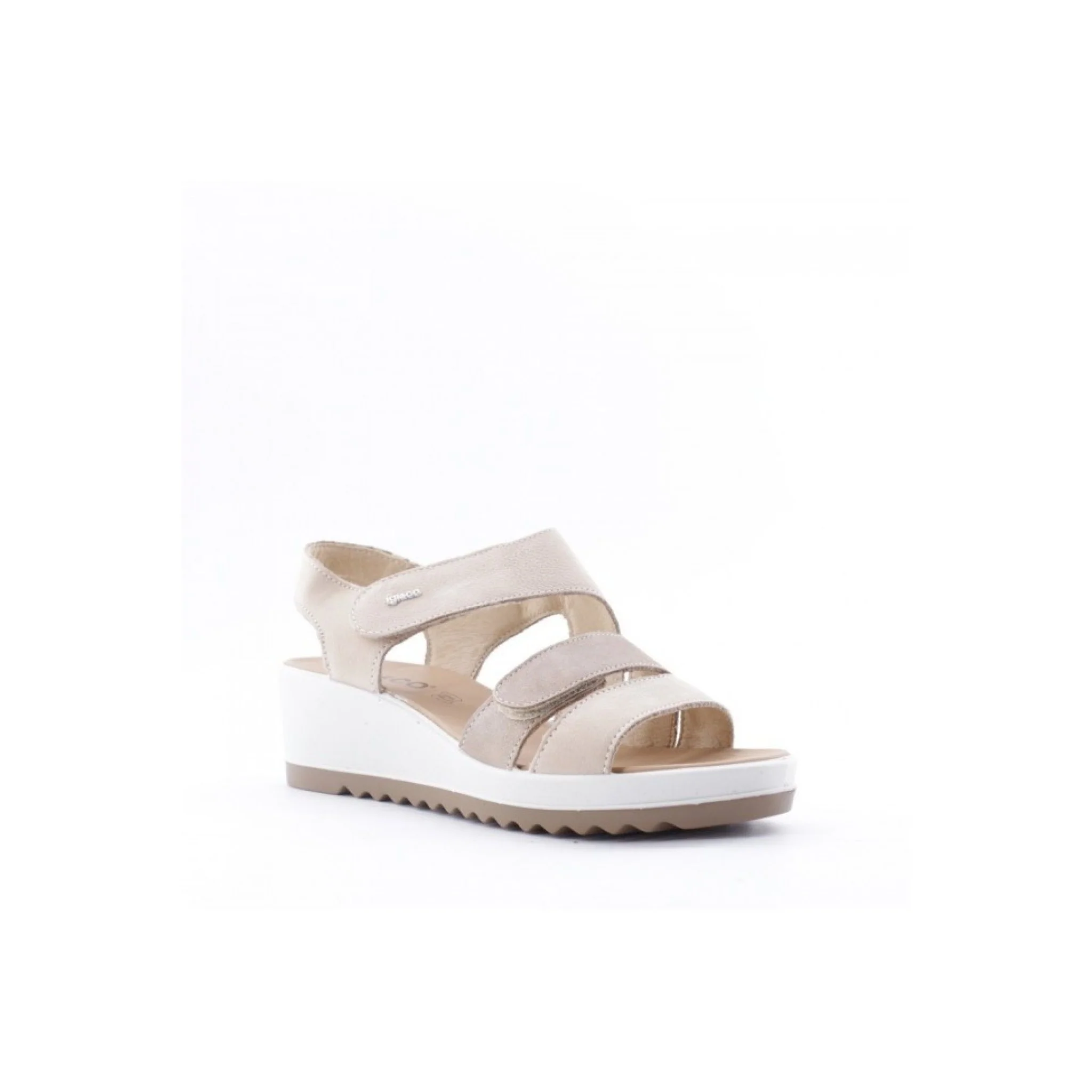 Sandalo dalla silhouette evergreen in morbida pelle caratterizzato da dettagli effetto intreccio. calzatura che si indossa e regola velocemente grazie al doppio strap, adattandosi a qualsiasi tipologia di piede. la suola a zeppa, particolarmente leggera, dona slancio alla gamba e garantisce comfort per tutto il giorno.