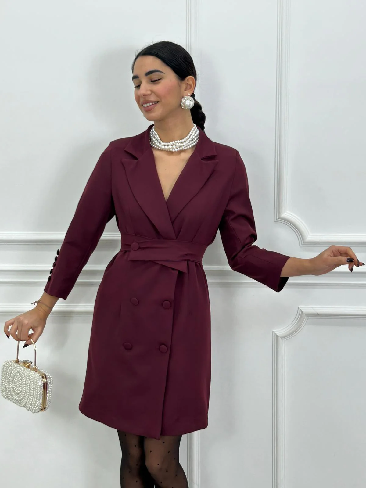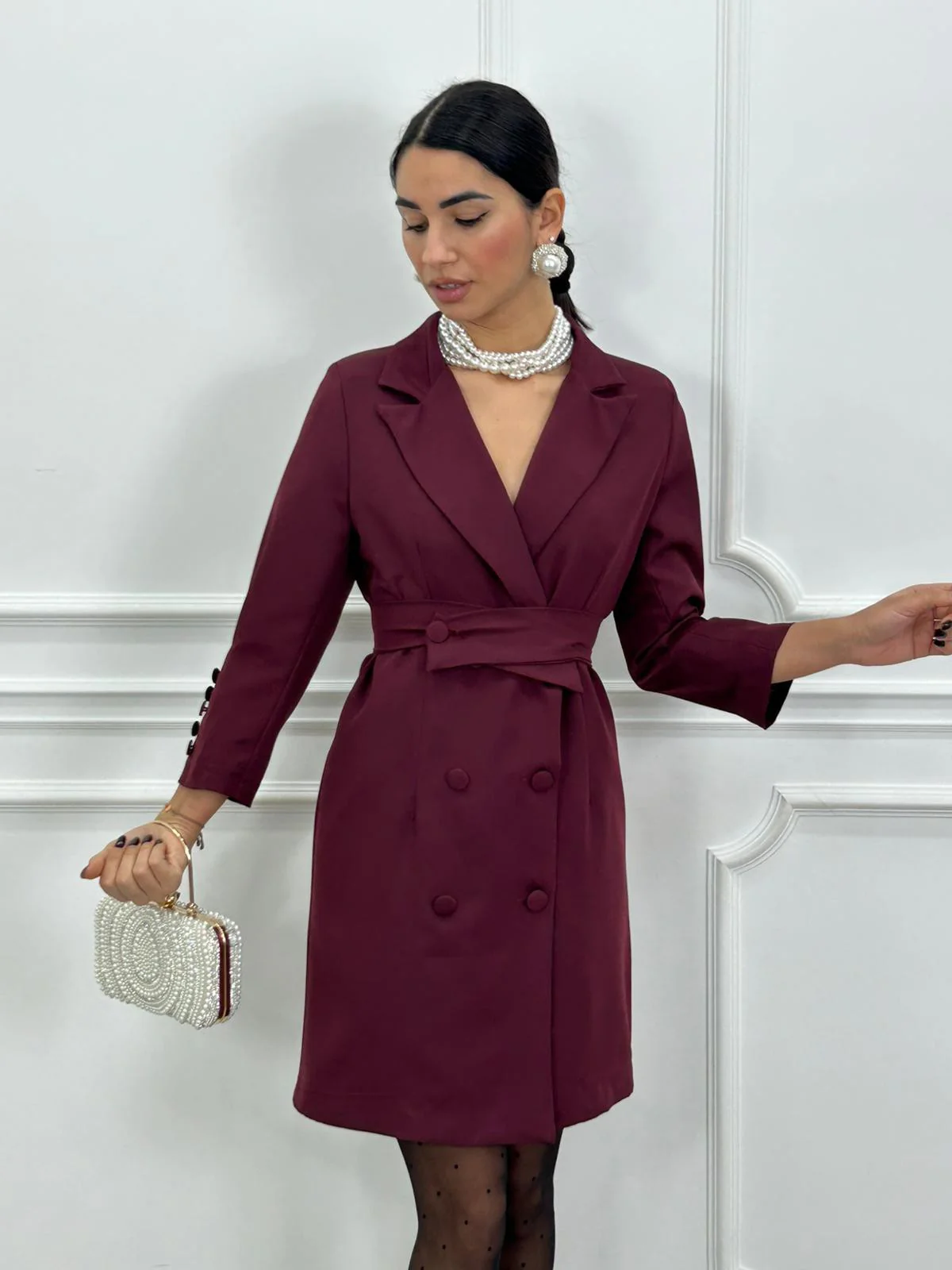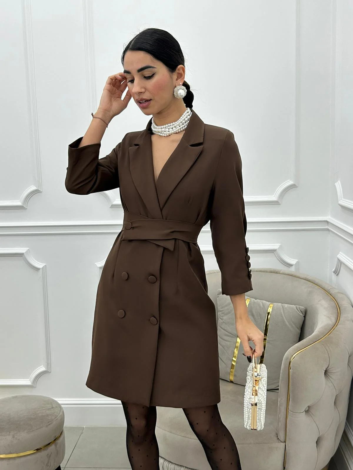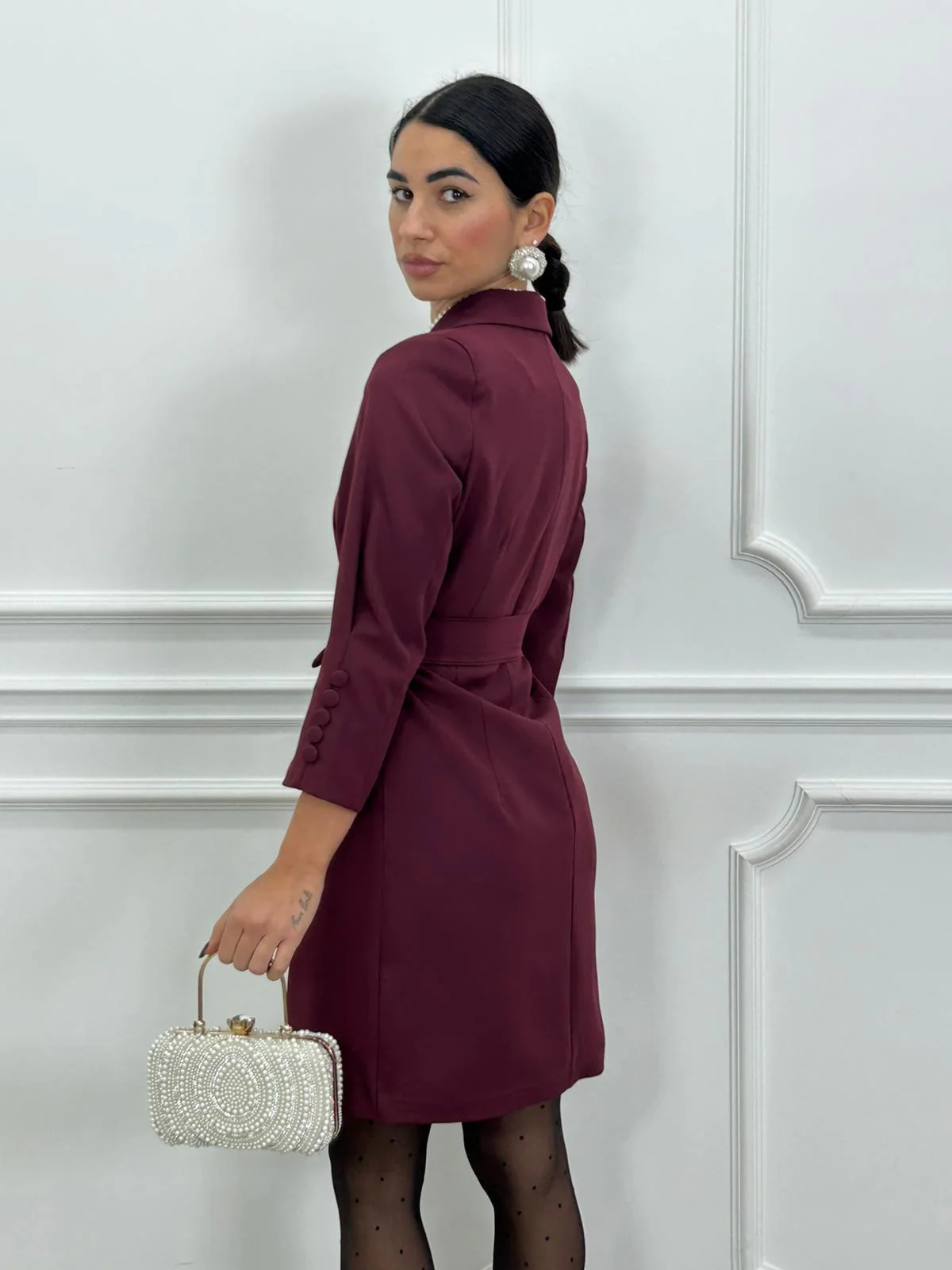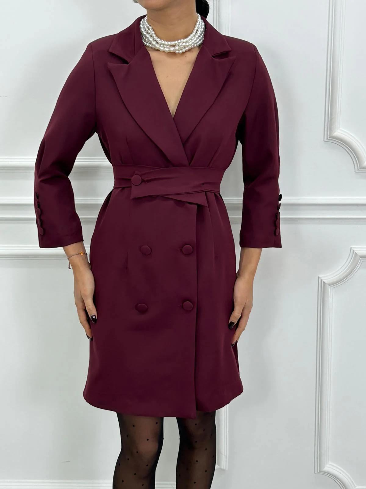 Dress giacca con cintura in vita e bottoni , interno foderato