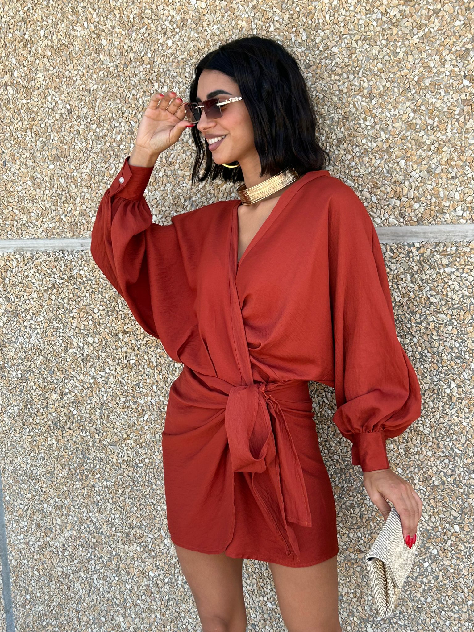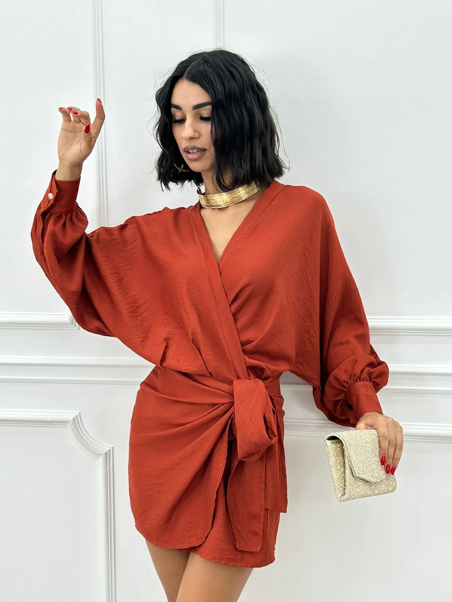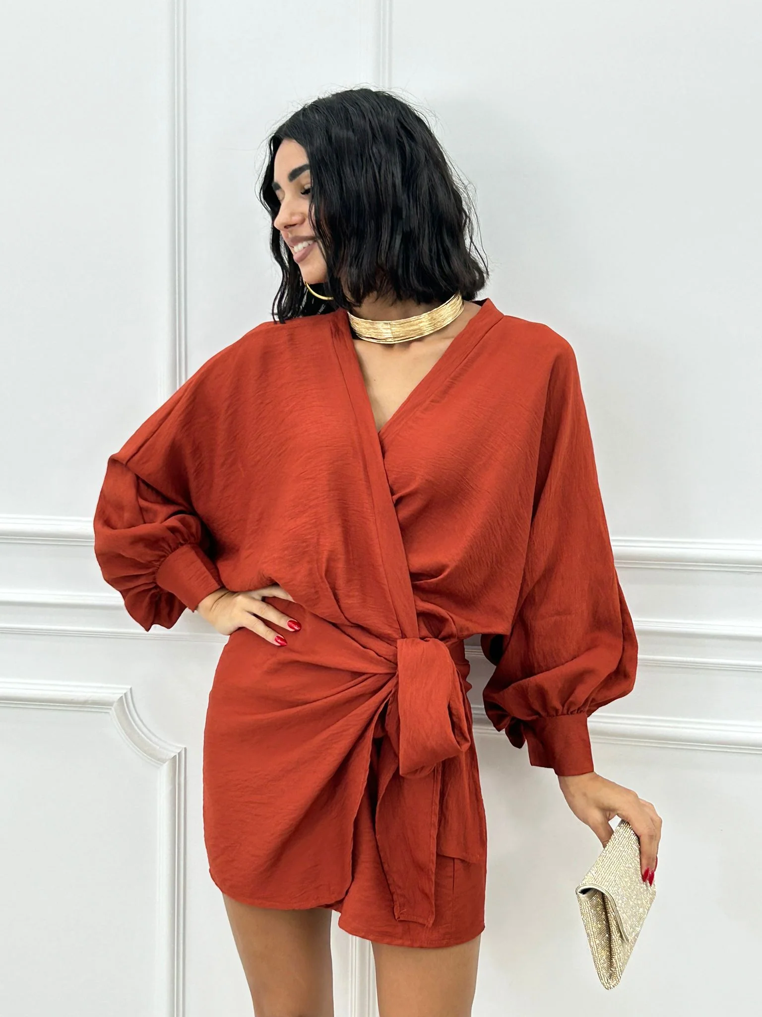 Vestito incrocio con chiusura fiocco