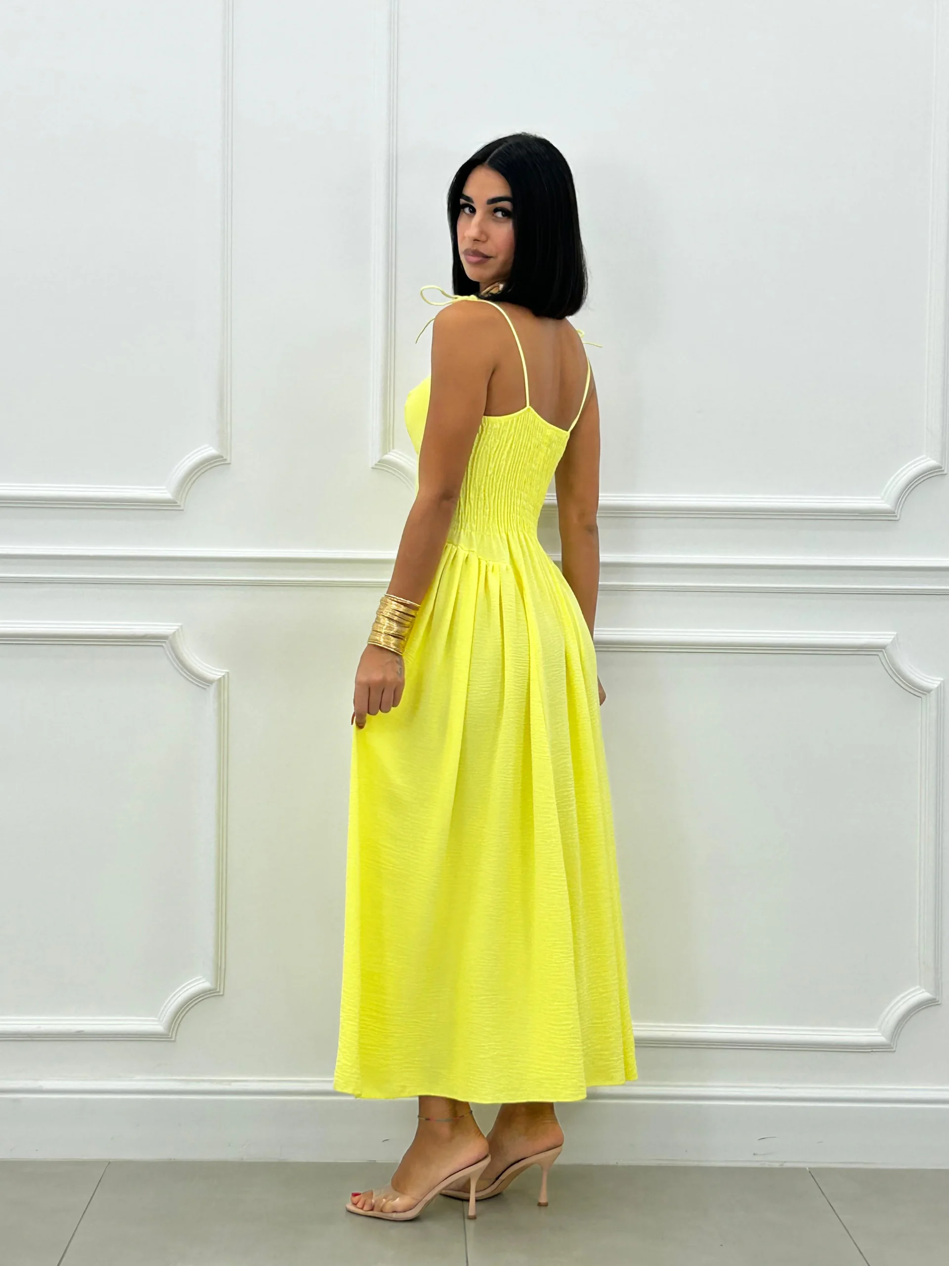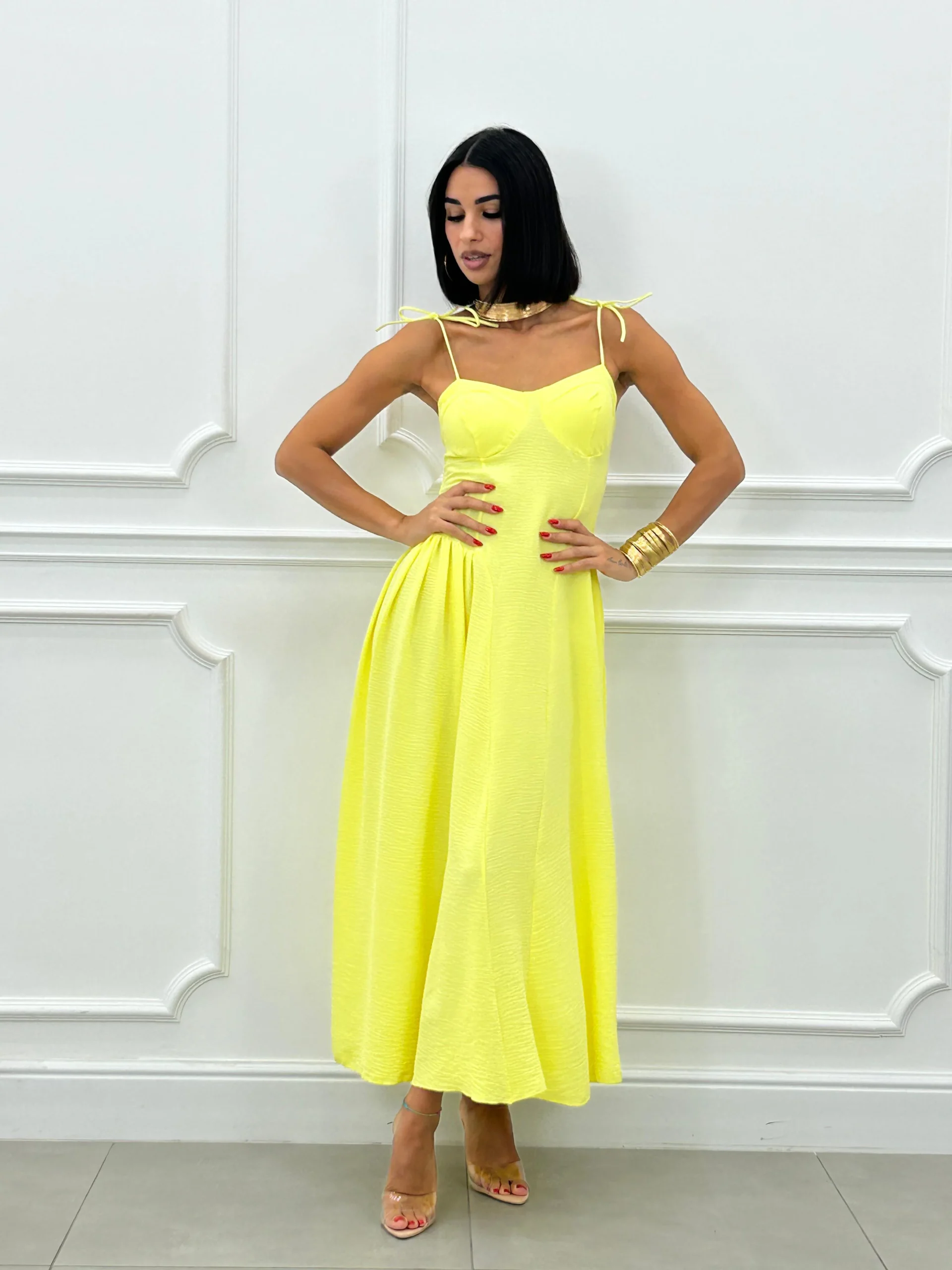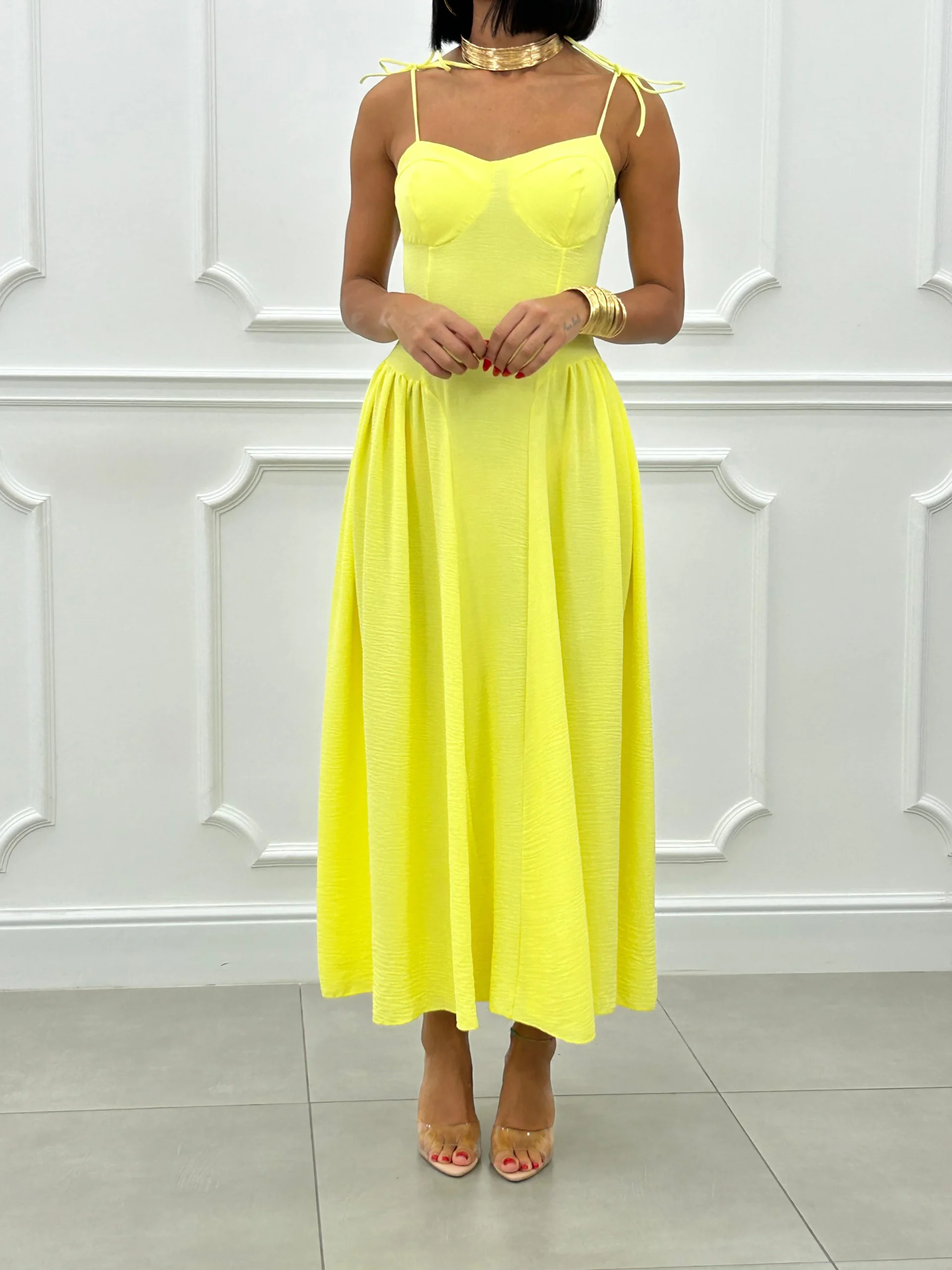 Vestito lungo con coppe al seno , bretelline regolabili , fascia elastica sul retro