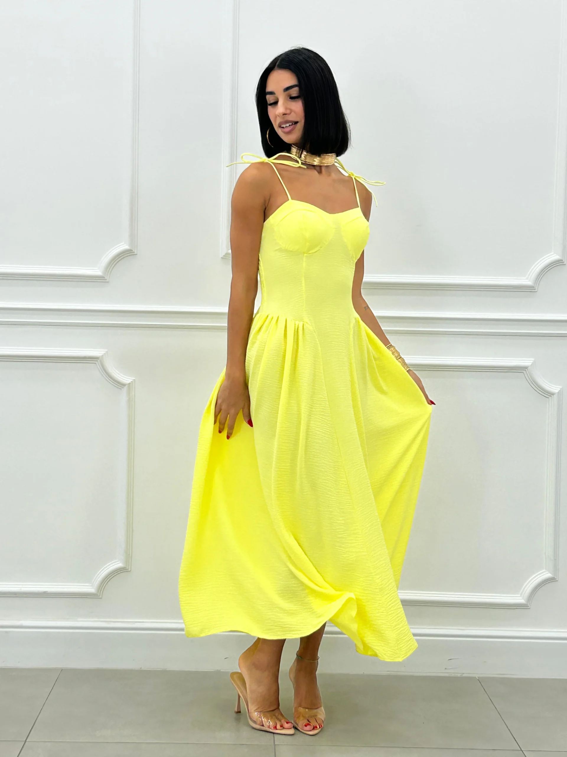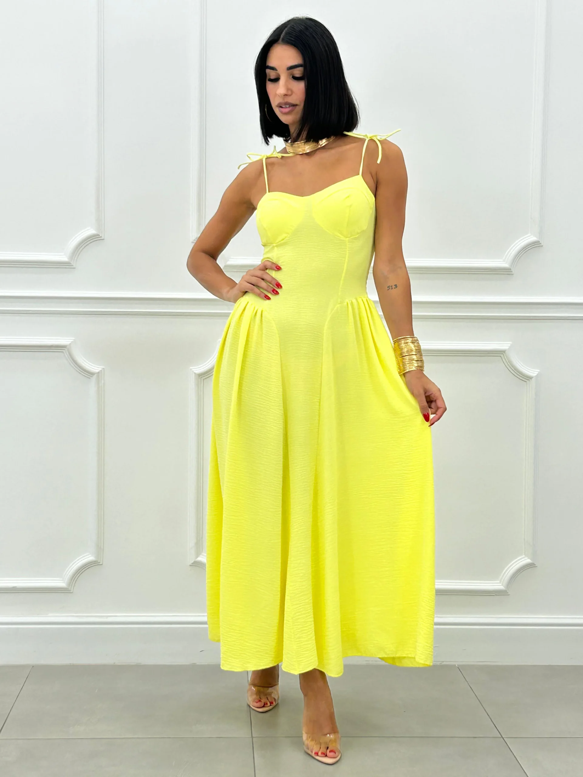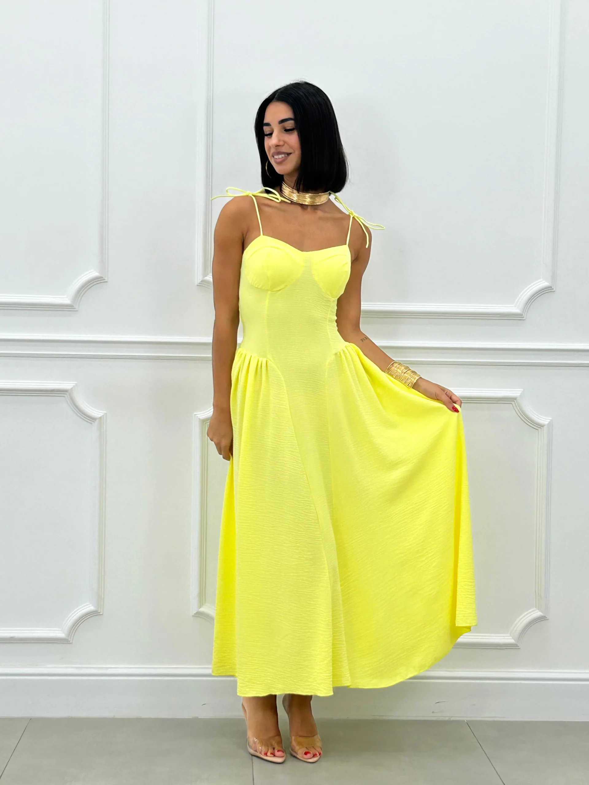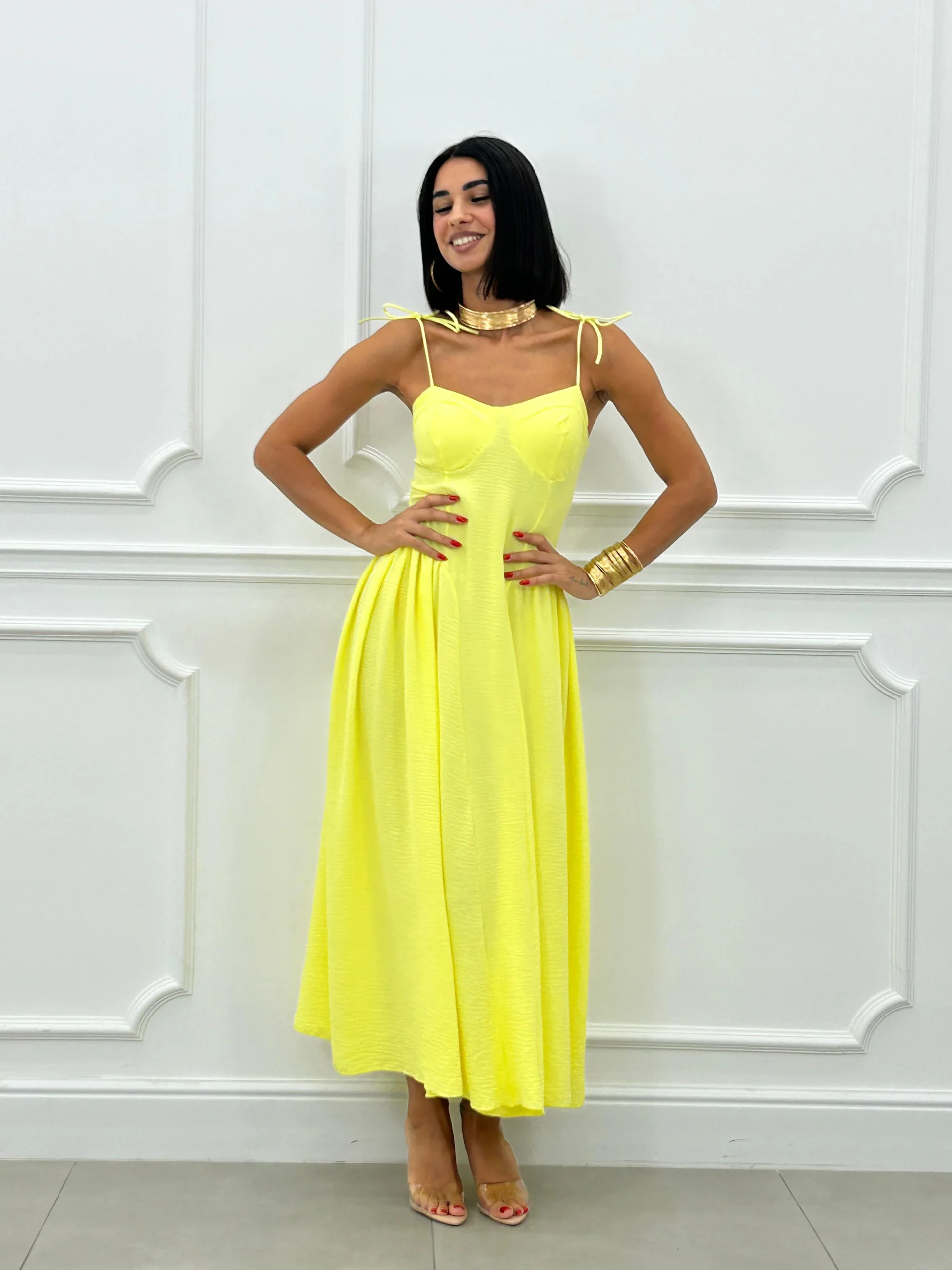 Vestito lungo con coppe al seno , bretelline regolabili , fascia elastica sul retro