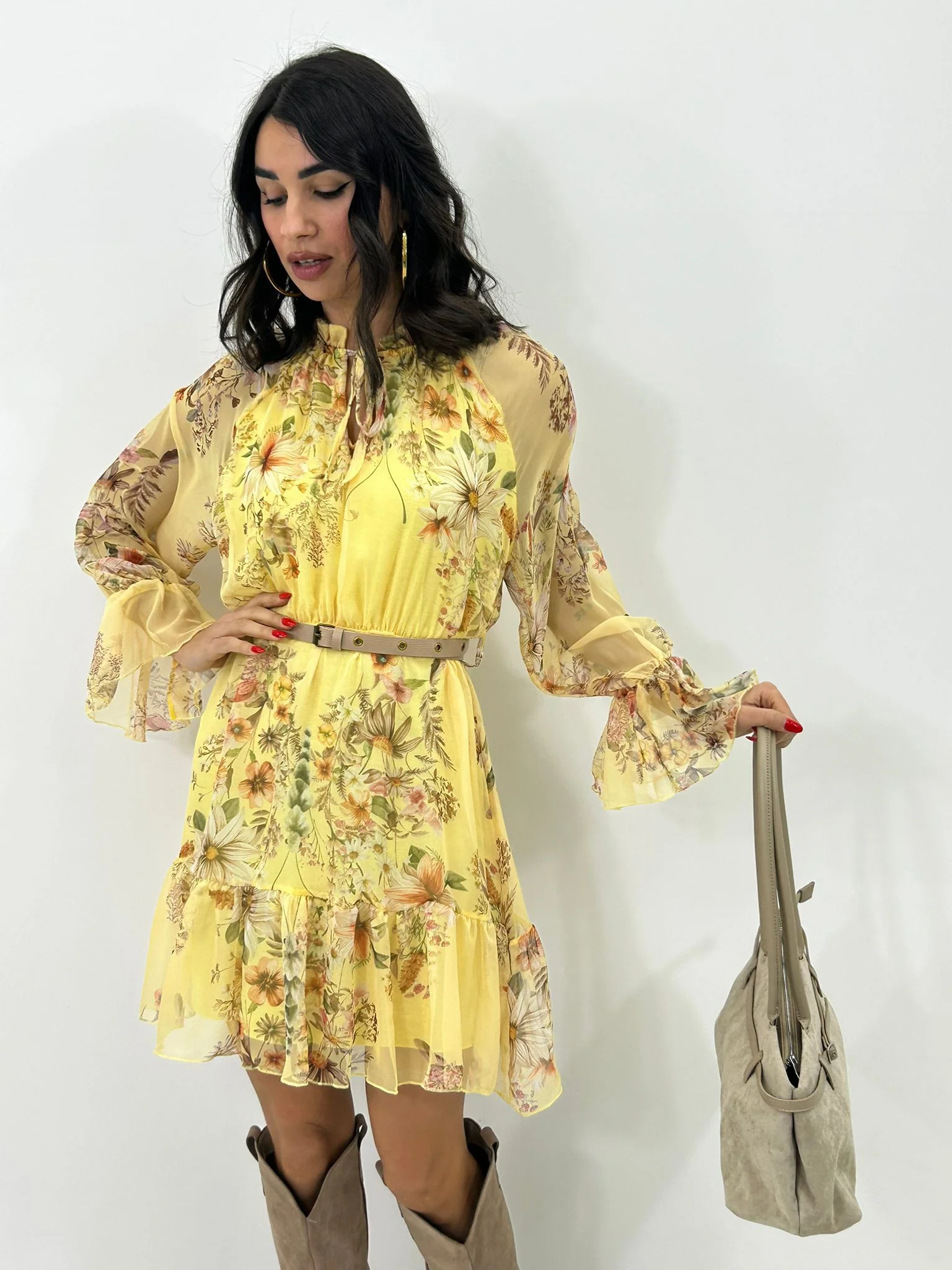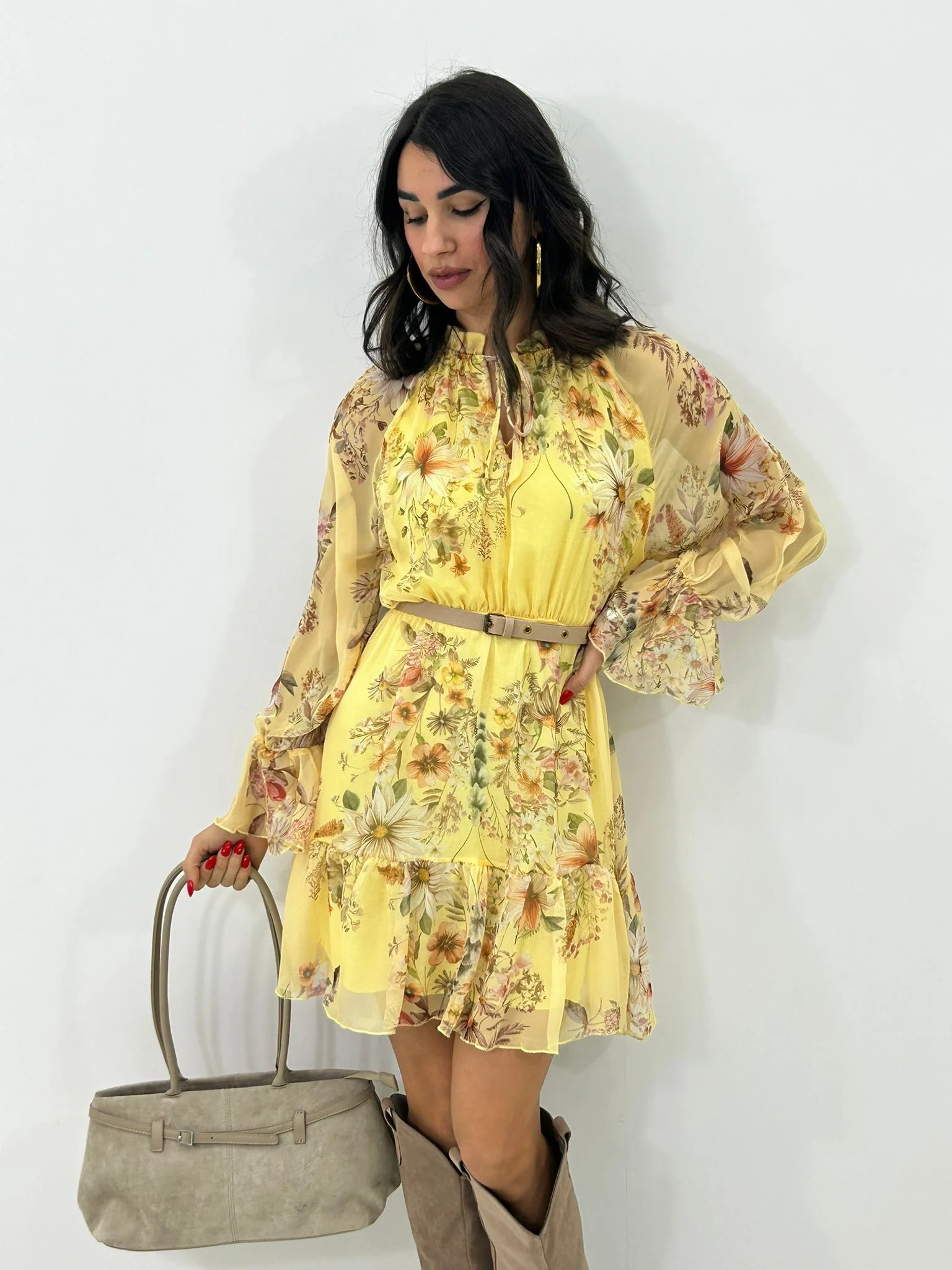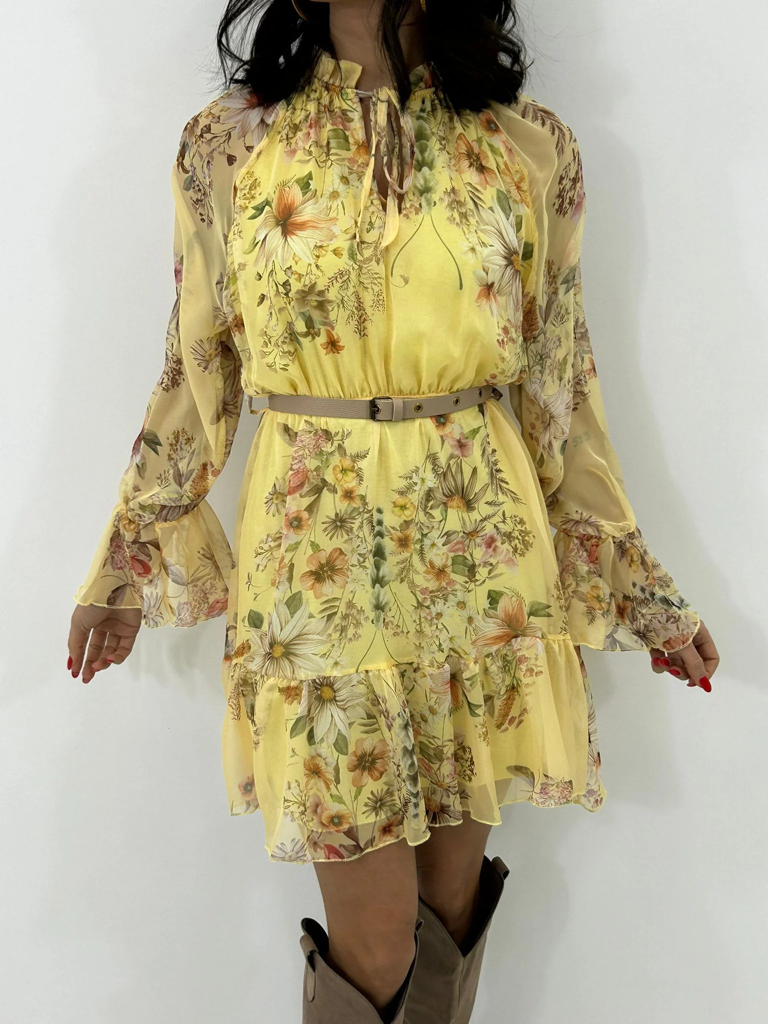 Vestitino velato fantasia con cintura