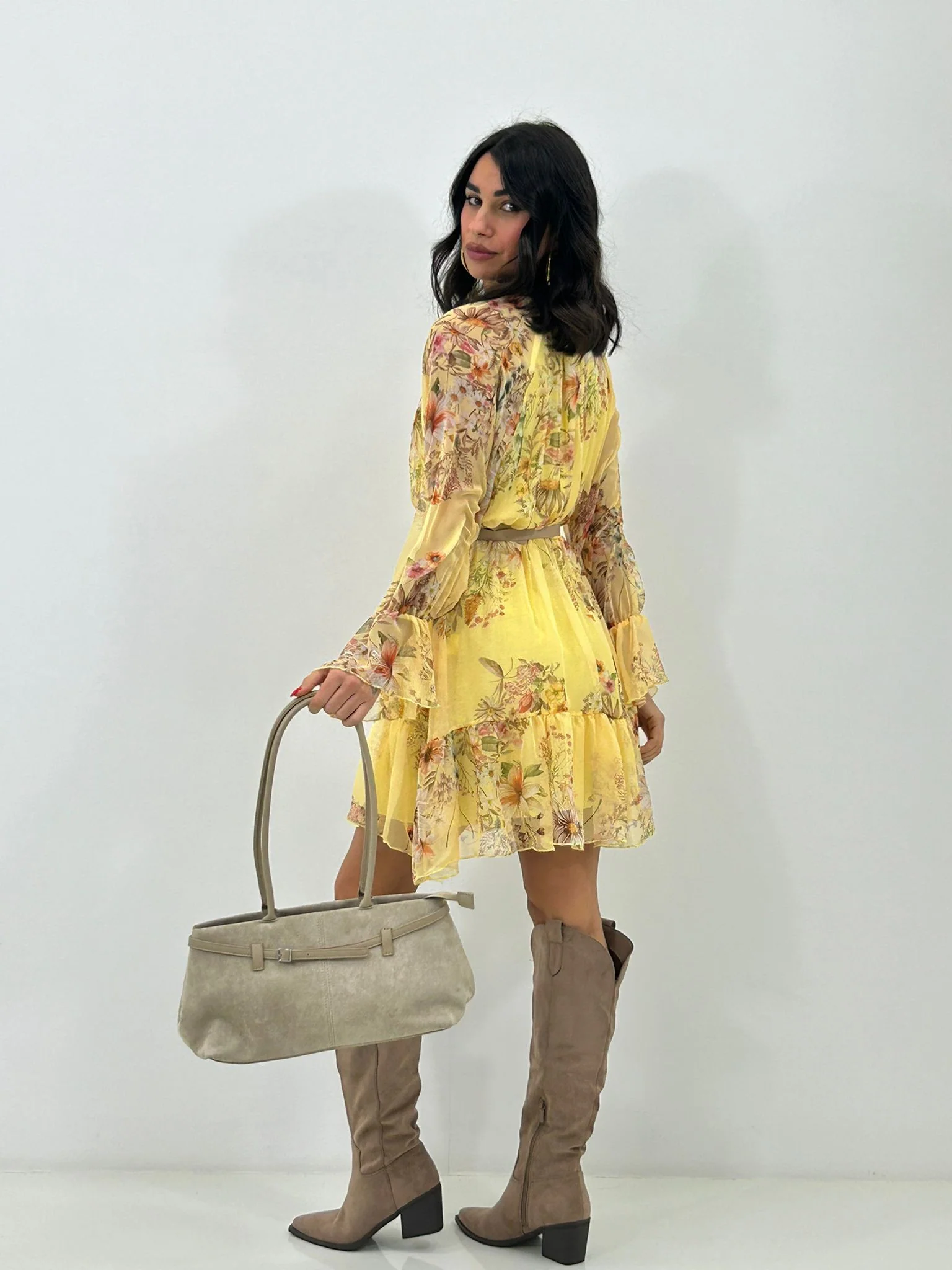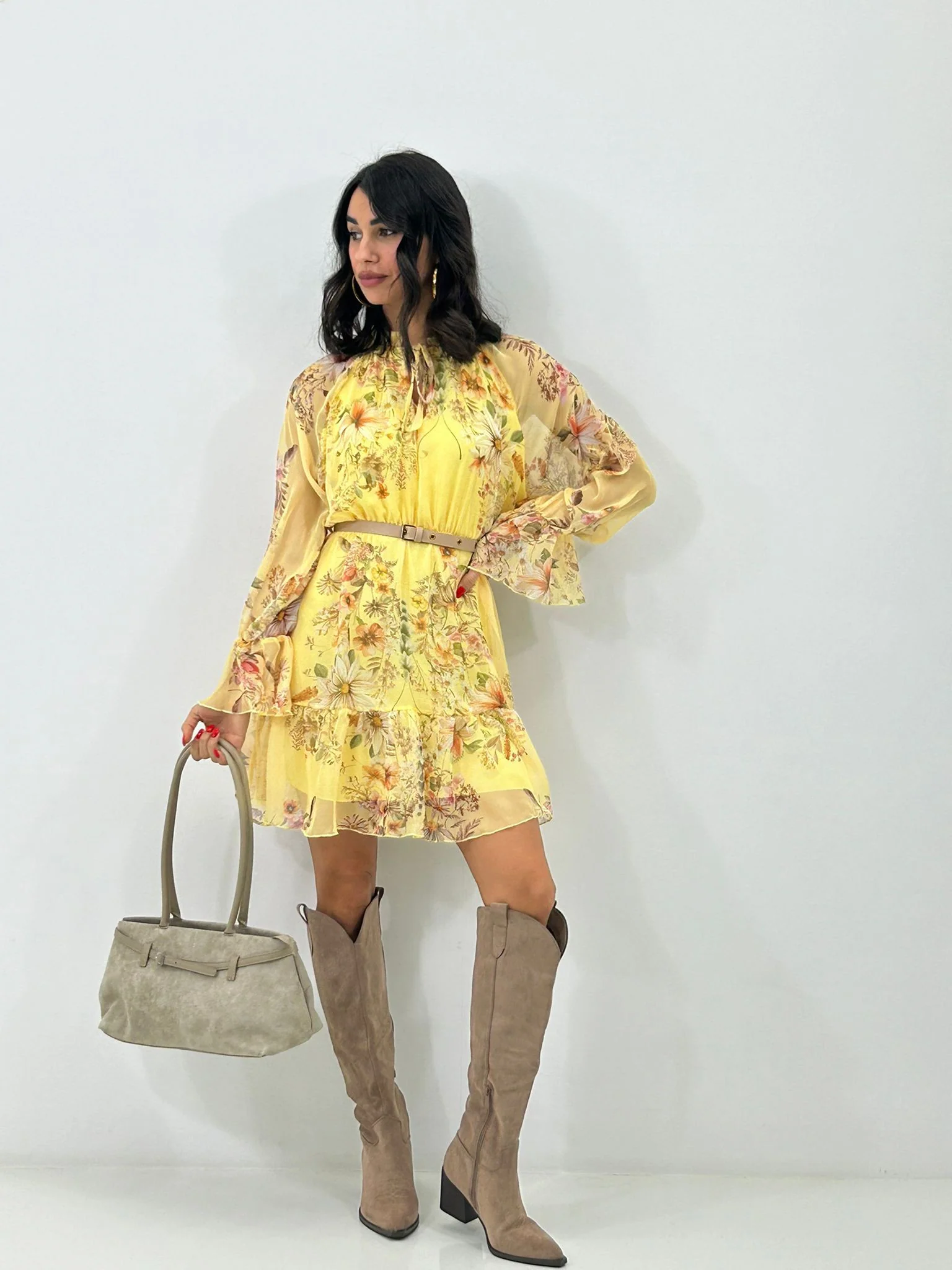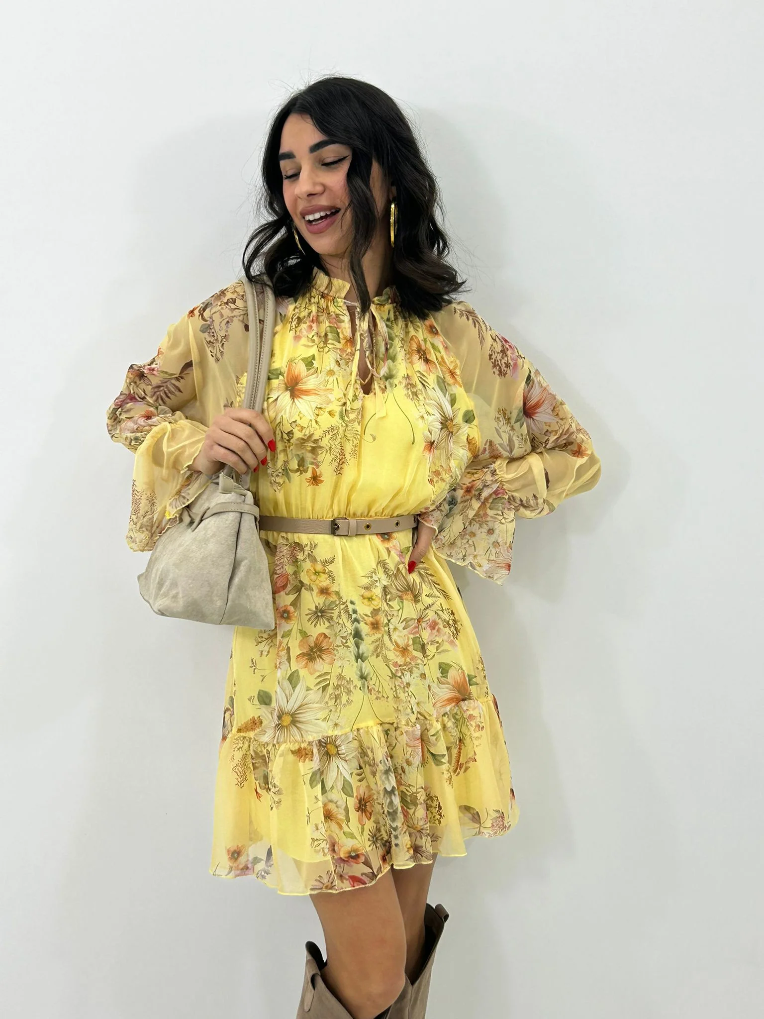 Vestitino velato fantasia con cintura
