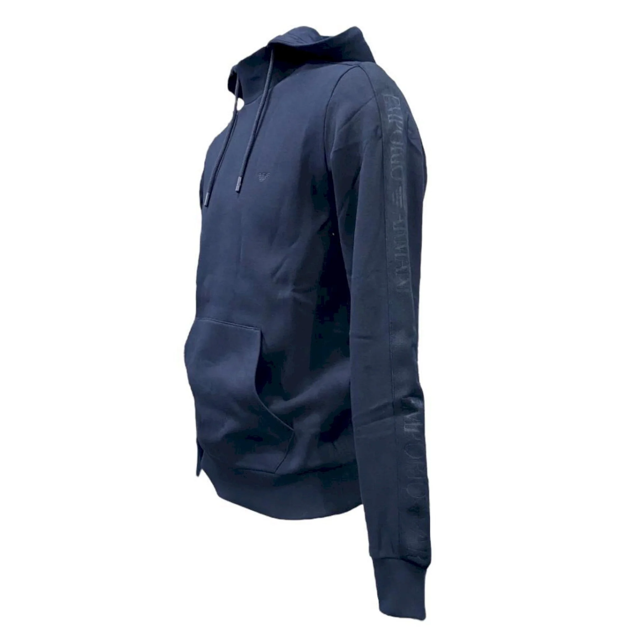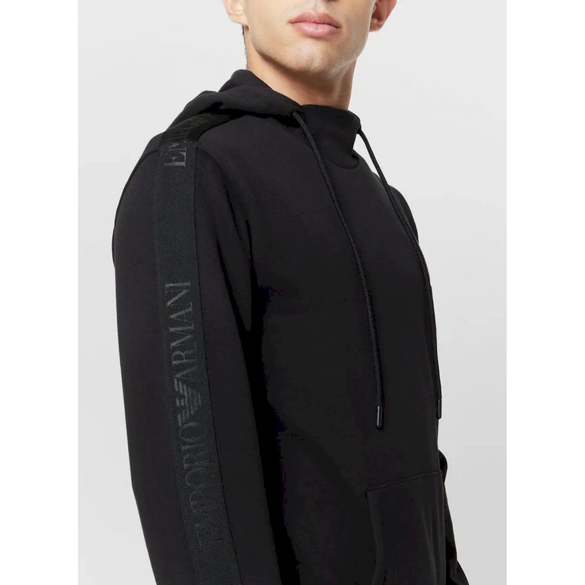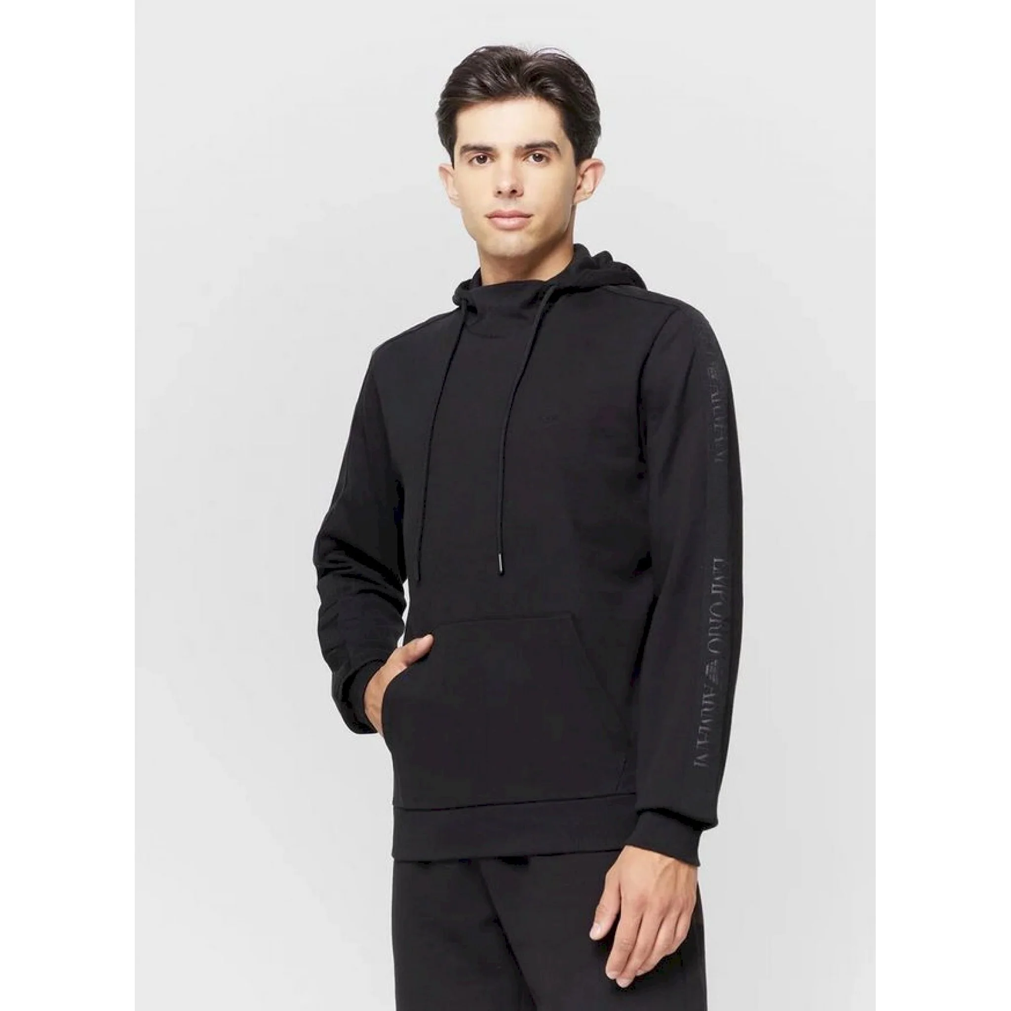 Felpa girocollo con cappuccio e tasche a marsupio.