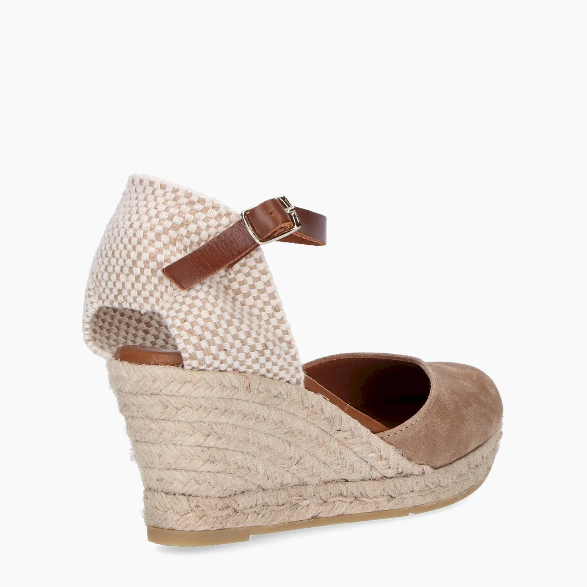 Espadrilla valenciana con zeppa in juta, alta circa 6,5 cm. realizzata in pelle crosta della migliore qualità, con cinturino alla caviglia e chiusura con fibbia per una vestibilità ottimale. soletta imbottita in pelle. comfort, durata e versatilità di una scarpa spagnola al 100%. ha la garanzia di qualità di alpargatas viguera.