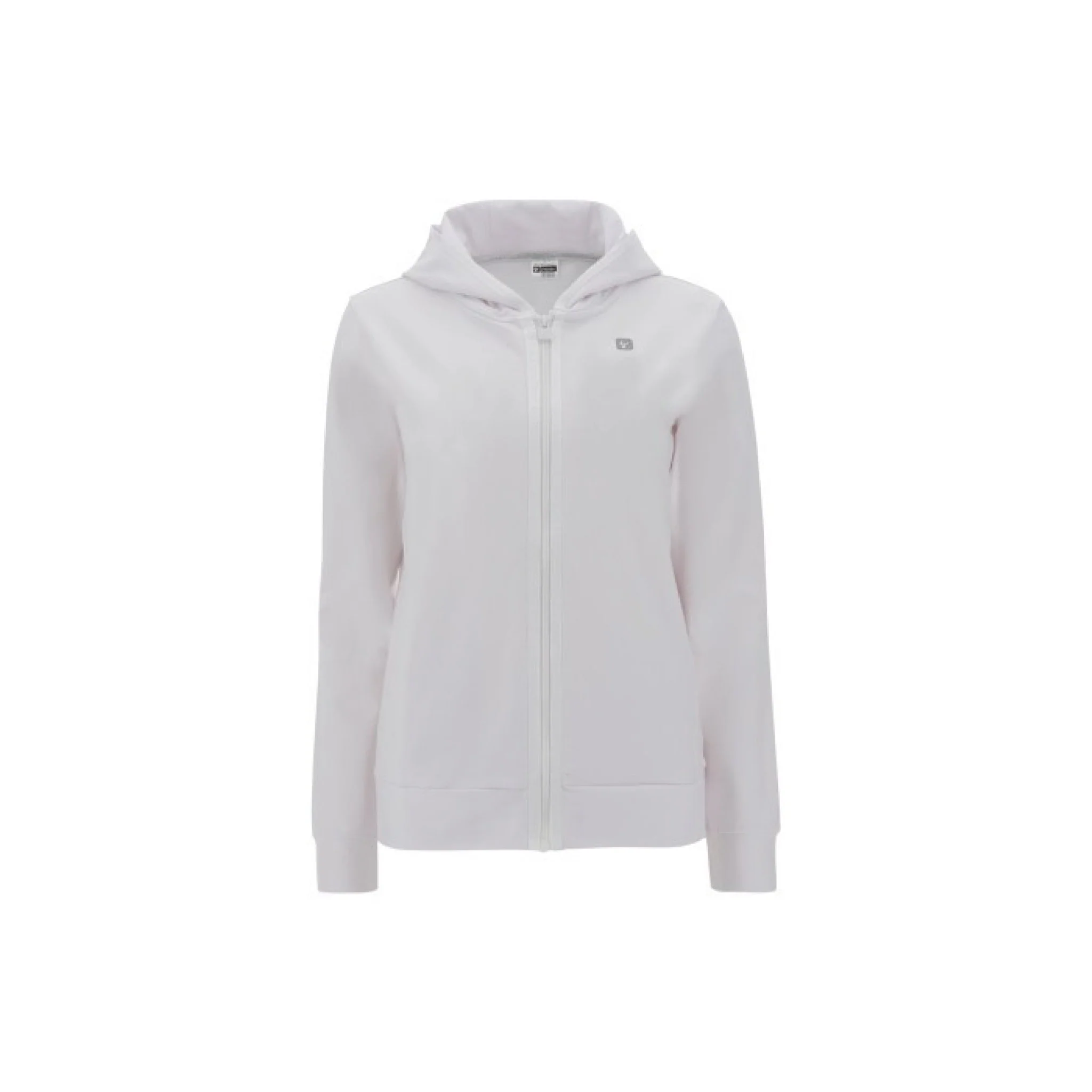 Felpa elasticizzata in french terry con cappuccio e chiusura con zip a tutta lunghezza, caratterizzata dalla bordatura in nastro jacquard logato in tono colore. ha comode tasche interne e vestibilità regular. capo piacevole da indossare grazie al suo design e alla morbida flessibilità del tessuto, ideale per la pratica di ginnastica, pilates e tutte le attività sportive che richiedono ampiezza di movimento.