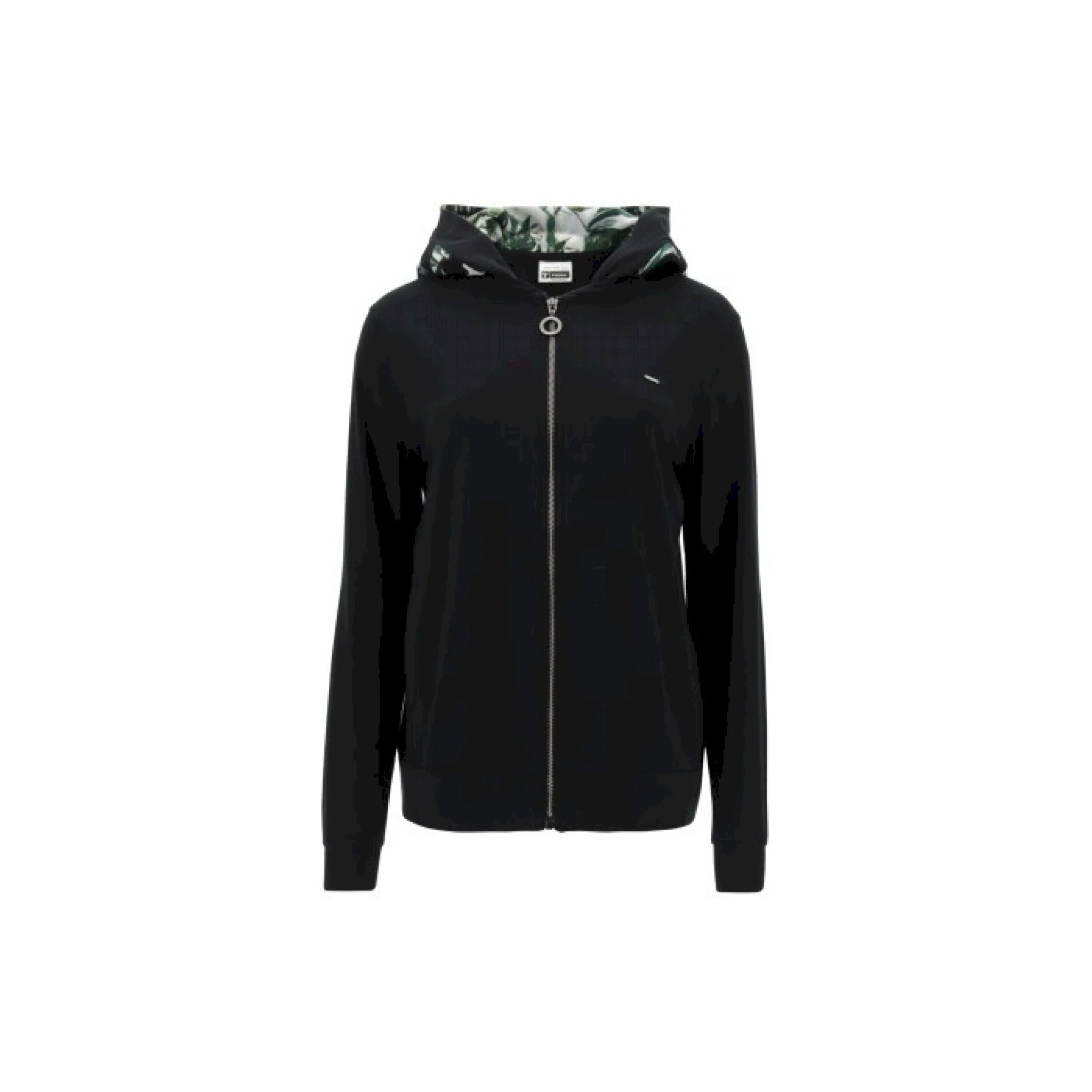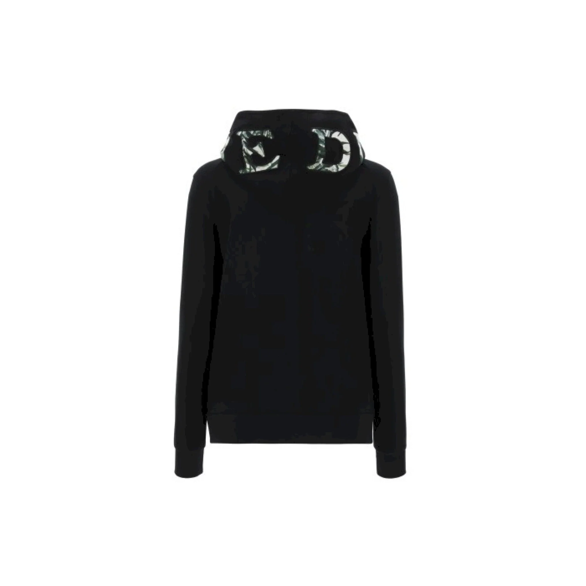 Felpa in jersey pesante elasticizzato nero caratterizzata dal cappuccio doppiato in tessuto a fantasia tropical ripresa dal grande lettering freddy applicato sulla parte esterna. il modello presenta comode tasche interne e zip a tutta lunghezza in metallo scuro con puller ad anello. capo piacevole da indossare grazie alla morbida flessibilità del tessuto che favorisce la libertà di movimento. il design casual sportivo è impreziosito dai dettagli curati e dalla fantasia dai toni estivi nel regalare versatilità per completare outfit sportivi e per il tempo libero che puntano alla comodità senza rinunciare a un tocco di personalità unico.