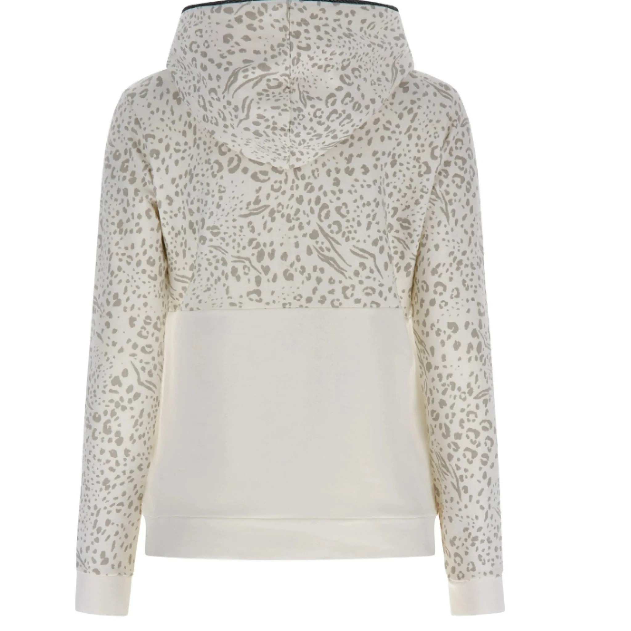 Felpa zippata caratterizzata dal piacevole gioco dato dalla parte superiore, esterno cappuccio e maniche con grafica a fantasia animalier in tono e il resto del capo monocolore. il modello presenta cappuccio con coulisse bordato da piping con filo lurex, tasche frontali a marsupio, maniche con polsini e fondo con spacchetti laterali. le stampe lucide in colore metal gun su una manica e sul fronte contribuiscono a impreziosire l’insieme. la vestibilità regular