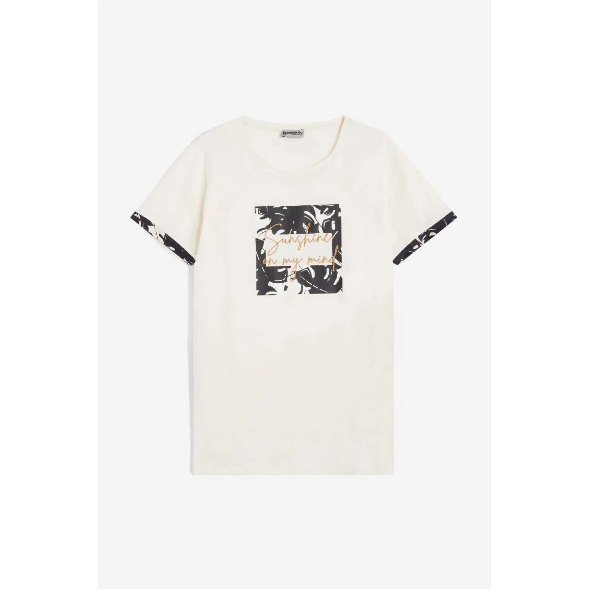 – maniche corte bordate in viscosa stampa tropical