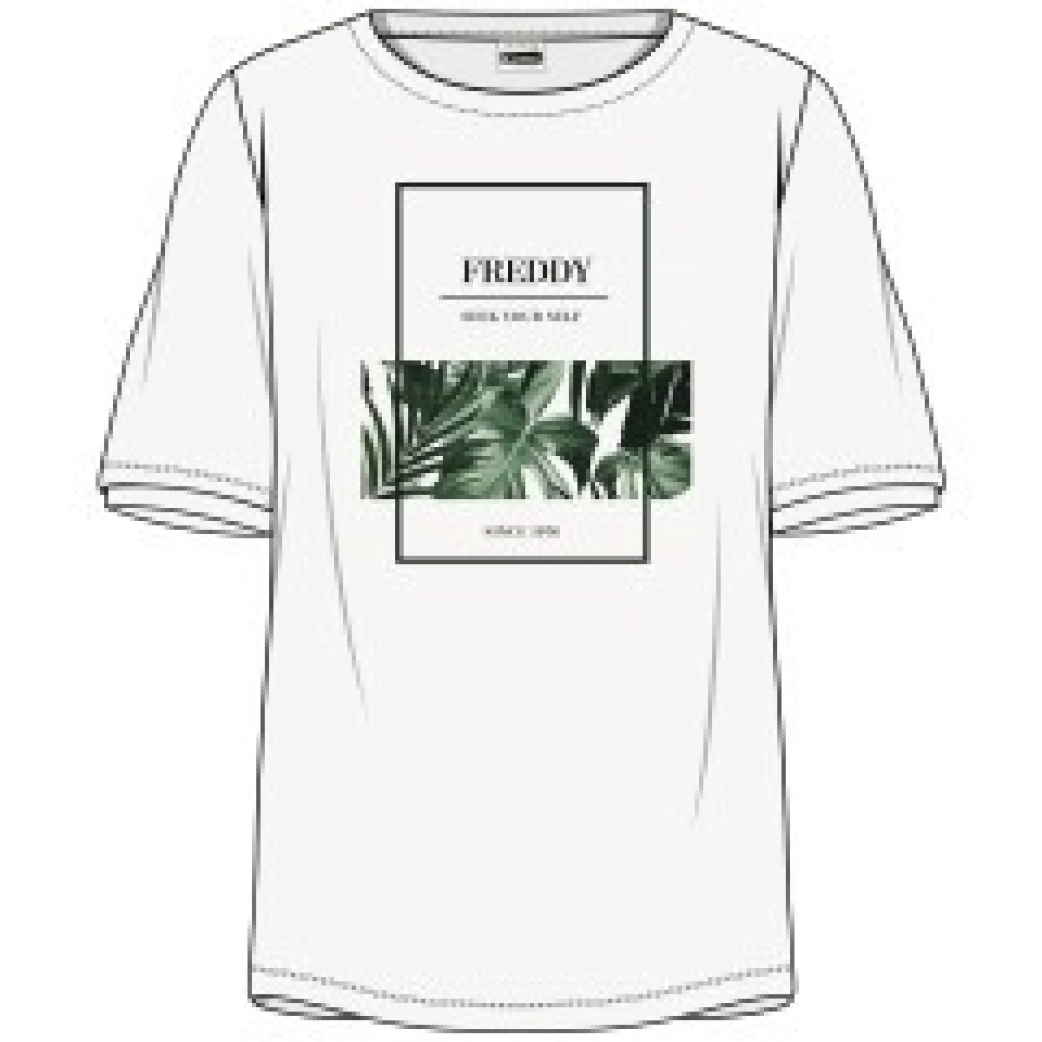 T-shirt comfort fit in jersey lyocell con stampa frontale dal mood tropical. ha scollo tondo, maniche corte e fondo dritto. il design lineare dalle linee fluide si unisce alla delicata morbidezza del tessuto in fibra vegetale nel dar vita a un capo confortevole dai piacevoli toni estivi che punta allo stile.