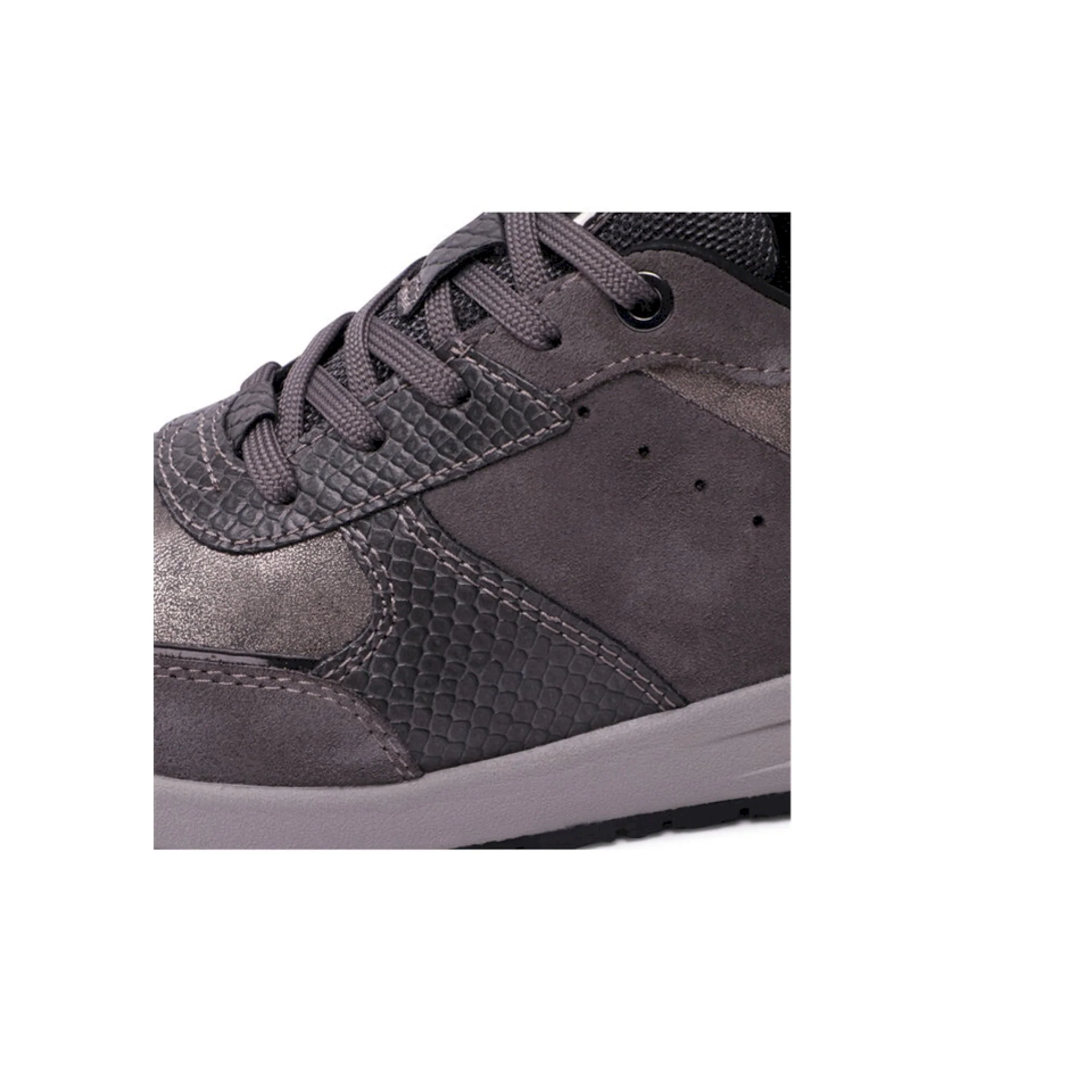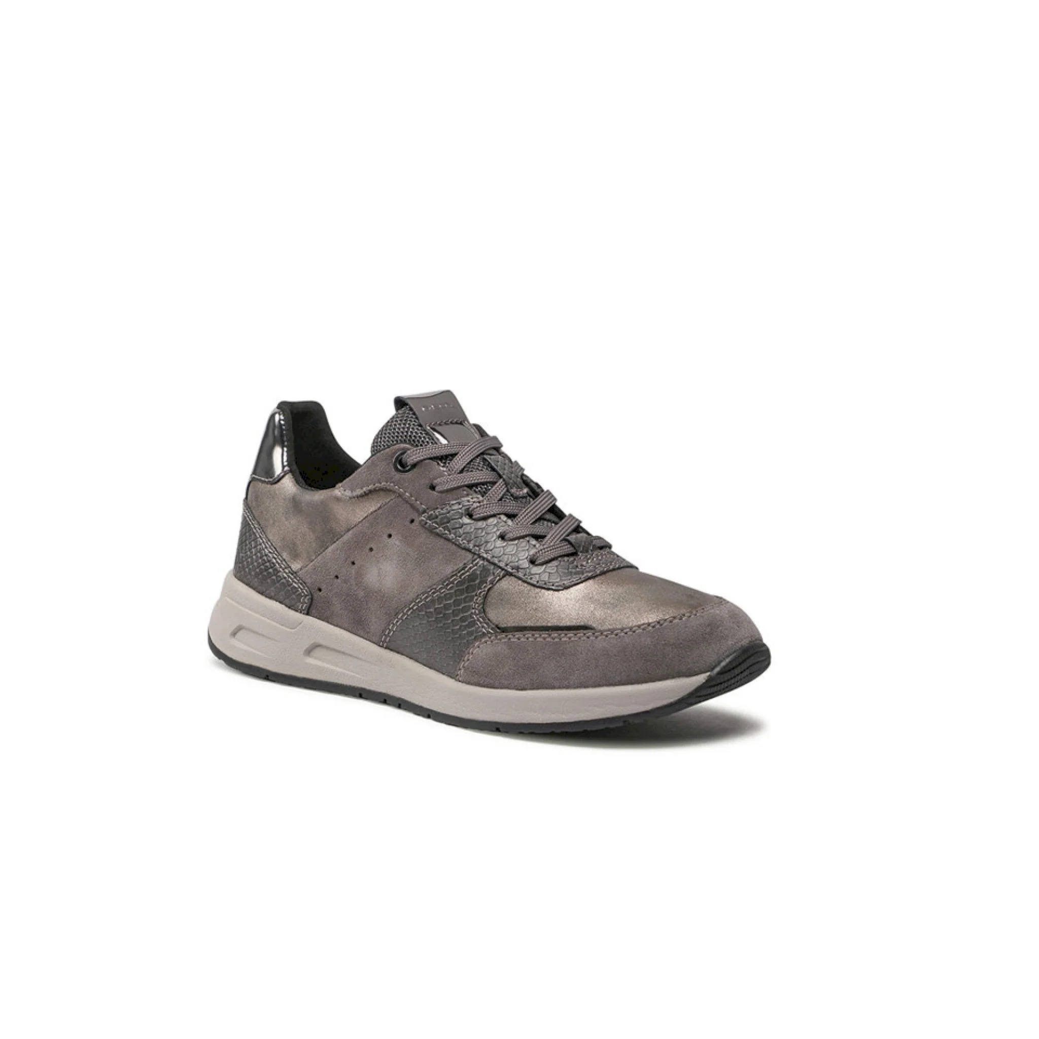 Sneakers da donna geox bulmya in pelle e similpelle effetto stampato con fodera e sottopiede in tessuto e dettaglio laminato sul tallone.
