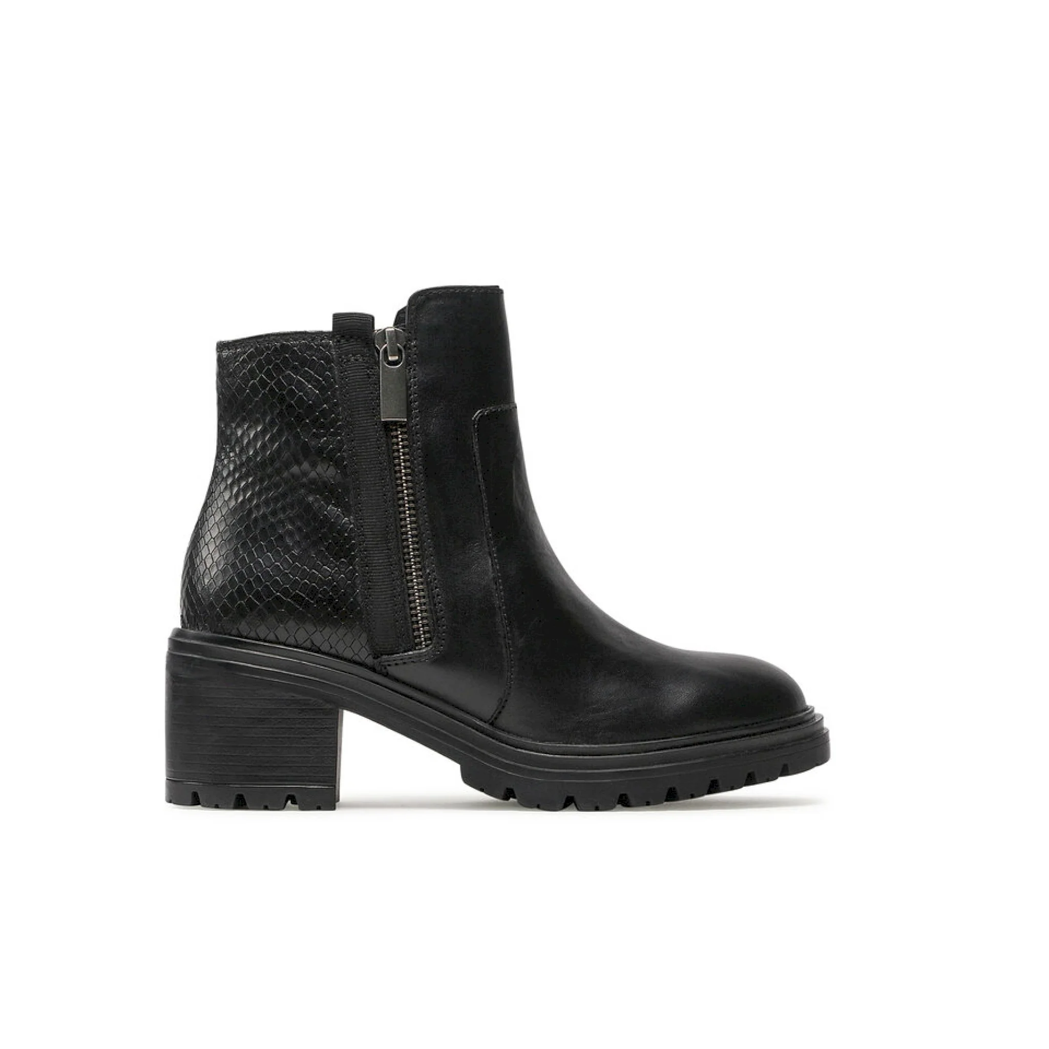 Tronchetti neri della linea geox realizzati in pelle. dispongono di una doppia chiusura laterale con zip che ne agevola la calzata. la suola garantisce un comfort ottimale durante tutta la giornata. questi stivaletti contraddistinguono per uno stile moderno e di tendenza.
